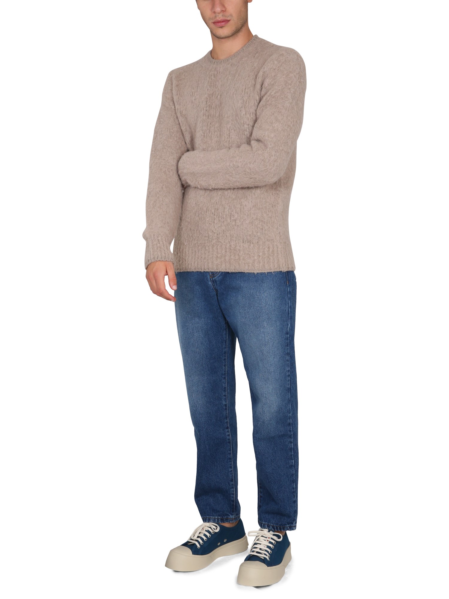 With a classic ribbed texture, the wool crew neck sweater from Ami Paris is the perfect piece for fall and winter. It has a crew neckline, long sleeves, straight he, and ribbed collar, cuffs, and bottom. With the rich colour and a great fit, this is a must-have for the coming seasons.