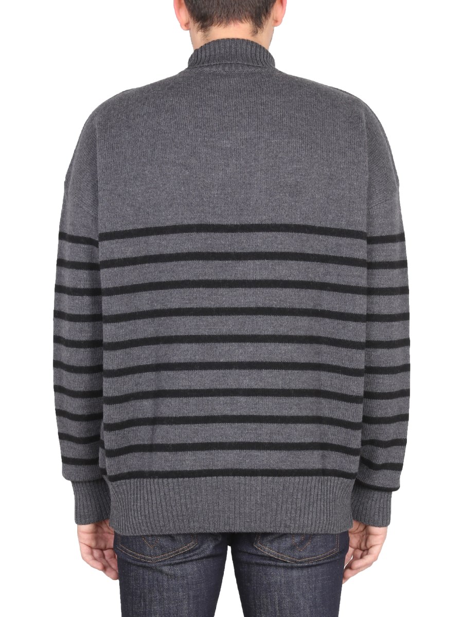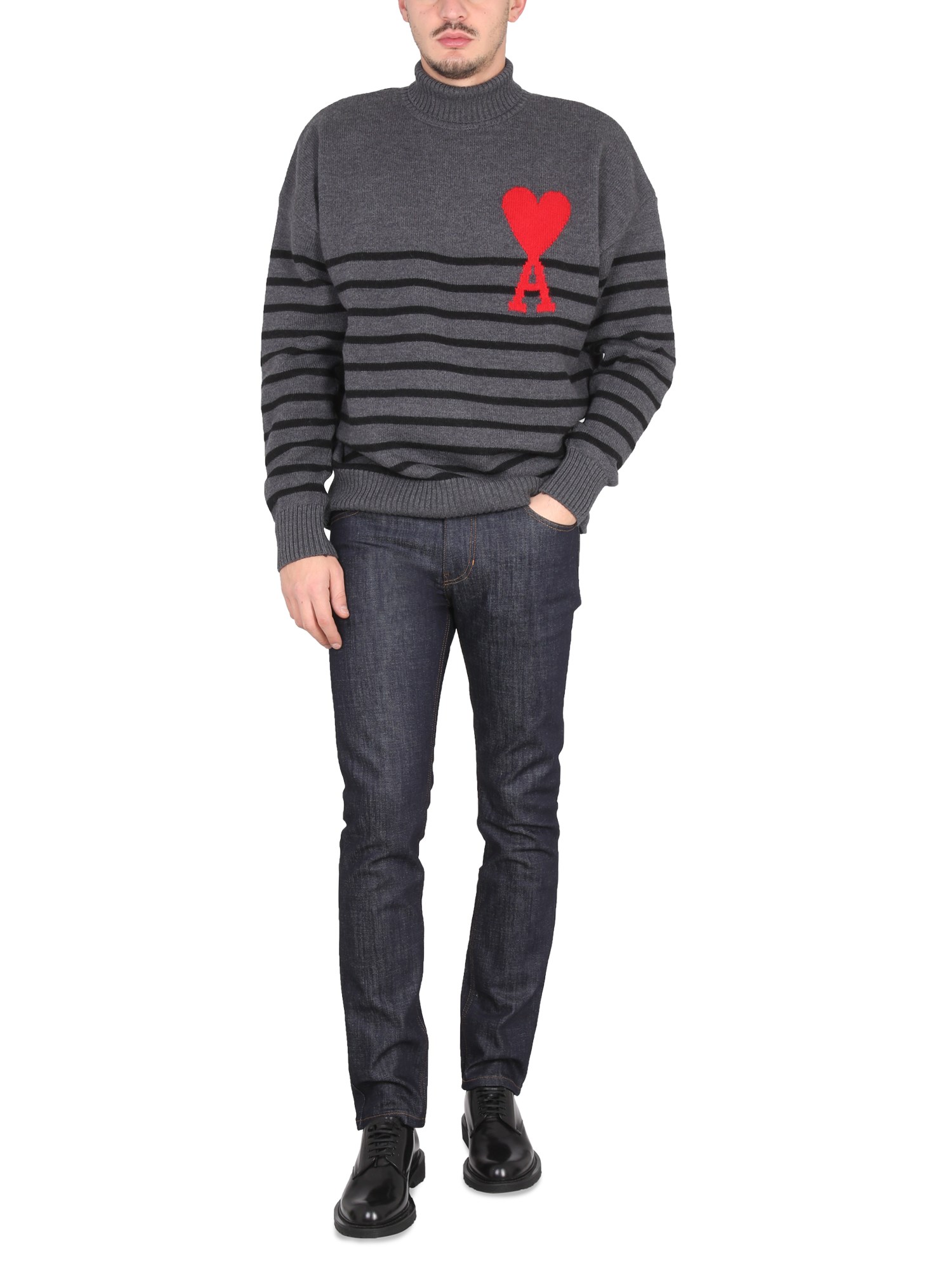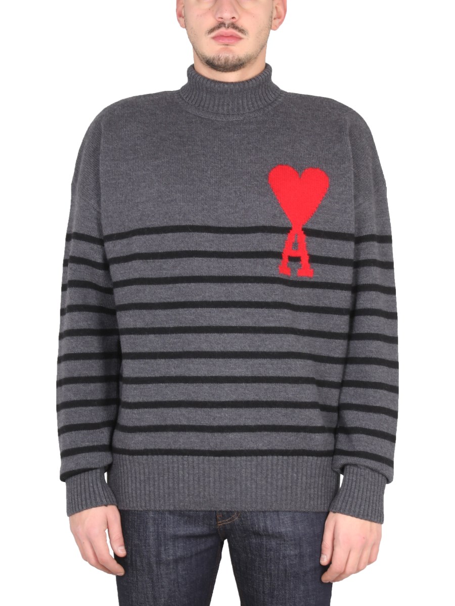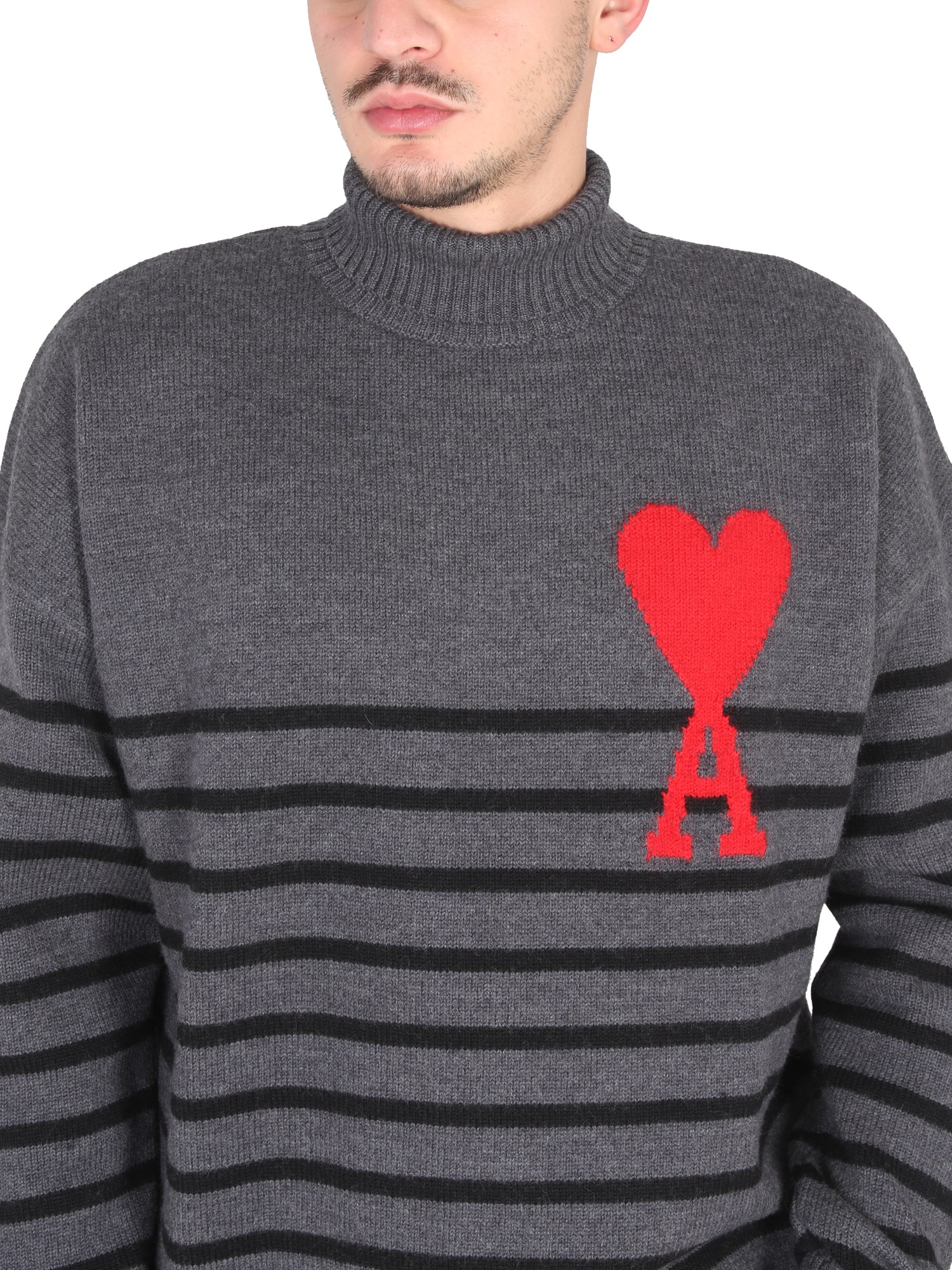 - HIGH NECK- AMI DE COEUR EMBROIDERY AT CHEST- RIGA PATTERN- OVERSIZE FIT- 100% WOOL- MODEL IS 185 CM TALL AND WEARS SIZE L