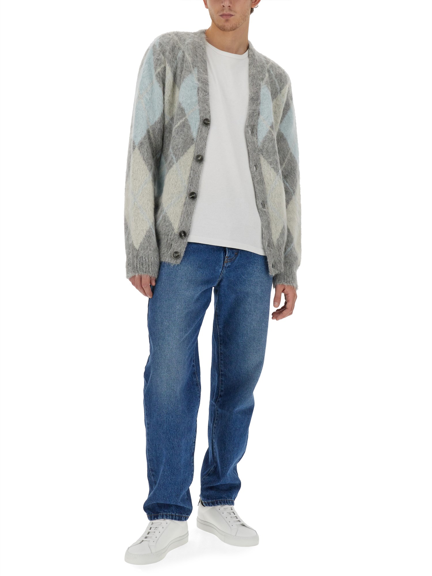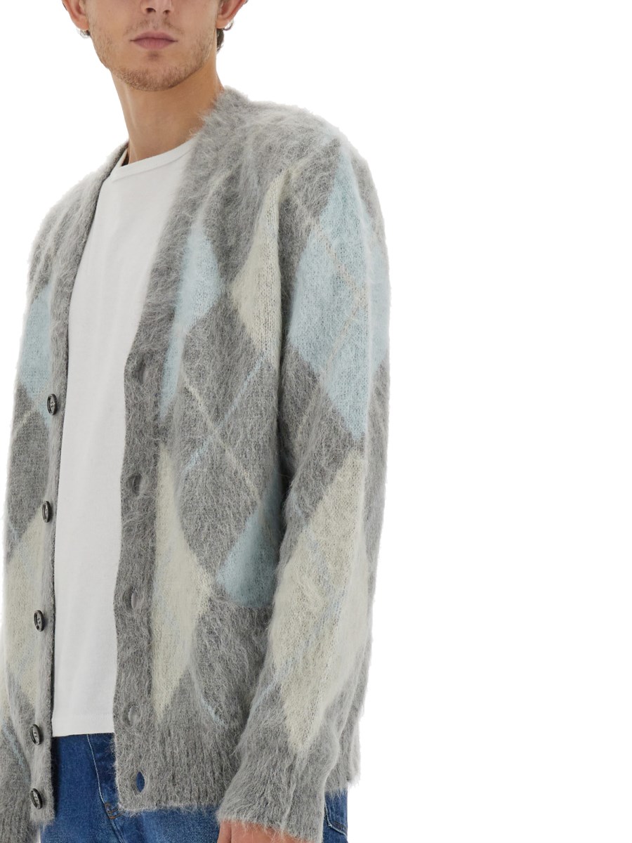 Indulge in the utmost comfort and style with the Mohair Blend Cardigan by Ami Paris. With a classic V-neckline and long sleeves, it's a perfect layering option for any outfit. The front button closure adds a touch of elegance, allowing you to wear it open or closed for versatile styling. Finished with a straight hemline, this cardigan effortlessly complements any ensemble, making it a wardrobe staple you'll reach for time and time again.