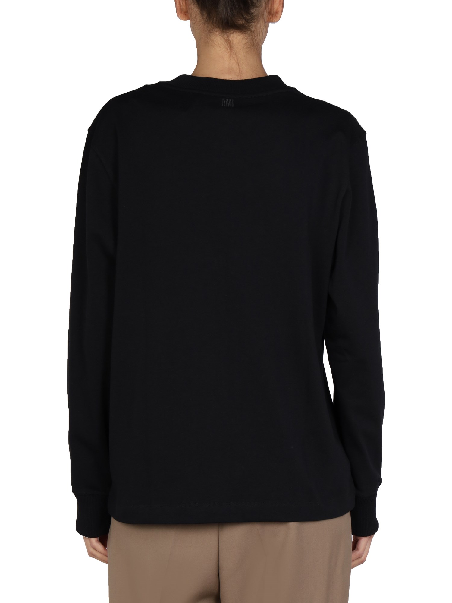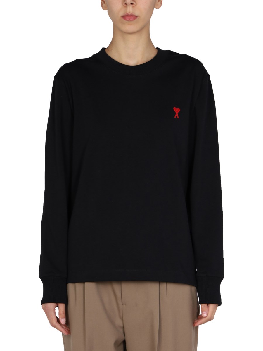 You'll adore this sweatshirt from Ami Paris. This sweatshirt is the ideal addition to your wardrobe, with a crew neck and front logo embroidery. This soft, cosy sweatshirt is made of organic cotton and will keep you warm. It is an extremely soft sweatshirt that is cosy and casual. It is made of 100% organic cotton.