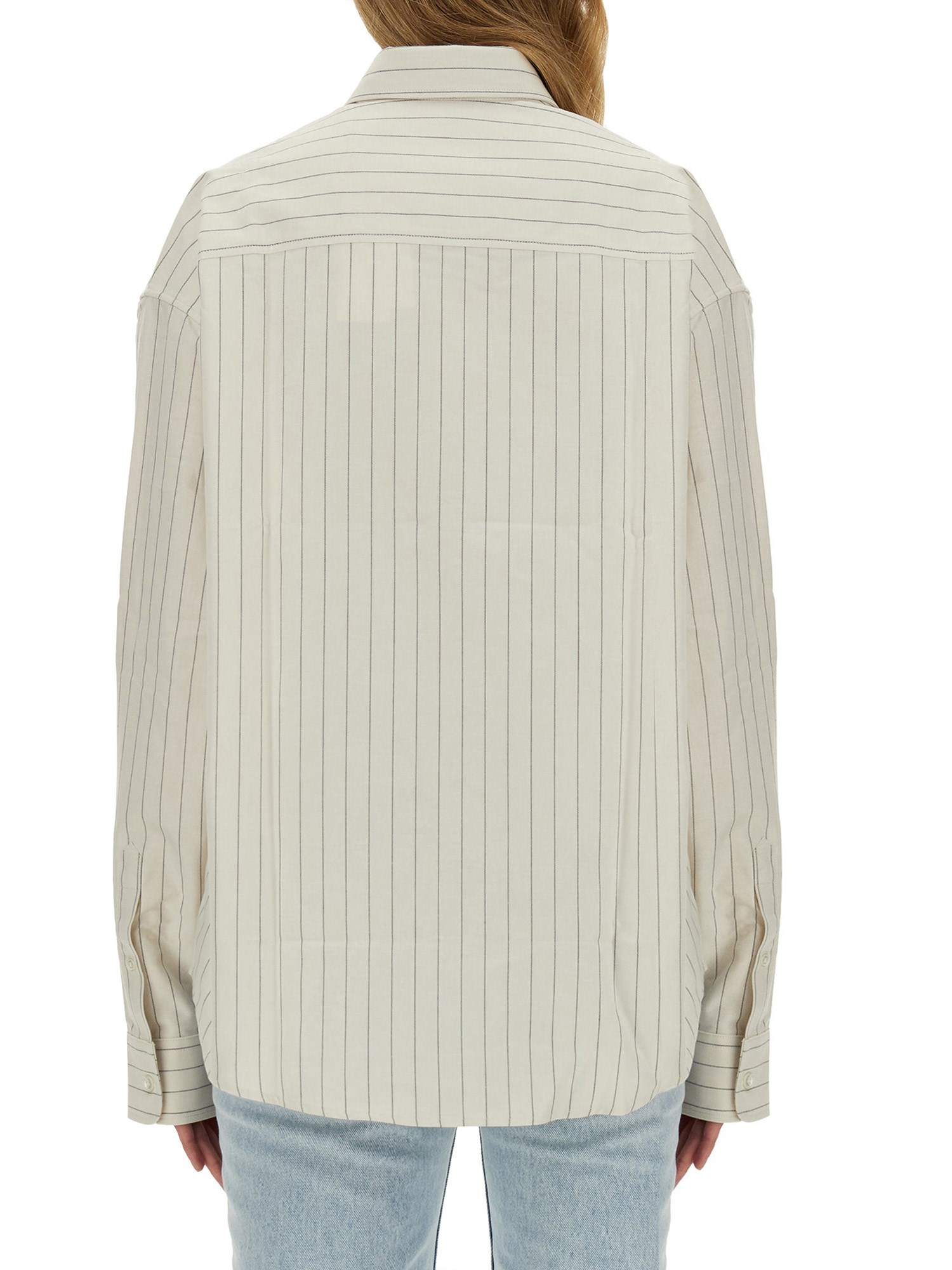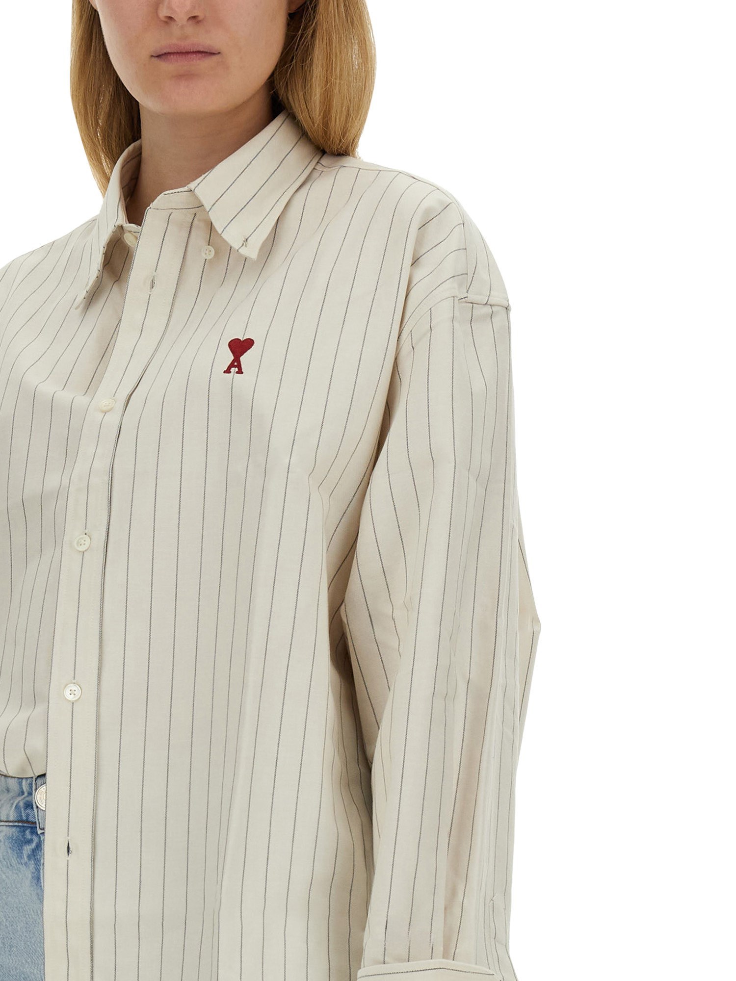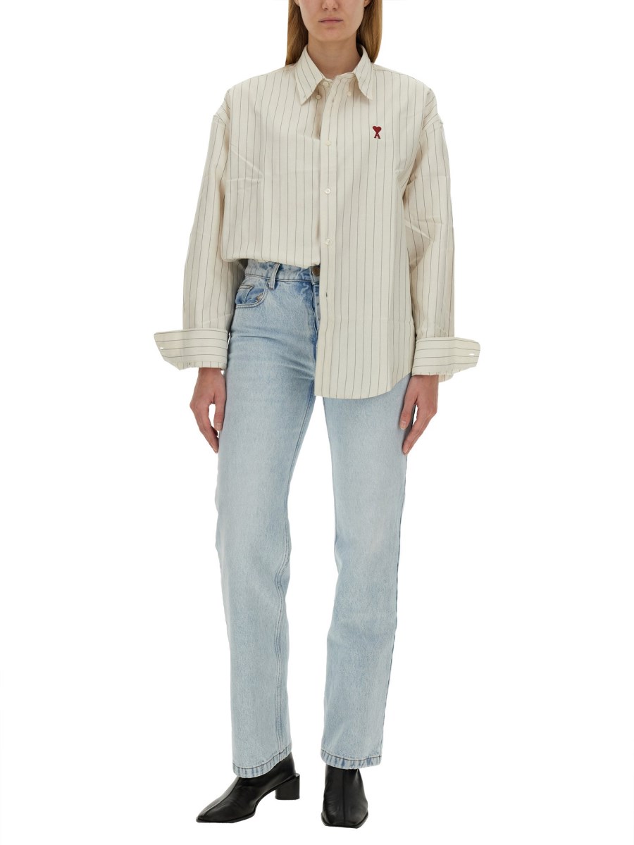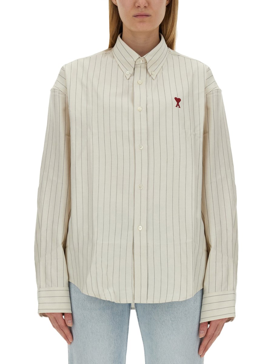 This cotton striped white shirt from Ami Paris is a versatile and classic addition to any wardrobe. Made from high-quality cotton, it offers both comfort and style. The timeless striped design adds a touch of sophistication, making it suitable for both casual and formal occasions. Easy to pair with jeans or dress pants, this shirt is a must-have for any fashion-conscious individual looking for a timeless piece to elevate their look.