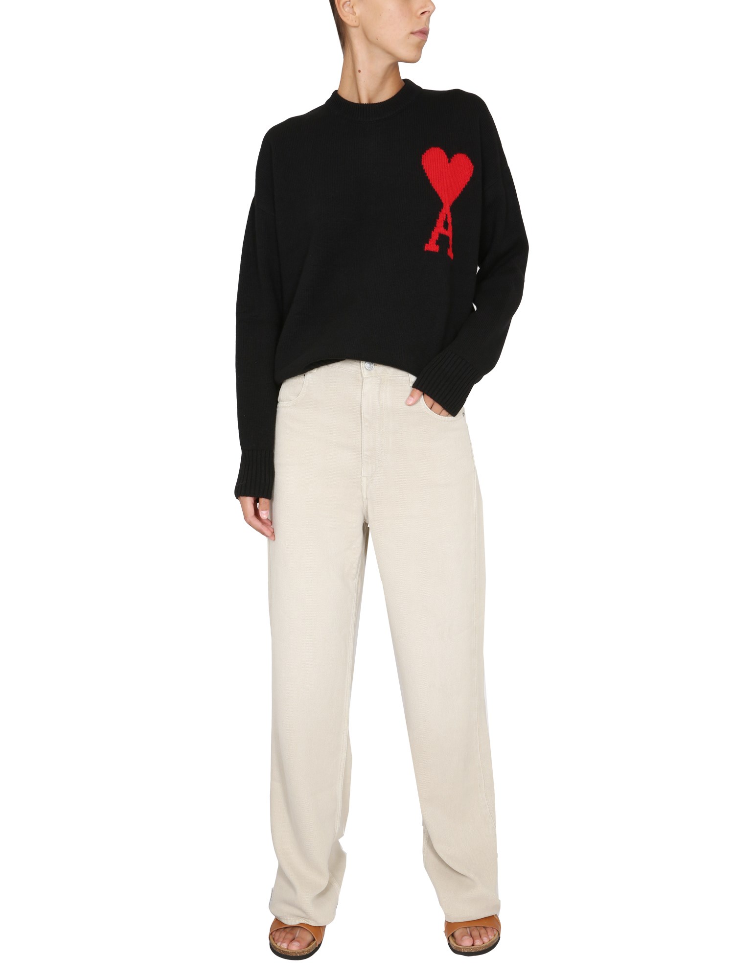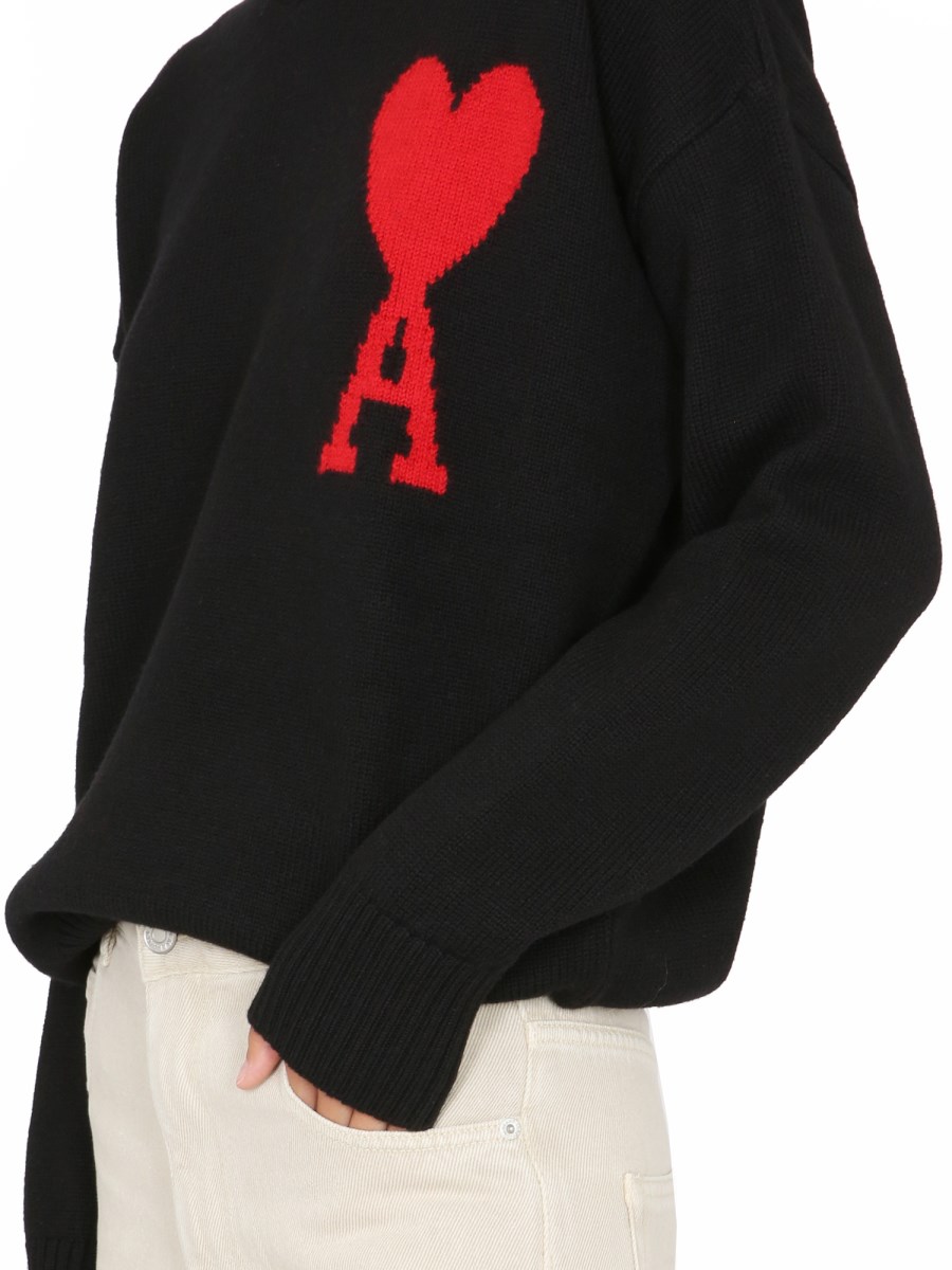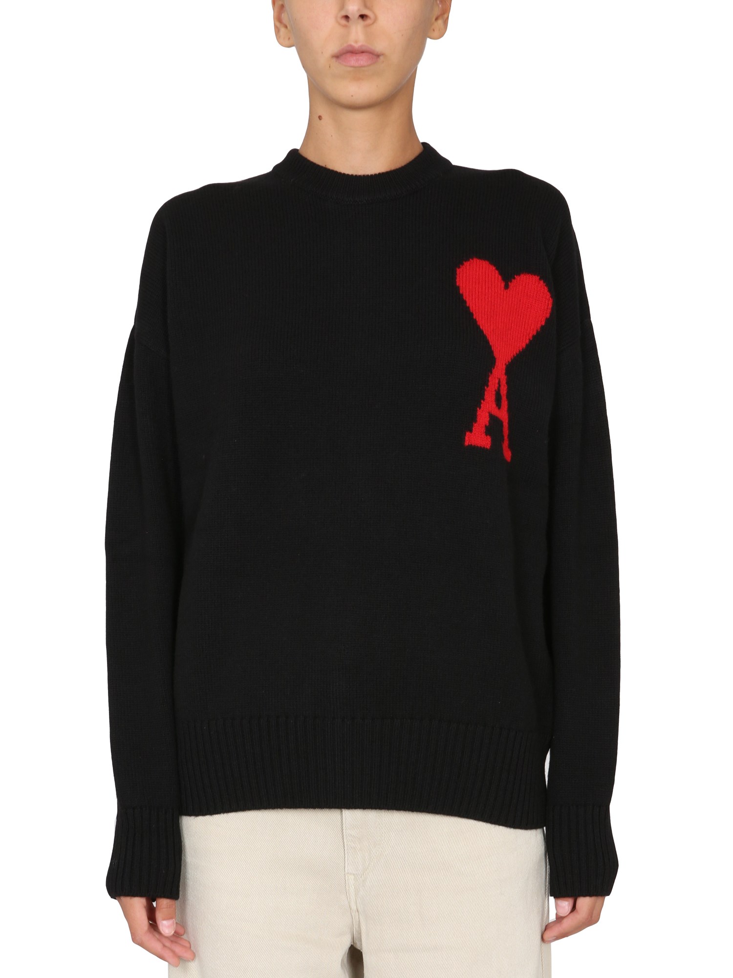 This soft and comfortable sweater from Ami Pars is made from high-quality and cosy wool. The colours will be sure to match your favourite outfit and keep you warm. The sweater features a ribbed crew neckline, long sleeves with a ribbed cuff, and a ribbed straight hem. It also has the "Coeur" logo on the chest and is crafted from pure wool.