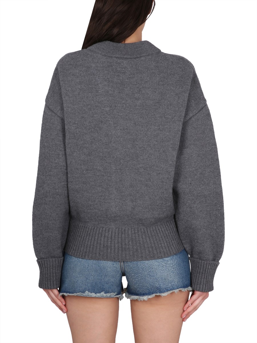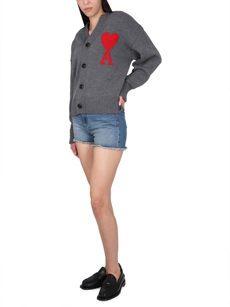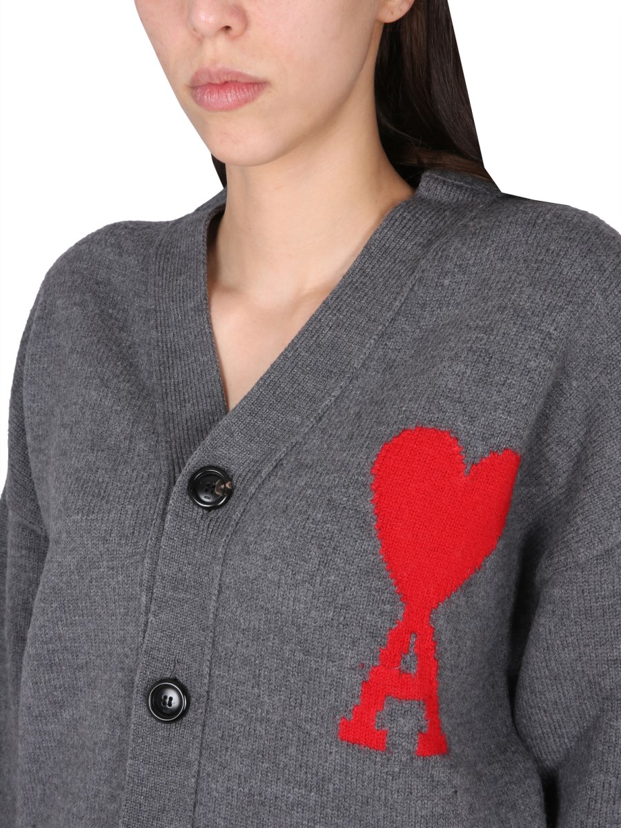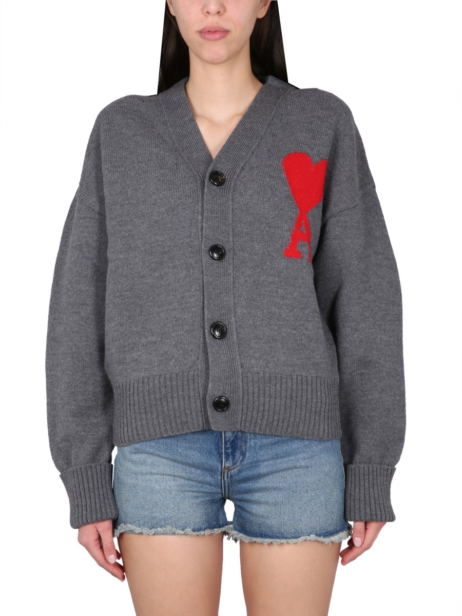 - FRONT BUTTON CLOSURE- V-NECK- "AMI DE COEUR" LOGO EMBROIDERY AT THE CHEST- REGULAR FIT- 100% WOOL- THE MODEL IS 180 CM TALL AND WEARS SIZE S