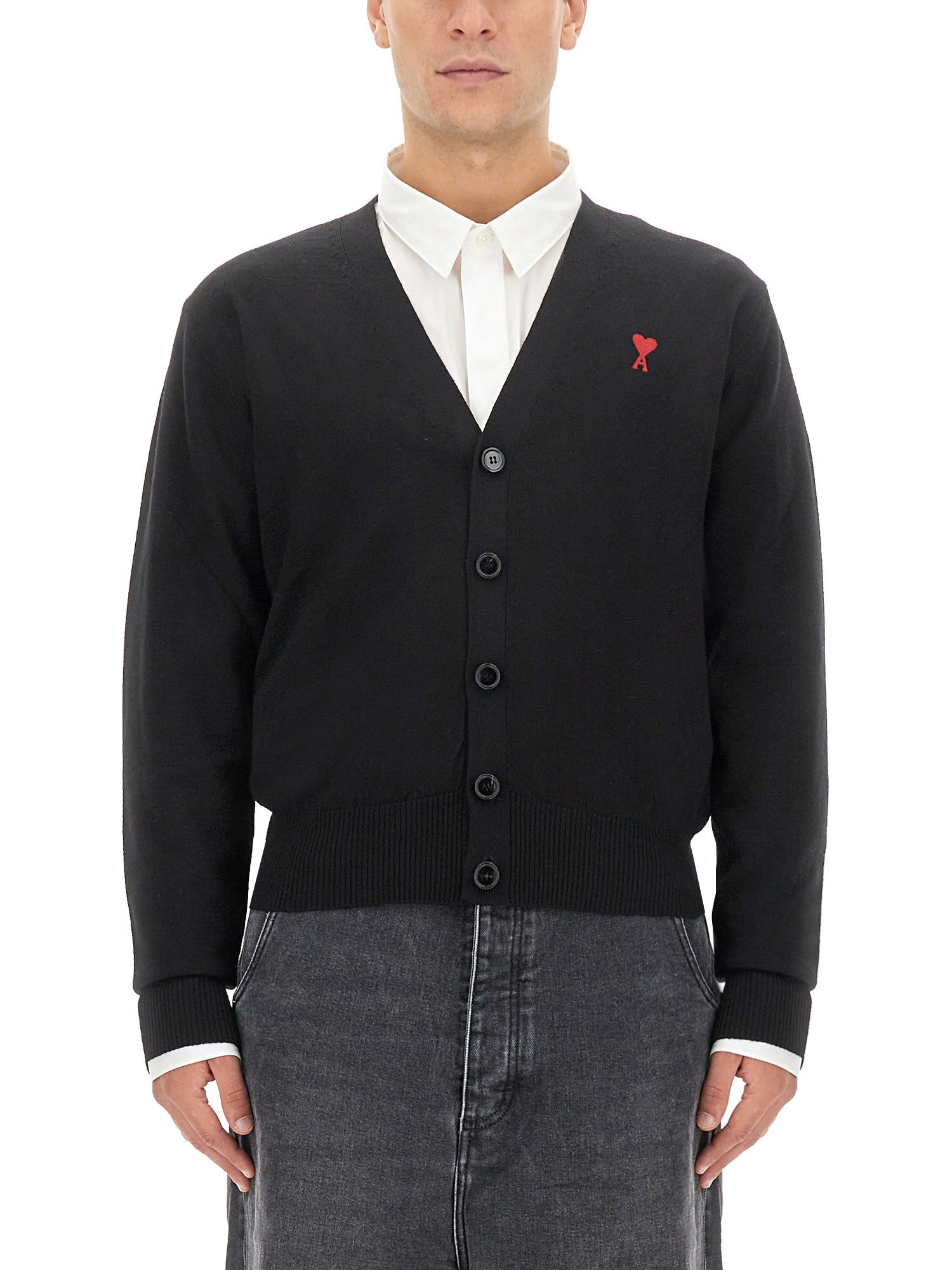 This cardigan by Ami Paris is made of comfortable virgin wool to stay warm without sacrificing style. It features a practical V-neck and buttons on the front. The classic cut and logo application make it a versatile garment. This cozy cardigan can be worn with everything and looks great.