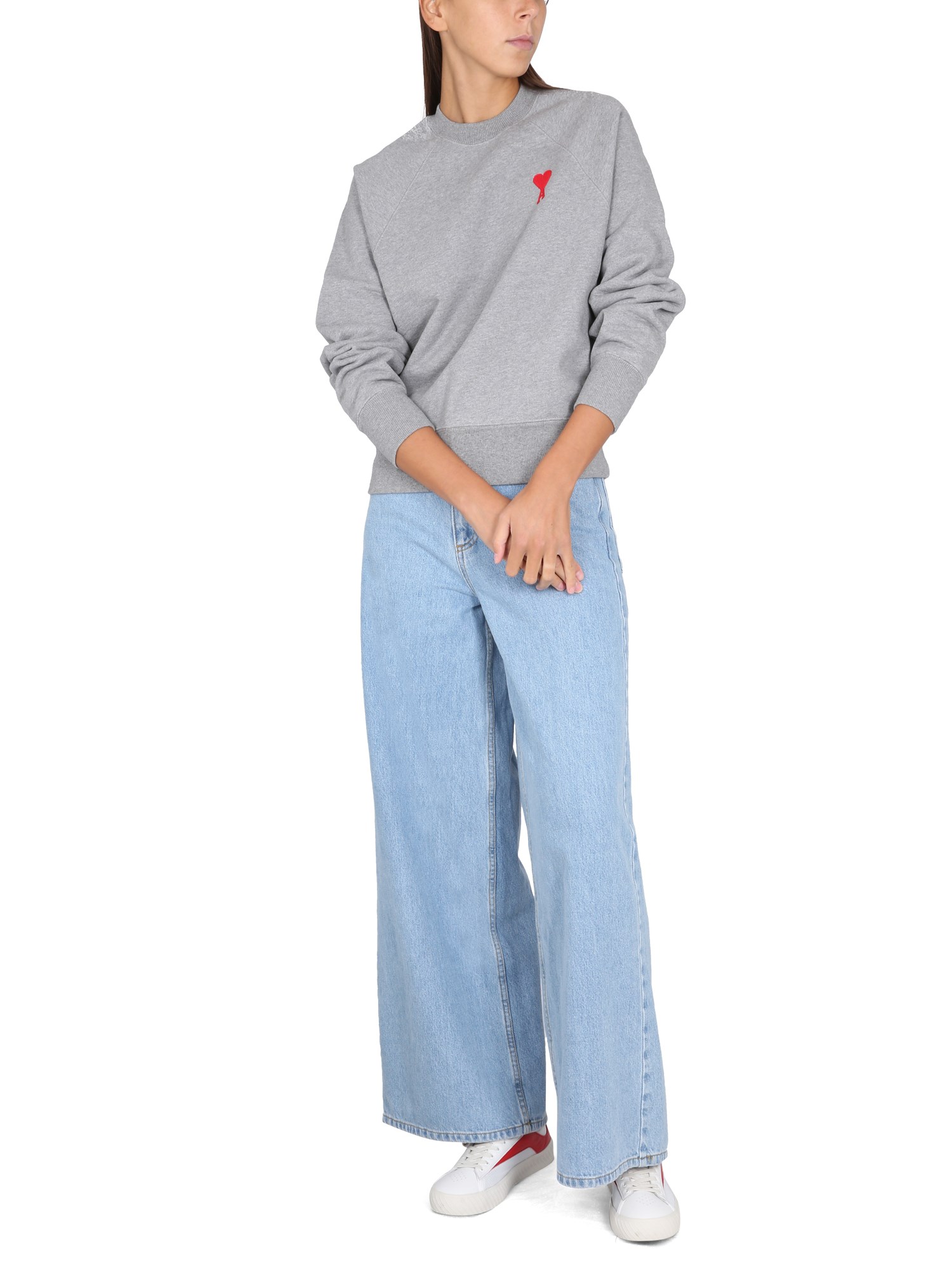 This sweatshirt is made of a lightweight, breathable, and soft cotton blend fabric. It is a basic, comfortable piece for any day. The sweatshirt has a crew neck, long sleeves, and logo print at the left chest. This sweatshirt is made from a durable cotton blend fabric that is soft and comfortable.