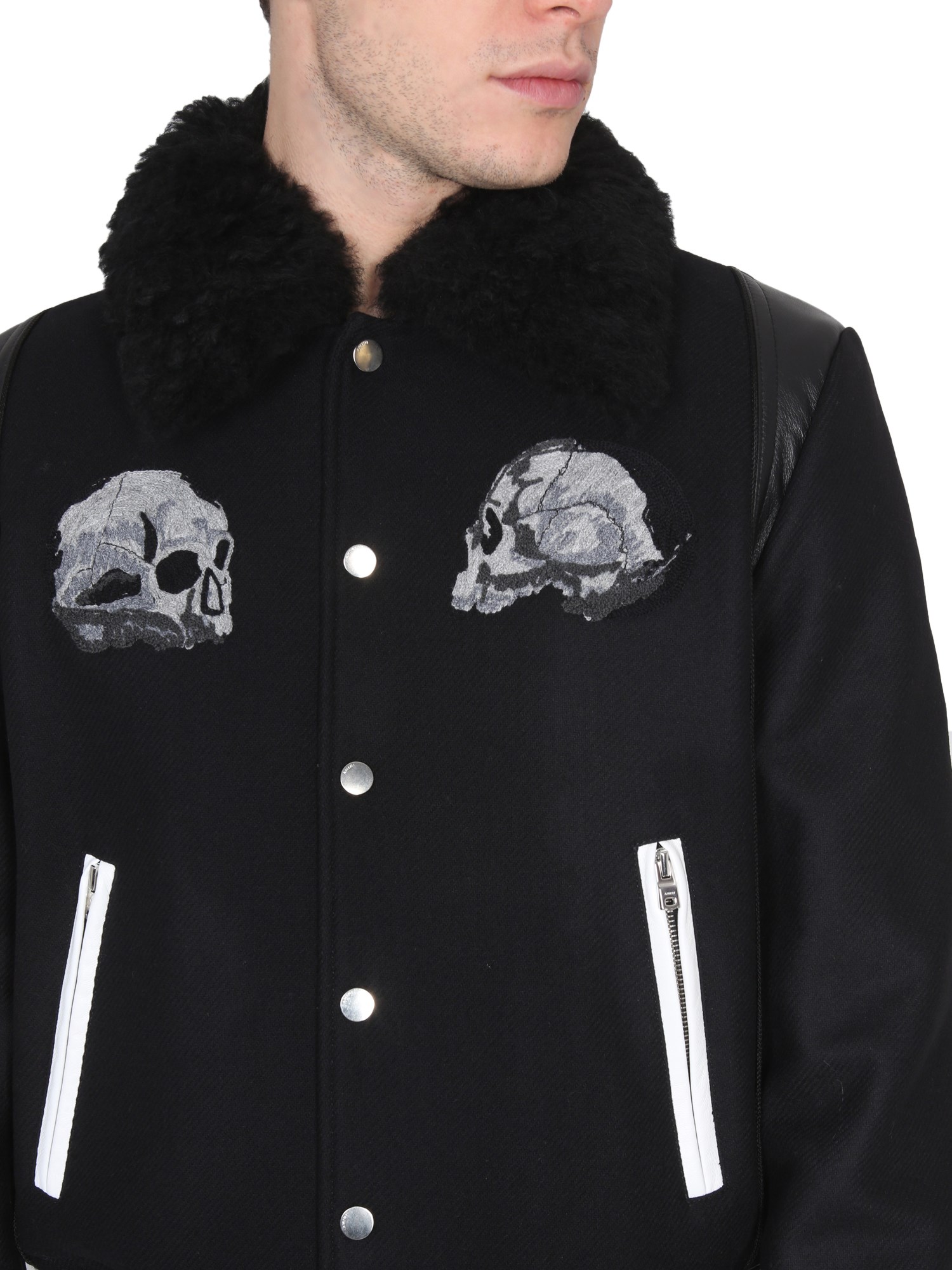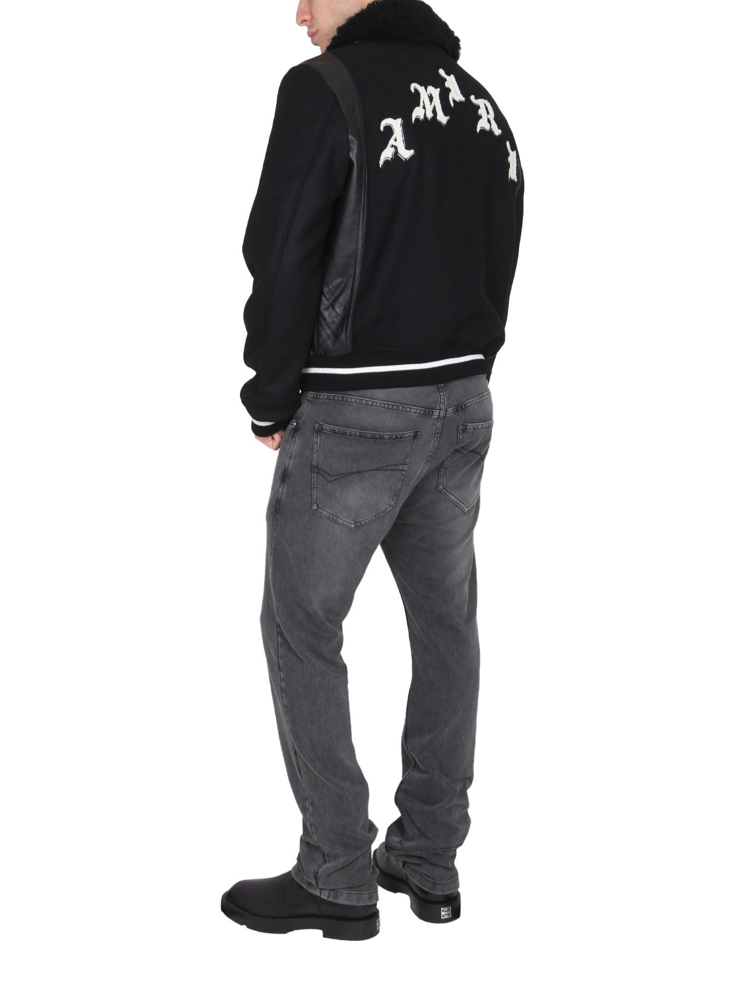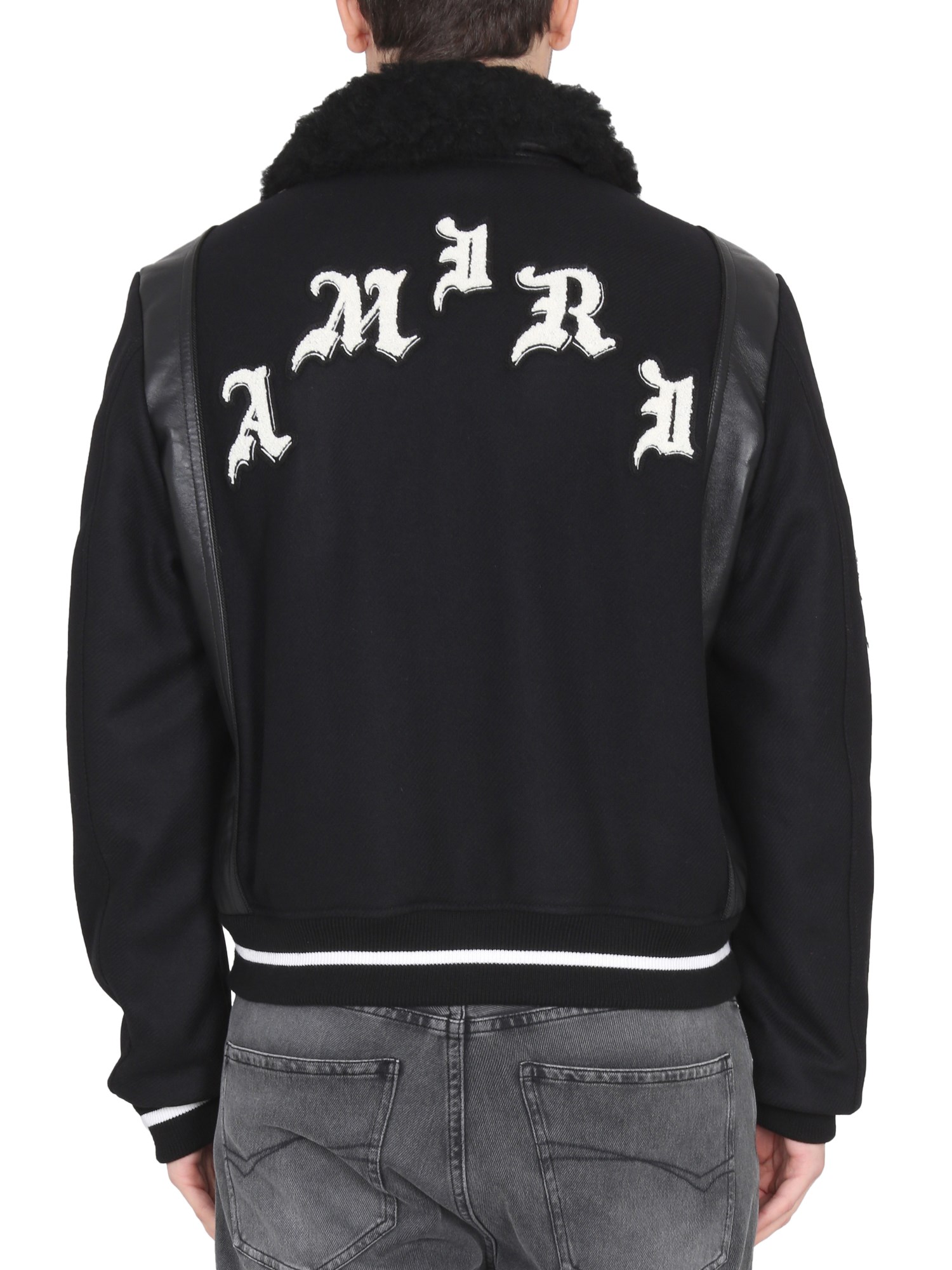 This product is a classic Varsity Jacket from Amiri with a classic collar and a large button closure on the front. This Varsity Jacket is made from 100% wool, which is warm and durable. This jacket is great for layering, with a fur lining on the inside and an elegant and luxurious exterior.