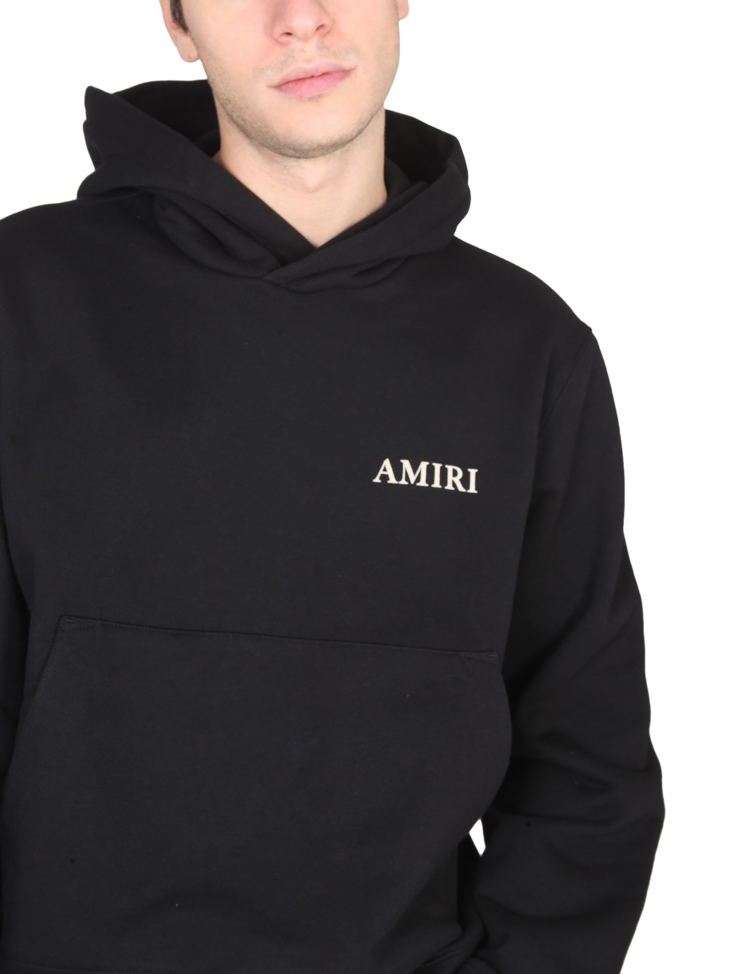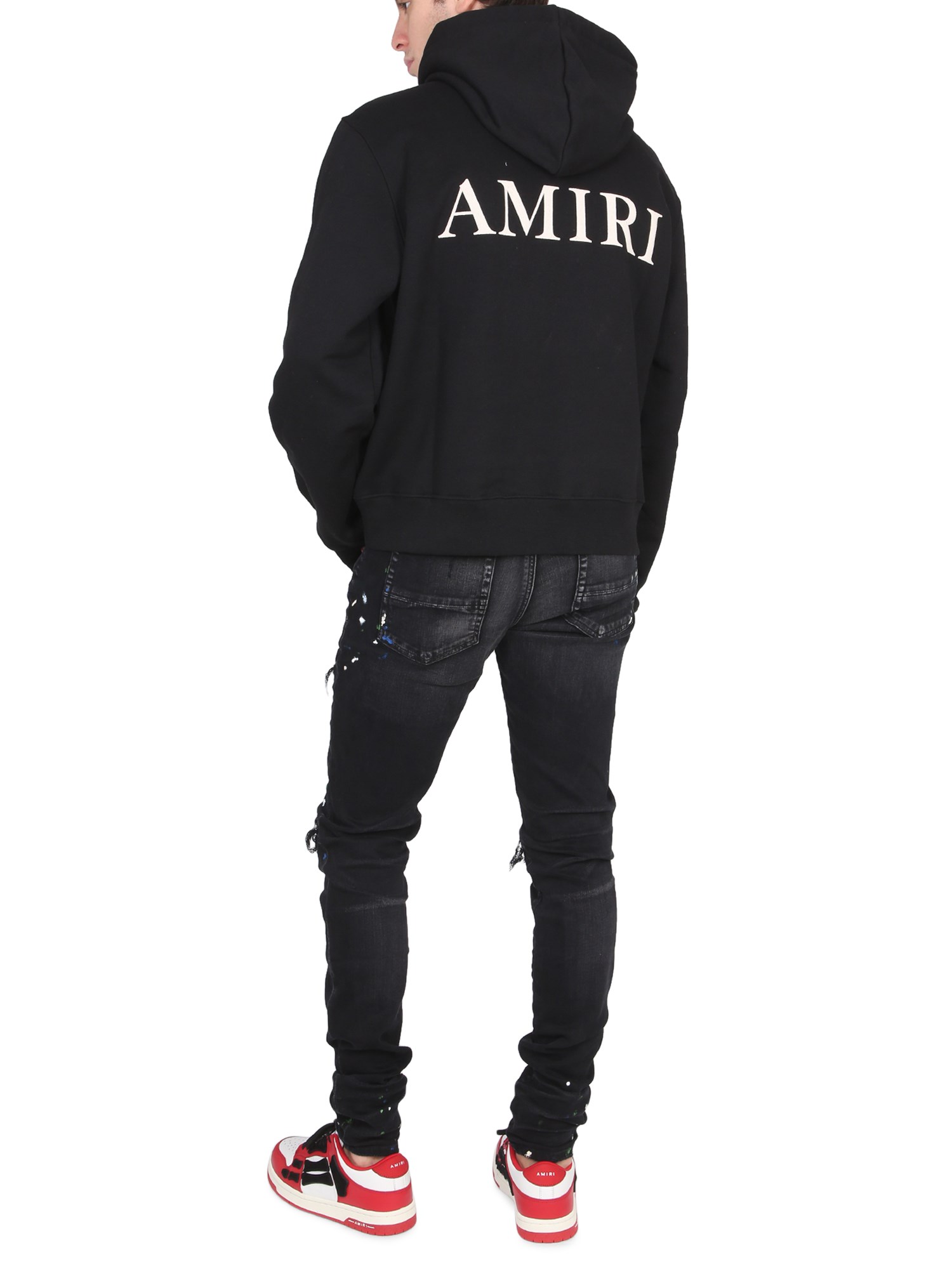 This cosy, regular-fit sweatshirt from Amiri is perfect for layering. It's super soft and has a hood that covers your head, leaving you feeling warm and comfy. The hooded sweatshirt has a long sleeve and straight hem with ribbed detailing on the cuffs and hem. The sweatshirt has a logo print on the front and back.