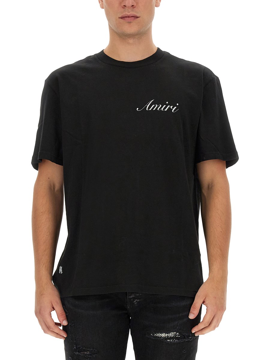Introducing Amiri's crew neck cotton tee, the ultimate chill buddy! This T-shirt is ideal for those carefree days because of its relaxed fit and comfortable half-sleeves. Made from premium cotton, it is incredibly breathable and feels great against the skin. Wear it with shorts or jeans for an easygoing vibe.
