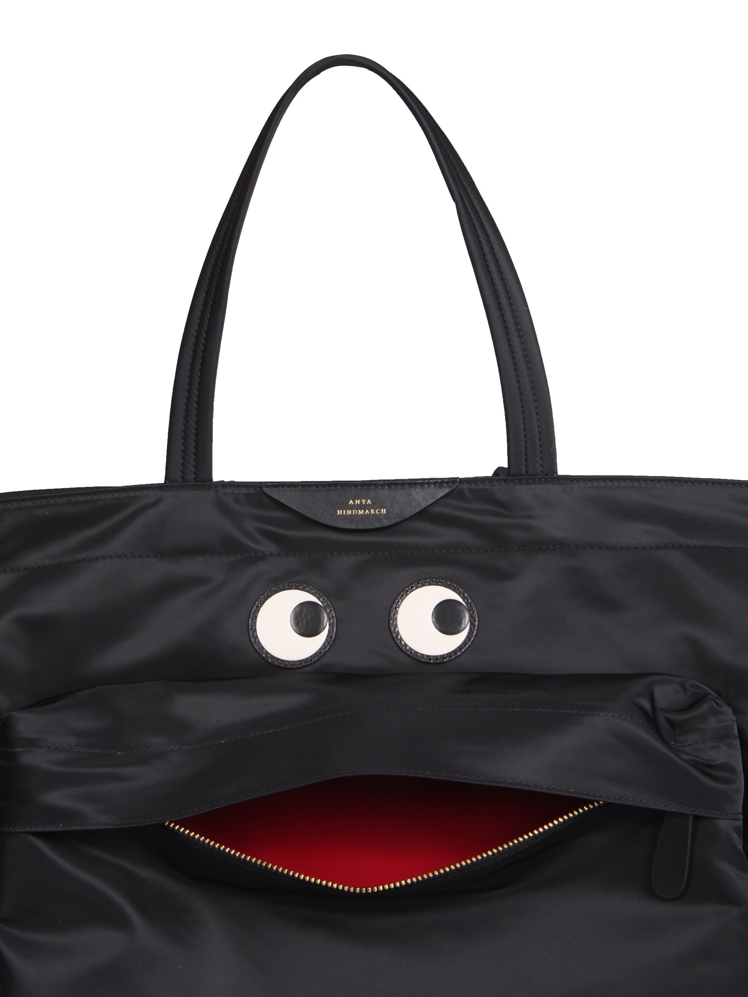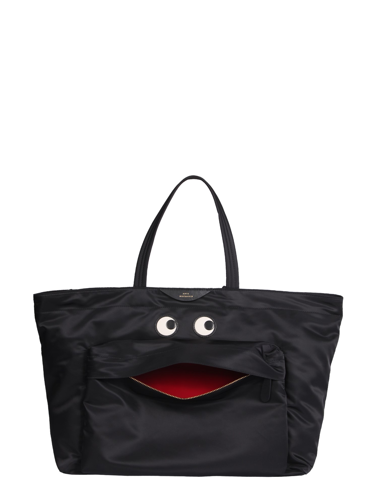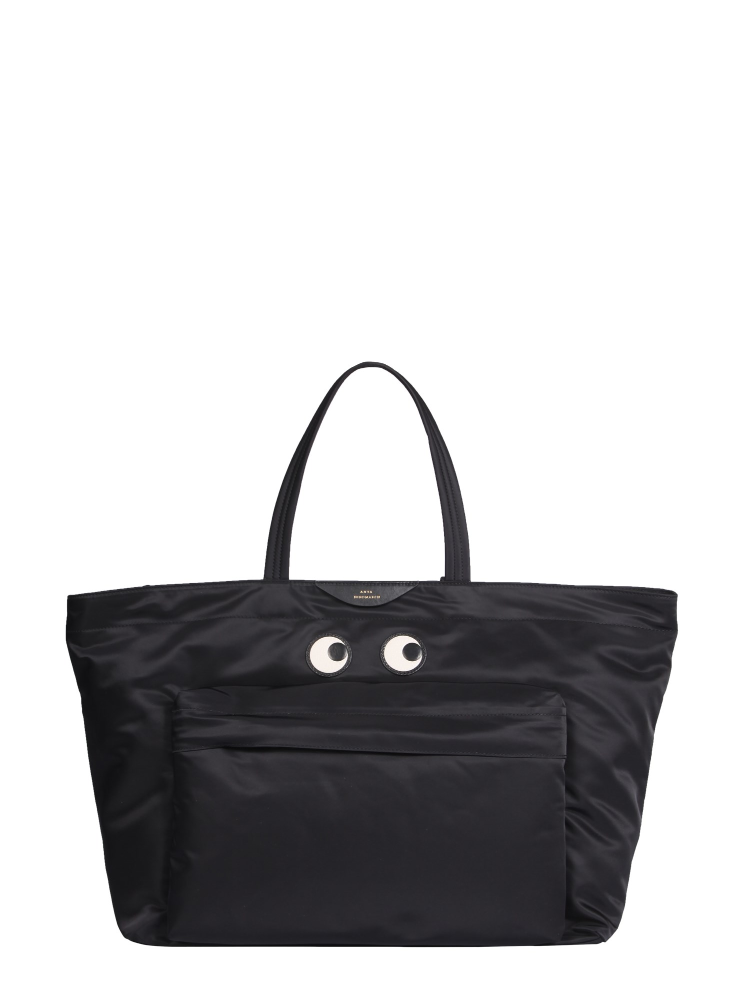 The perfect tote by Anya Hindmarch for the office, this tote is large enough to carry everything you need and has a double handle to make it easy to carry. Made of durable nylon, this tote is made to last and looks great in any office. This bag measures 32 cm x 58 cm x 20 cm and features a leather insert with an embossed logo, leather eyes application, and a front zip pocket.