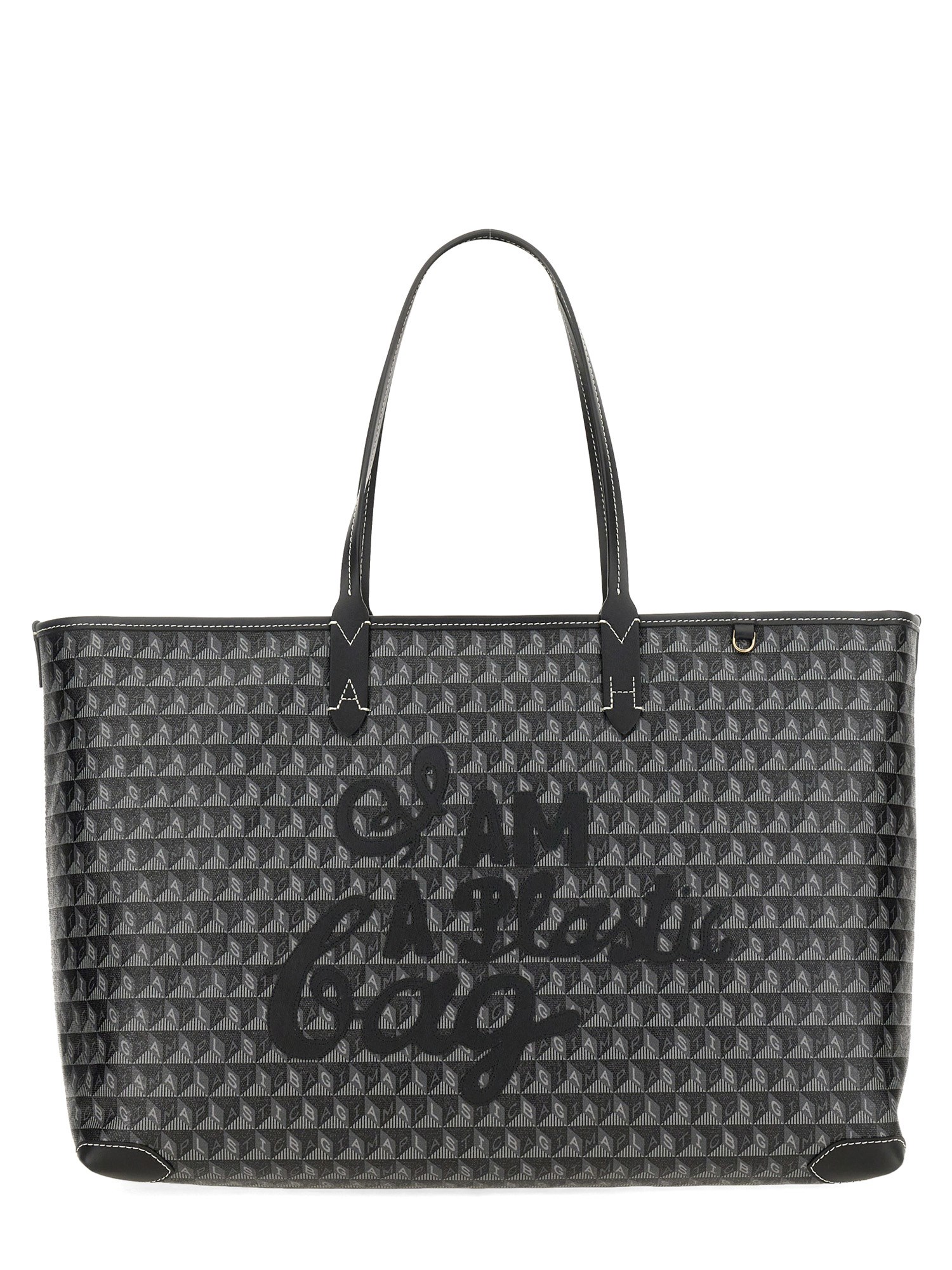 The "I AM PLASTIC BAG" tote bag from Anya Hindmarch is a stylish and eco-conscious accessory that makes a bold statement. Crafted from durable materials, this tote not only showcases a playful design but also promotes sustainability by encouraging the use of reusable bags. With ample space for your essentials and a comfortable handle, it seamlessly combines functionality with fashion, making it the perfect companion for shopping trips or everyday outings. Elevate your accessory game while making a positive impact on the environment with this chic tote.