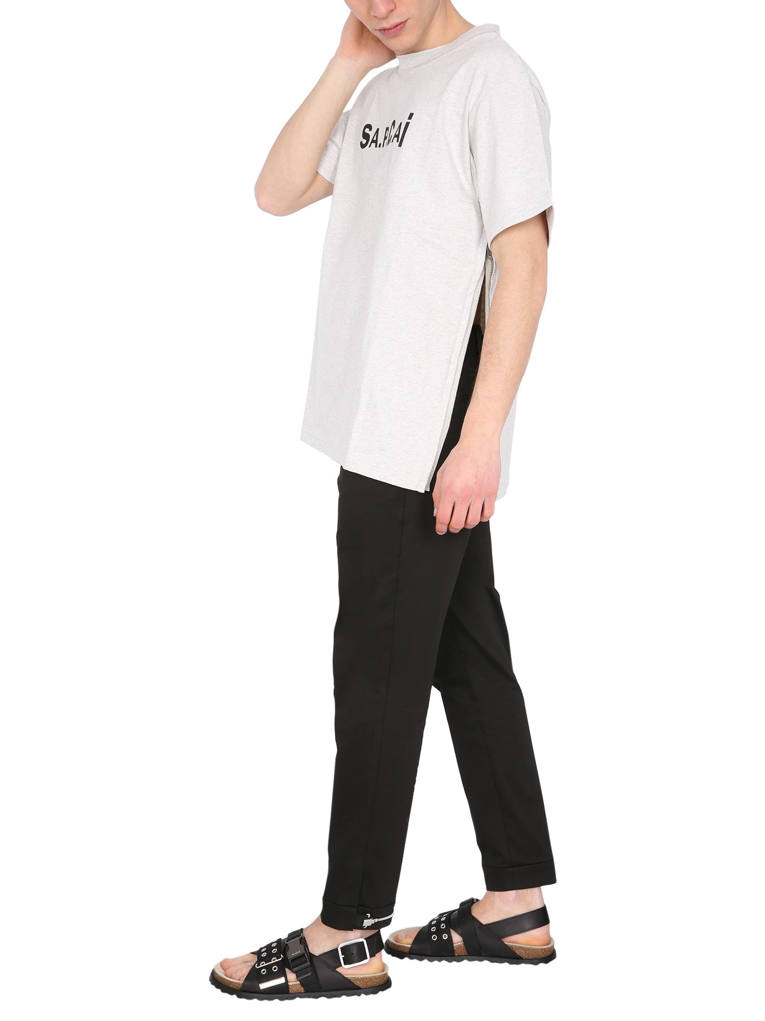 This women's crew neck printed front cotton T-shirt by A.P.C X Sacai features a printed front design, and side zippers and is made of 100% cotton. The cotton material is soft and comfortable, but sturdy enough to last for years. It's great for everyday wear and can be worn with a pair of jeans and a cute pair of boots.