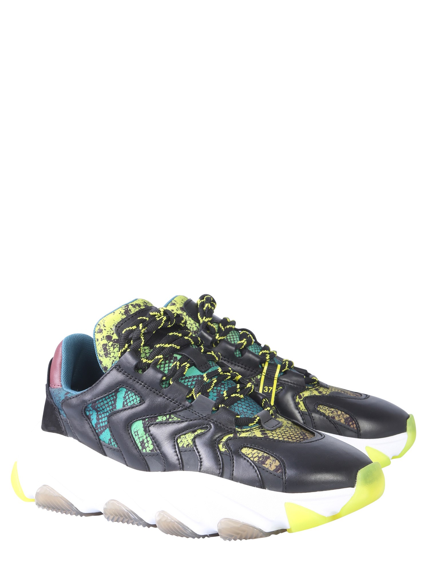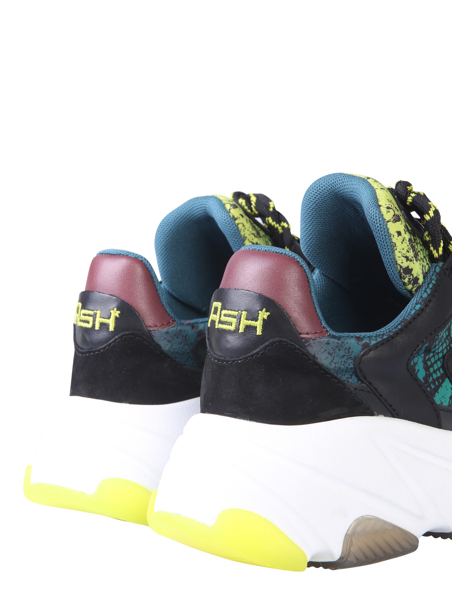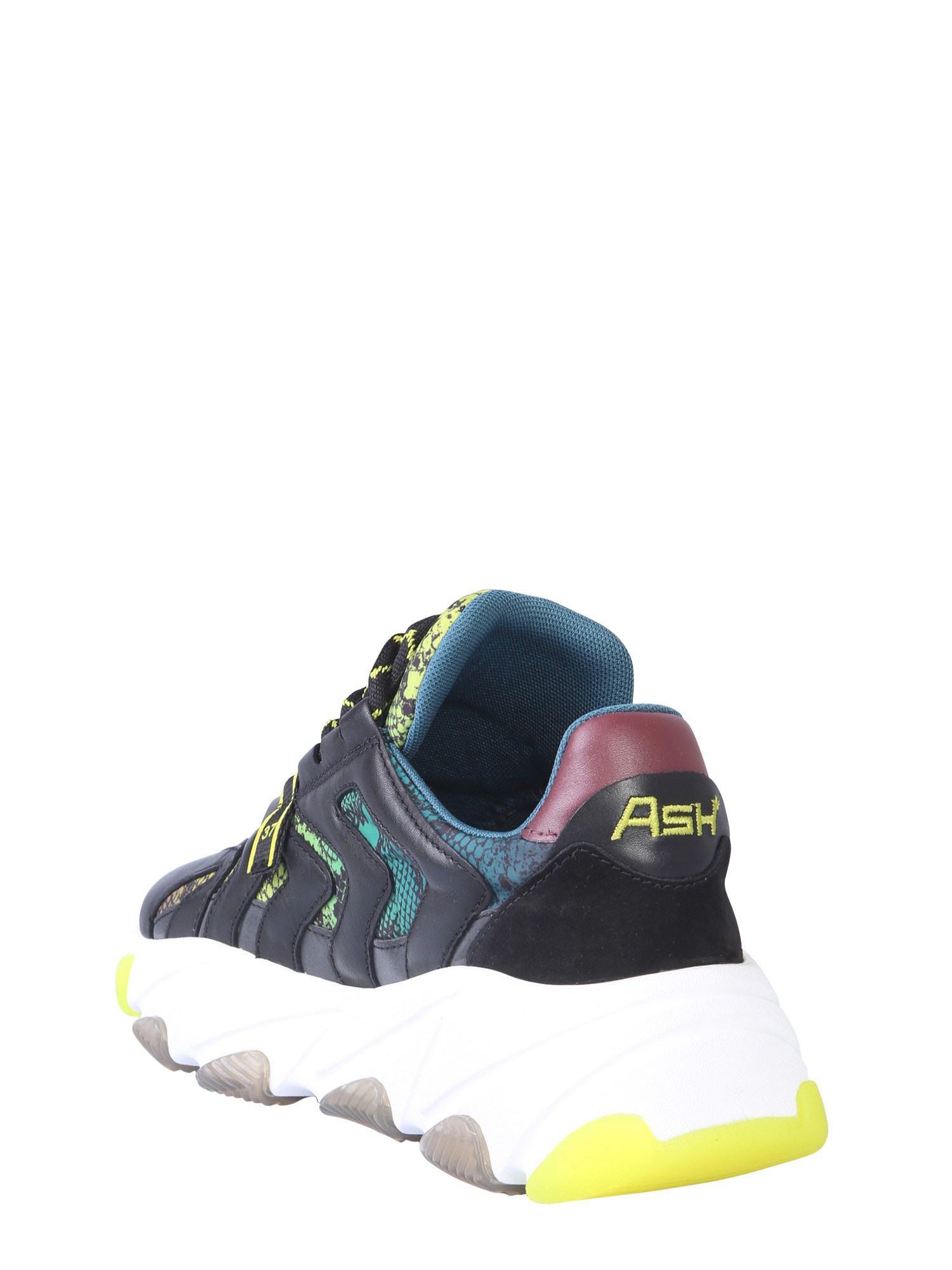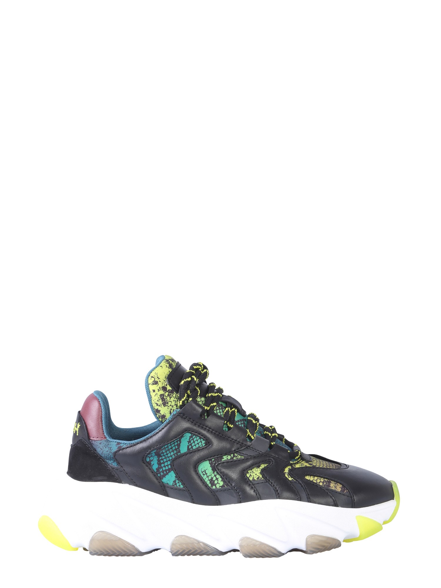 Make a lasting addition to your footwear collection with these extreme sneakers from ASH. Made of 100% calf leather, the shoes are durable. They have mesh inner and lace-up closure. The reflective details at the tip, heel counter and laces make them stylish. You can style them with trousers, jeans as well as Bermuda shorts for a complete look.
