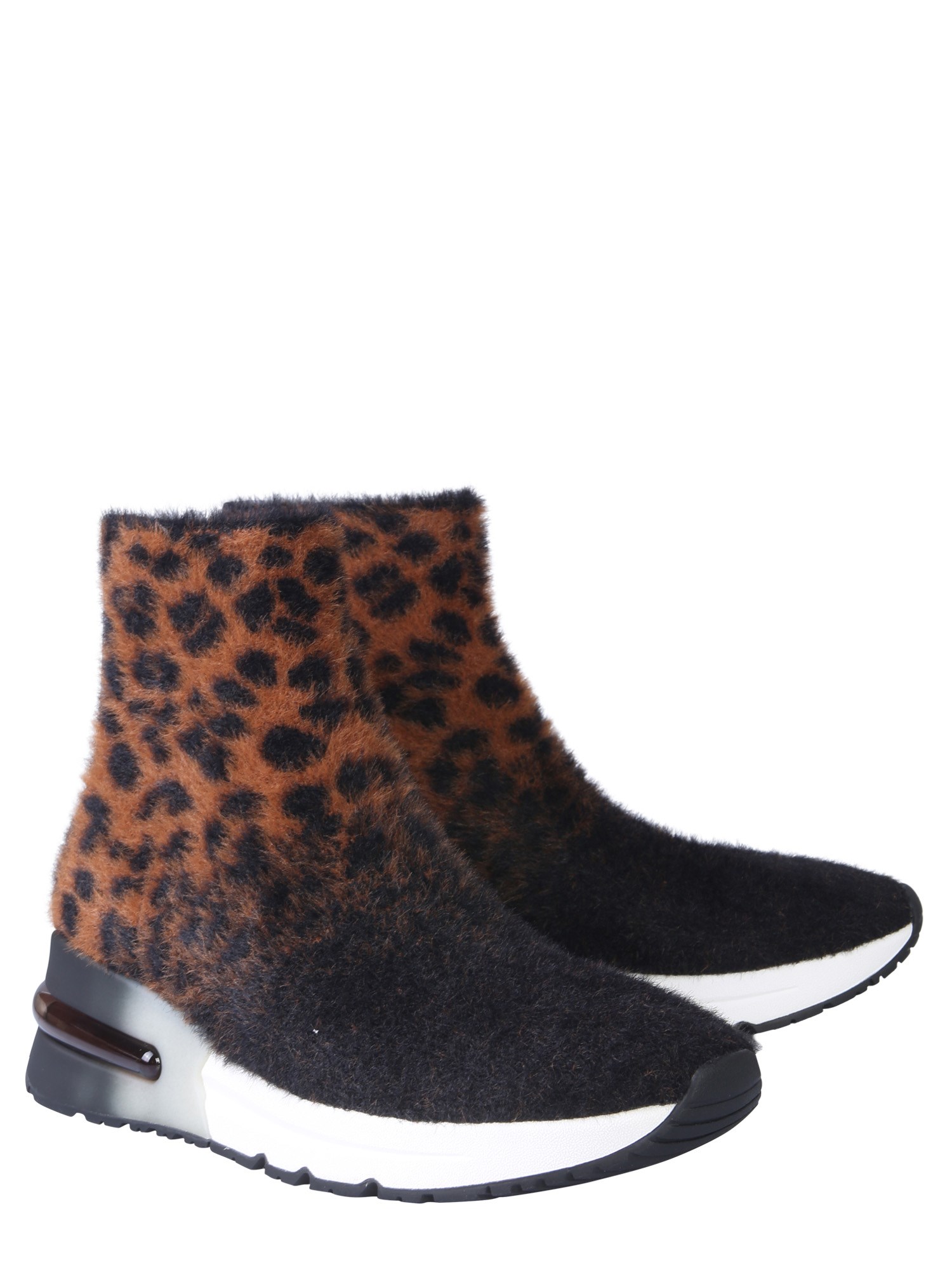 Do not compromise with style even in chilly winter with these king sneakers from ASH. Their plush exterior is made of 100% shirt that is soft and breathable. They have slip-on closure and air bearing detail on the heel. These ankle length sneakers can be matched with black jeans and an overcoat for a complete winter look.