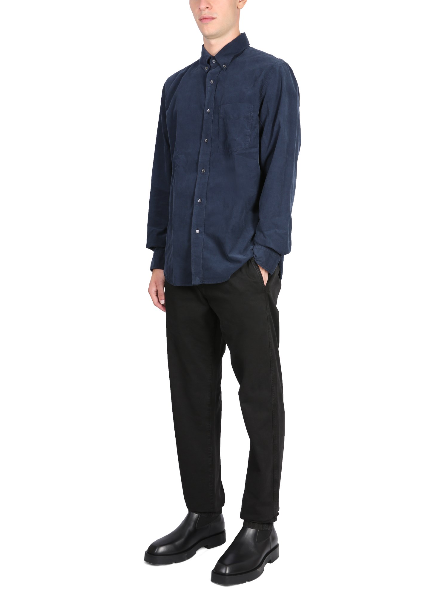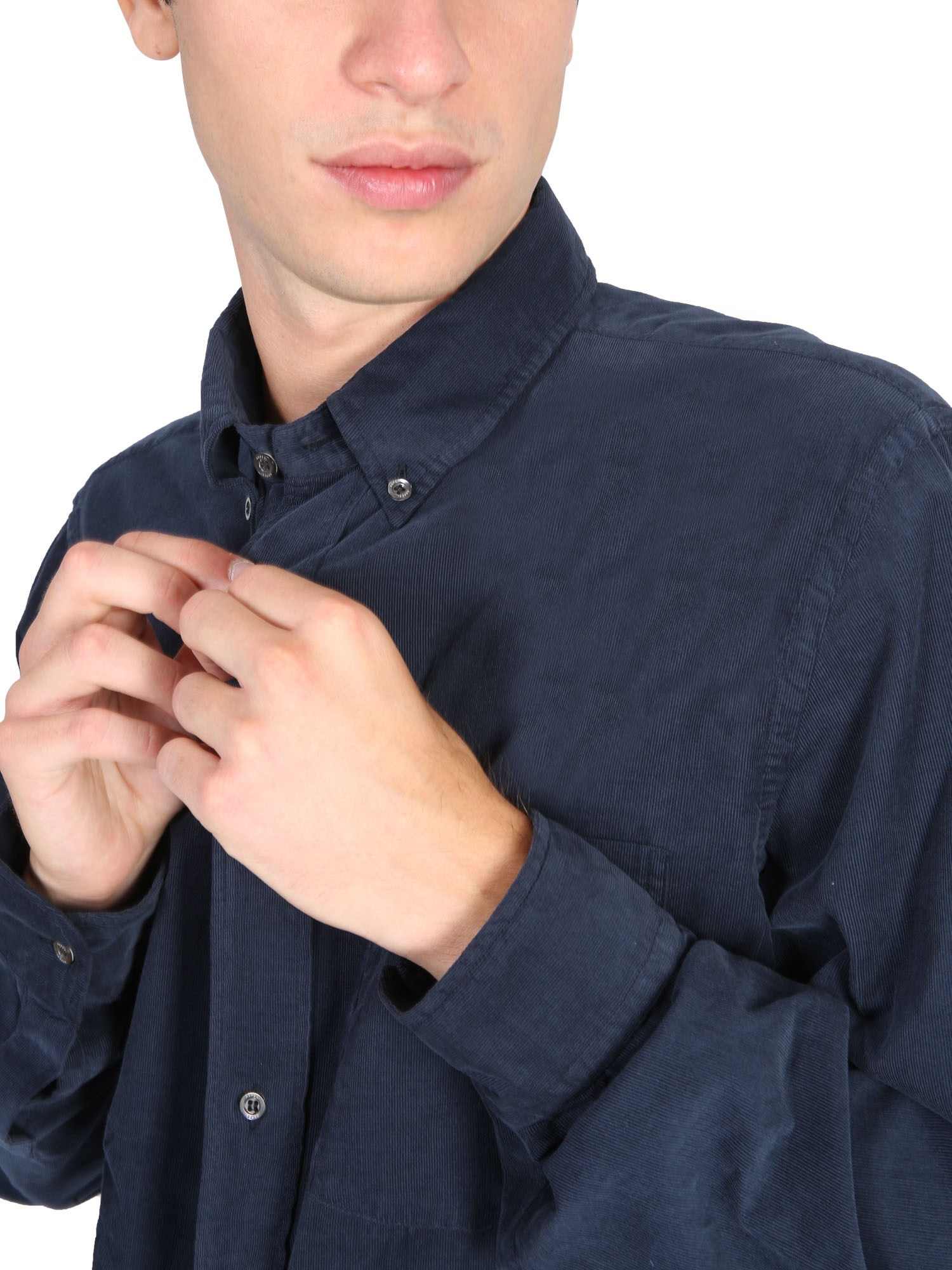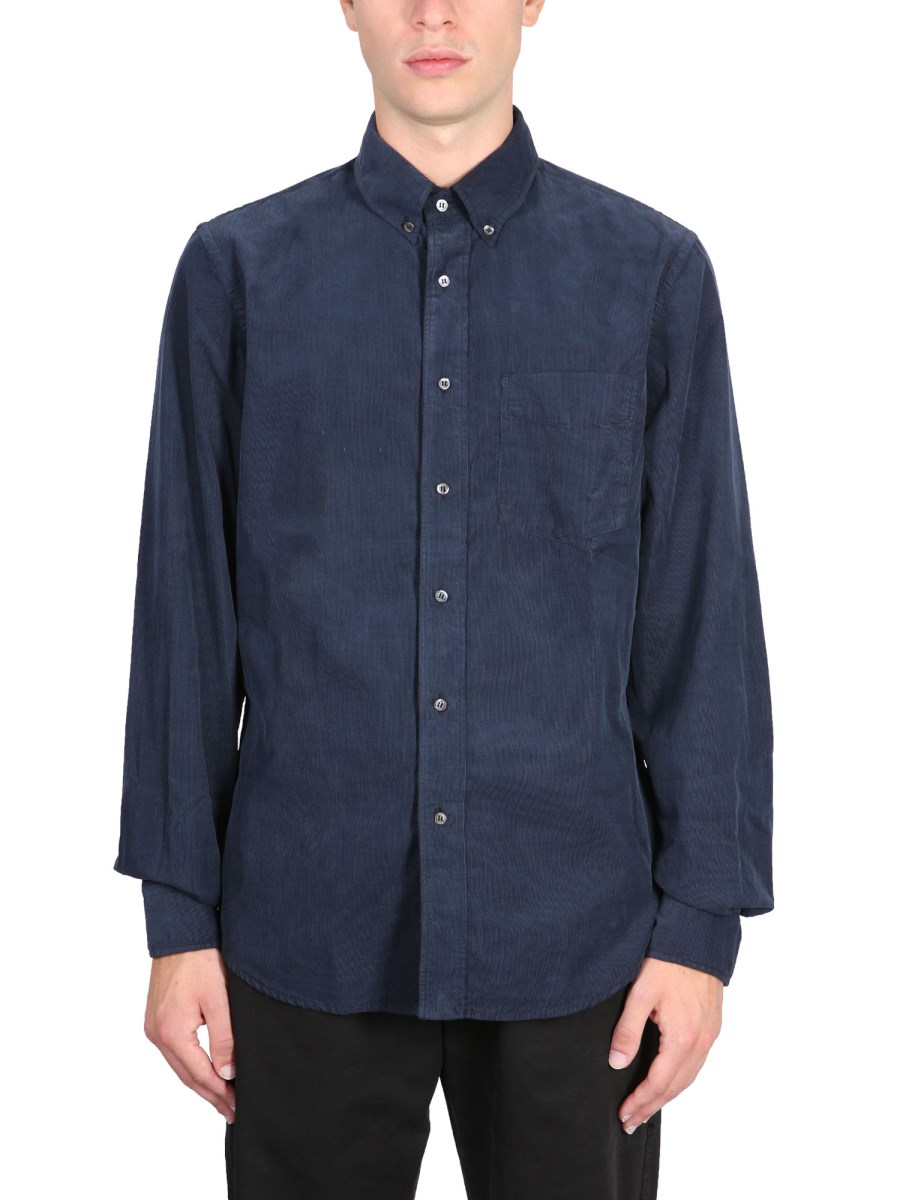 The soft, natural-looking corduroy shirt by Aspesi is a nice change from traditional wear. Made of 100% cotton, this shirt is easy to wash and is also resistant to wrinkles. The shirt features a classic collar, long sleeves with buttoned cuffs, and front button closure. The regular fit shirt has a patch pocket on the left chest.