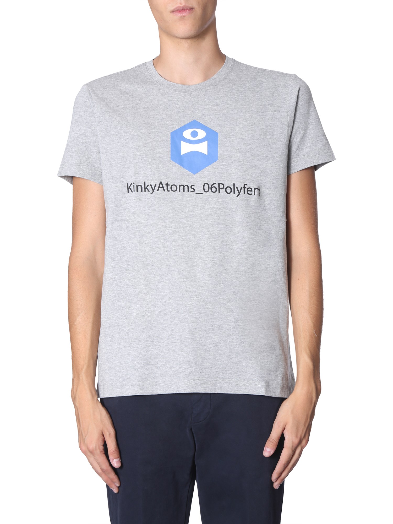 The round neck T-shirt from Aspesi is an ideal addition to your summer collection. Made with a blend of cotton and polyester for colour-fastness and easy washability. It has a kinky atoms polyfem print for trendy and casual look. Pair up this basic T-shirt with denims and sneakers for your everyday look.