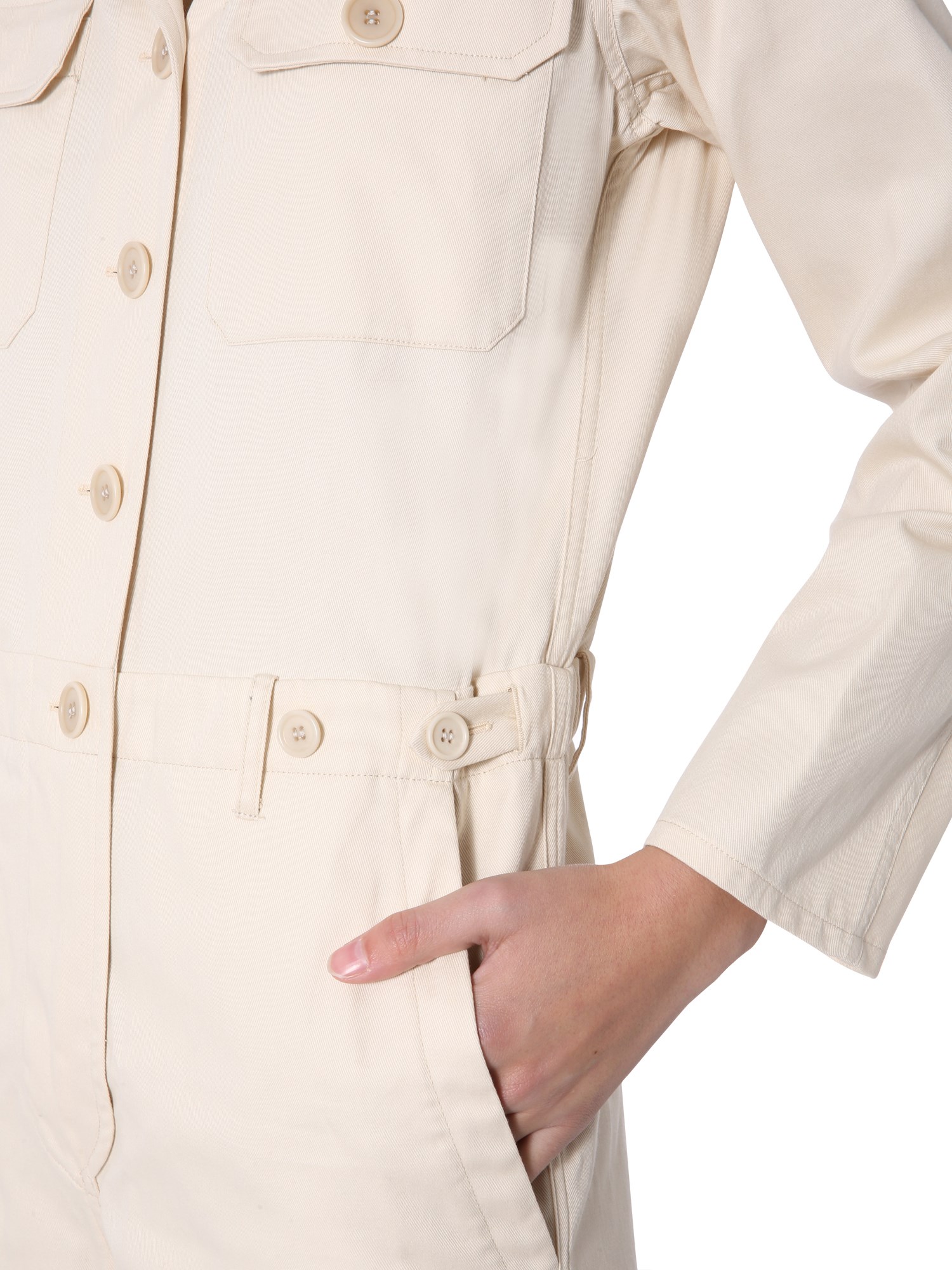 If you like investing on distinct and stylish clothes, then look no further and get this jumpsuit from Aspesi. Designed to be so soft that you barely feel any irritation, this suit is made of 100% cotton, which is an amazing breathable fabric as well. The two chest and two side pockets offers space to carry stuff.