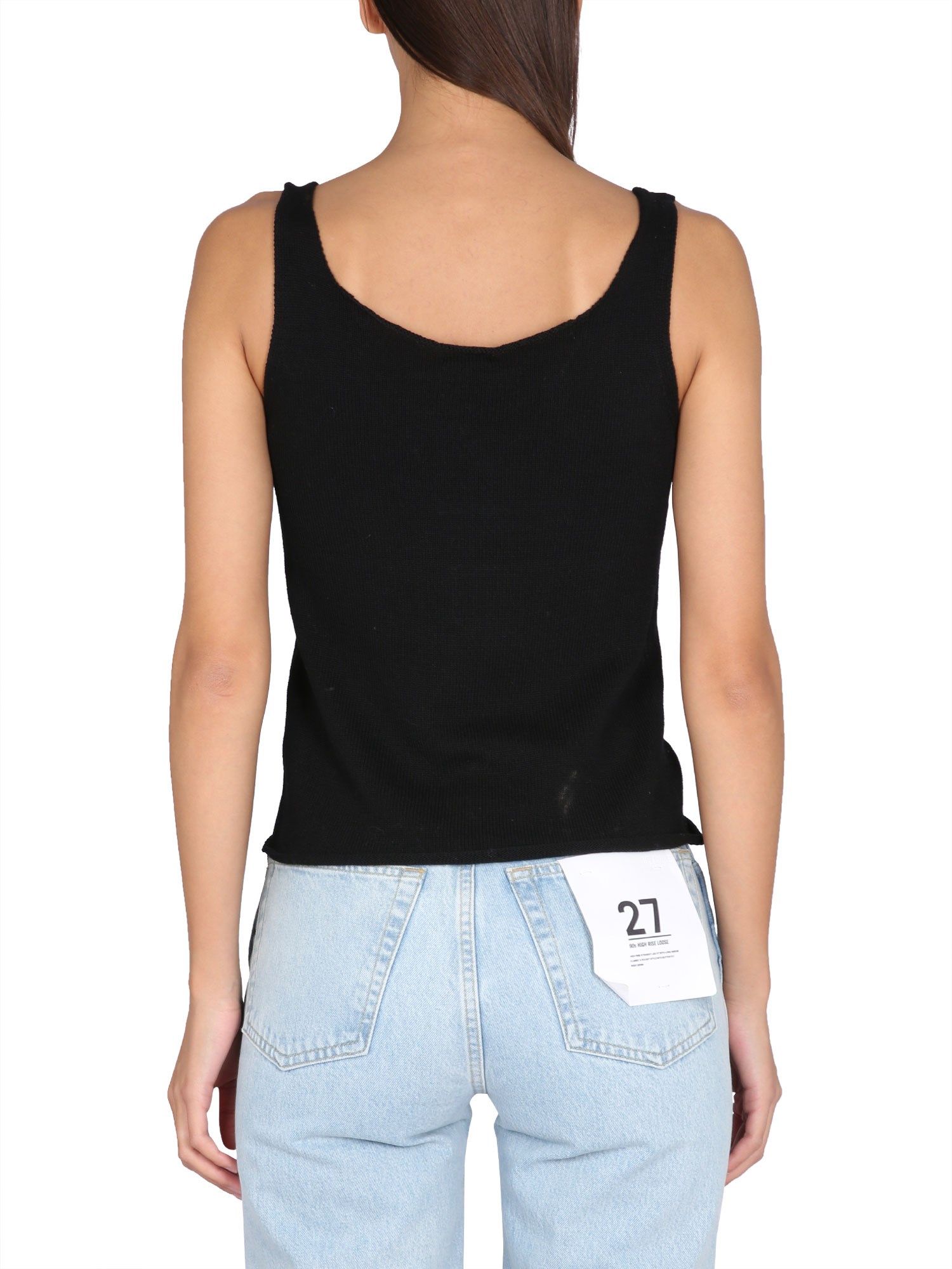 - ROUND SHOULDER- RIBBED DESIGN- RAW CUT HEM- 100% COTTON- THE MODEL IS 180 CM TALL AND WEARS SIZE 38 IT