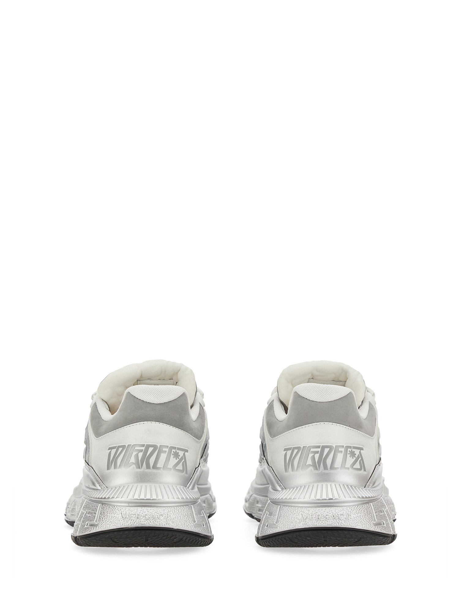 The Trigreca Leather Sneakers from Versace are the epitome of modern luxury and style. Crafted with utmost precision, these sneakers feature a unique geometric design on the upper, showcasing the iconic Versace logo. Made with premium leather, they offer both durability and comfort. The cushioned insole provides all-day support, making them perfect for daily wear or adding a touch of sophistication to your athleisure look.