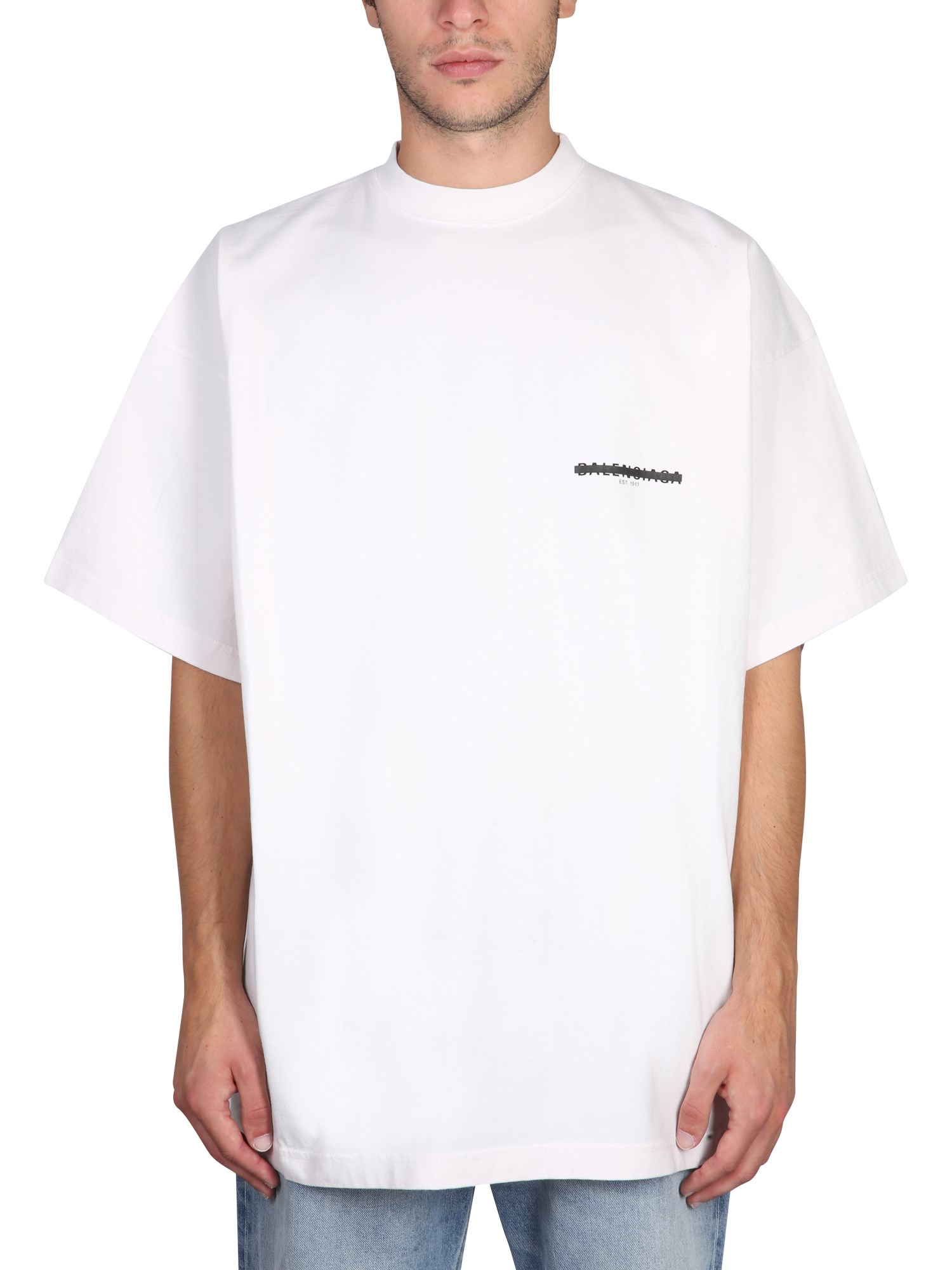 This classic tee from Balenciaga is perfect for layering and looks great with jeans or leggings. A solid, sturdy cotton jersey T-shirt that will hold up to years of wear and tear. The soft and luxurious fabric makes for a relaxed fit, and the side panels add a fashionable touch.