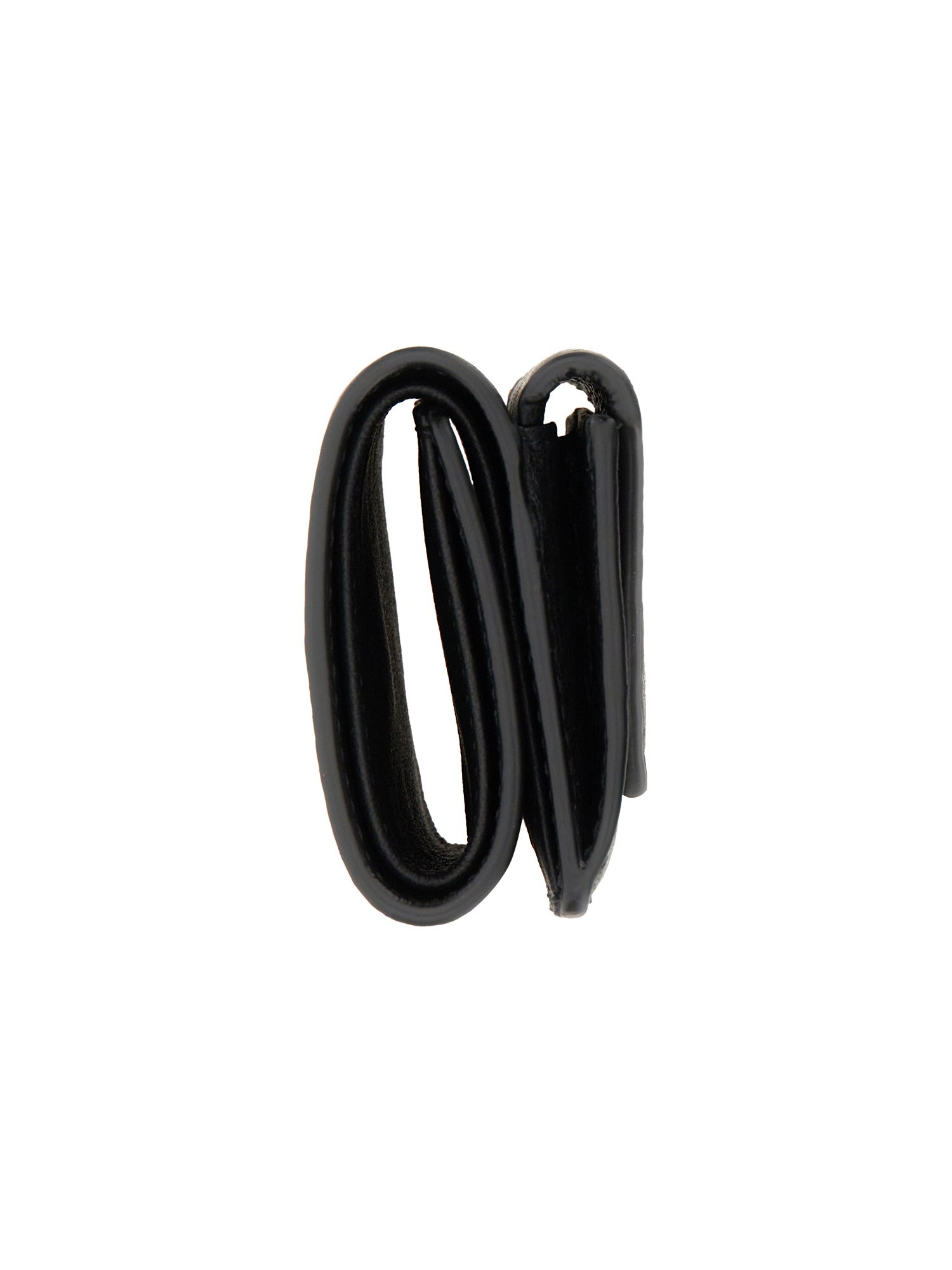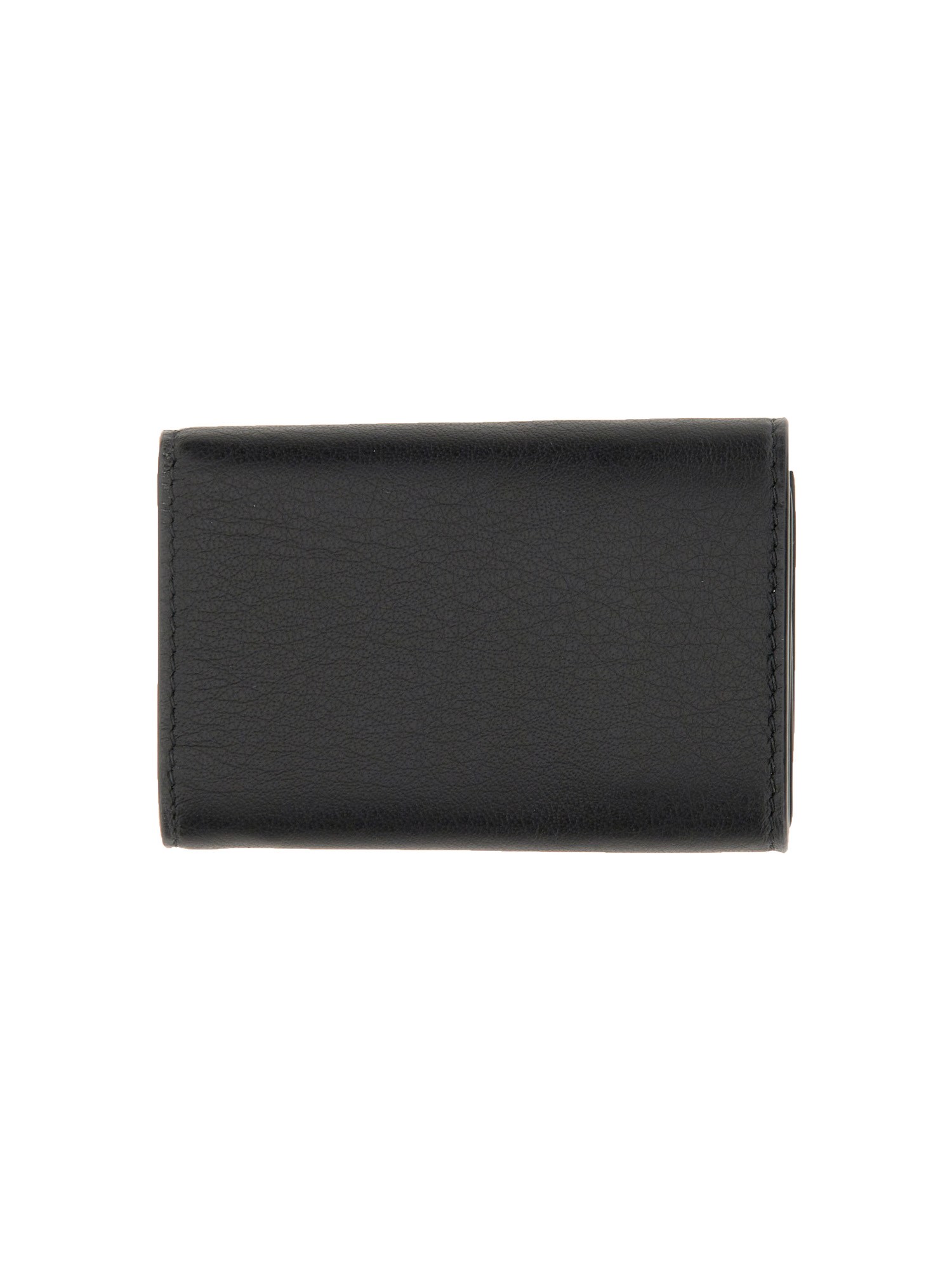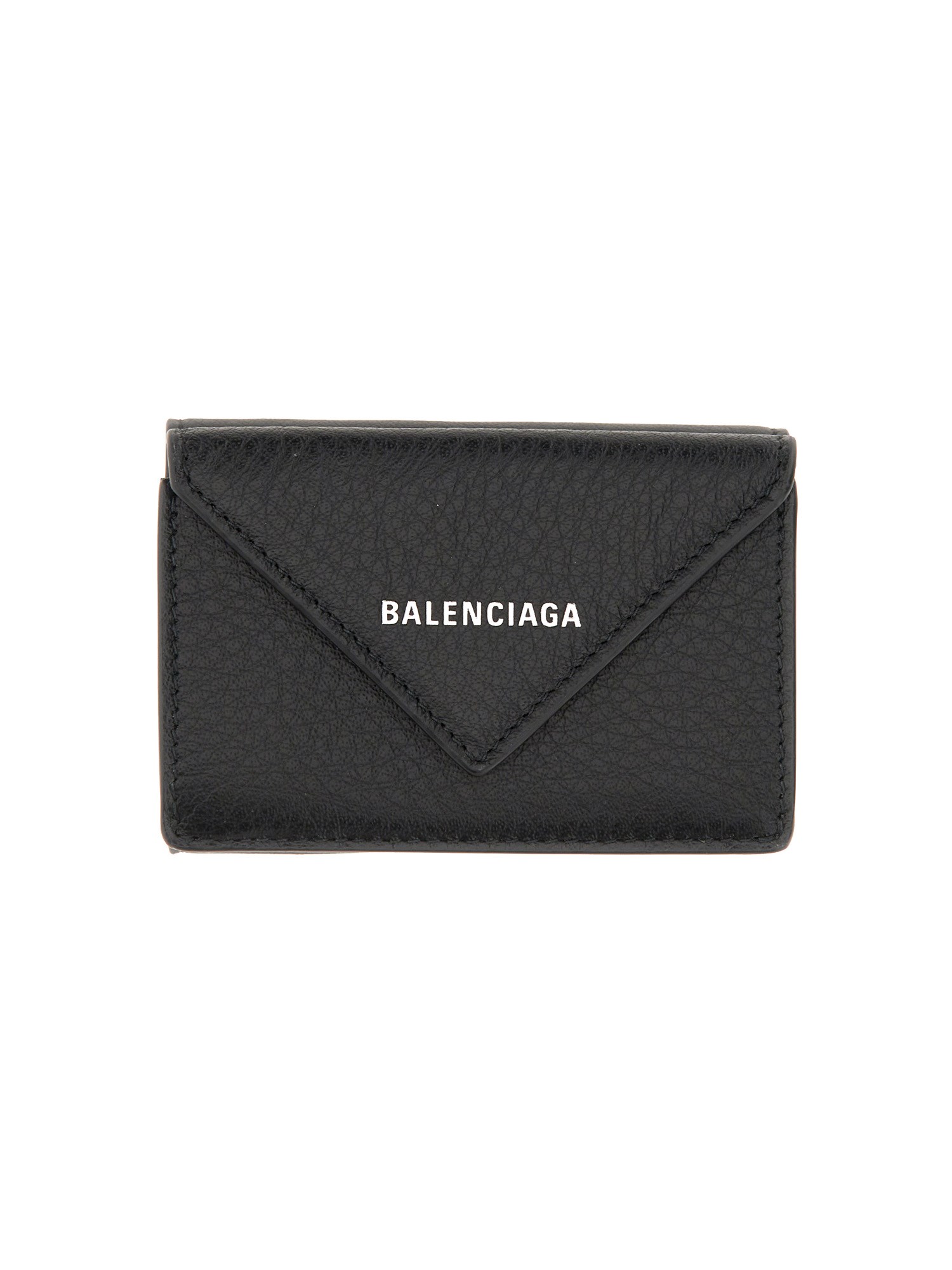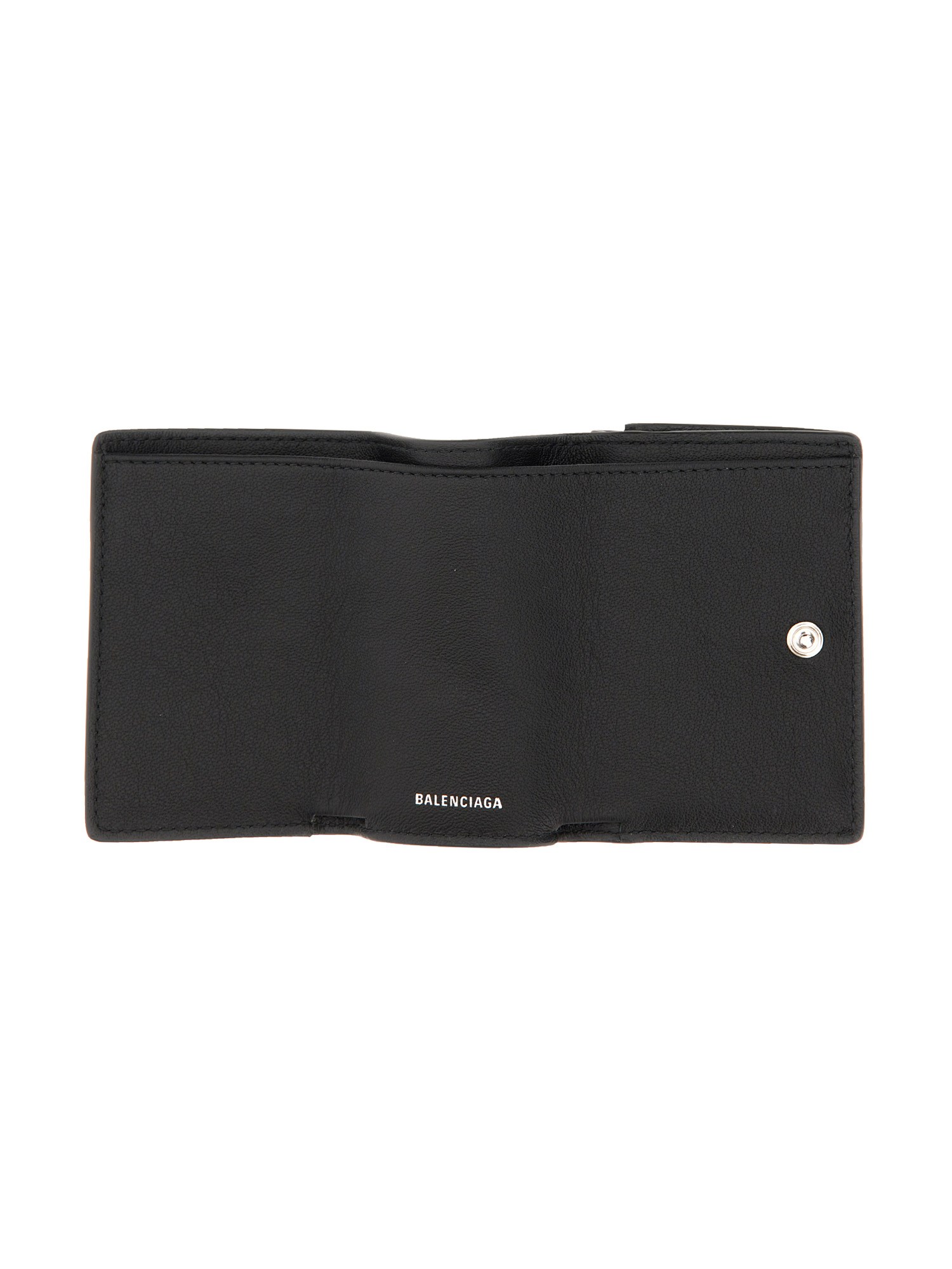 This wallet from Balenciaga is perfect for keeping your cards and money organized in your pocket. It features a front logo mini leather wallet with a snap button closure and a front flap with card slots. This mini wallet is a must-have for anyone who needs to carry their essentials in a simple, yet stylish way.