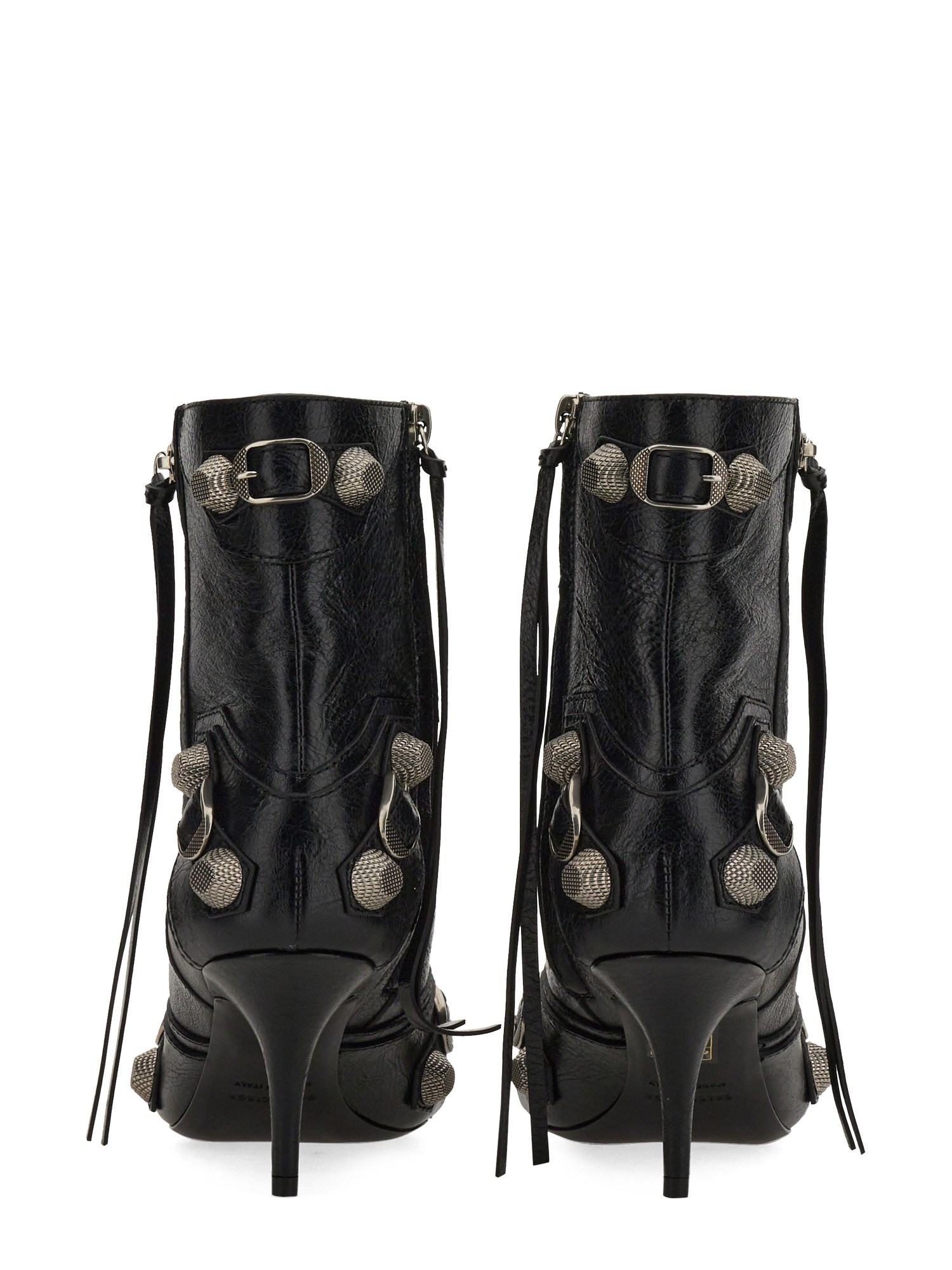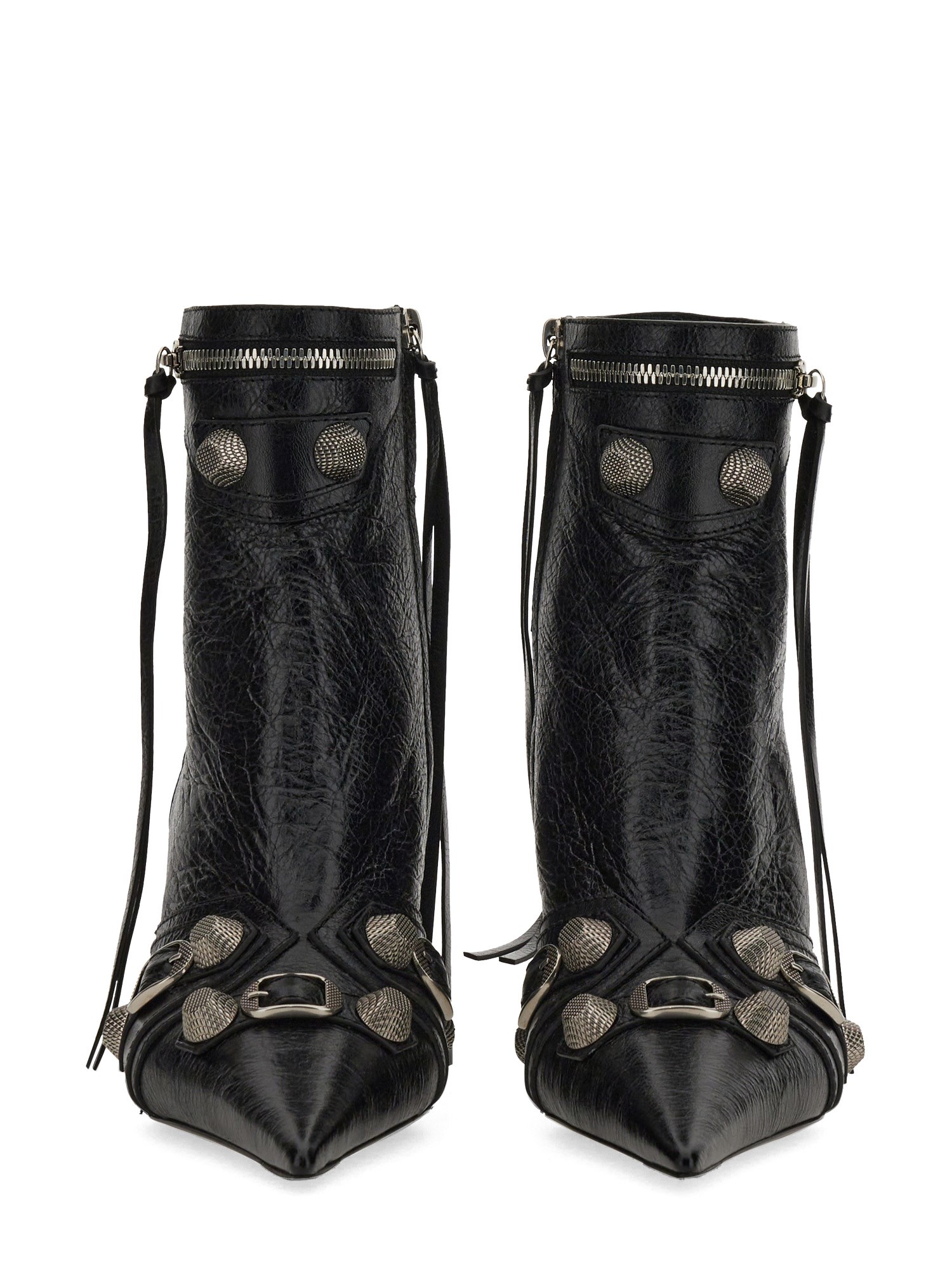 A pointed, upper leather ankle boot from Balenciaga. With a side zipper for easy on and off, these boots are made of vegan suede. The outside of the boot is smooth and supple, while the inside is lined with an ultra-soft, cushioned insole. The pointed upper leather ankle boot features a sleek pointy toe and a sturdy heel that will give you the perfect height.