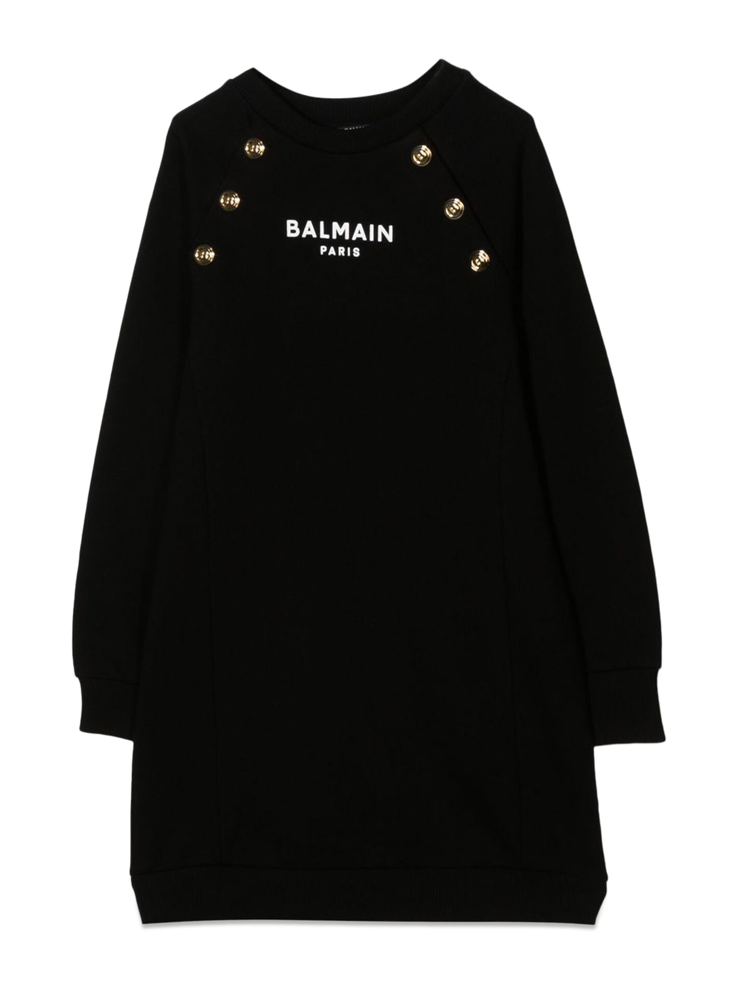 The stunning gold buttons dress from the house of Balmain is the perfect mix of sophistication and elegance. The high-quality fabric makes the dress a long-lasting piece that is perfect for any occasion. The pull-on style dress has a crew neckline, long sleeves, and a printed front.