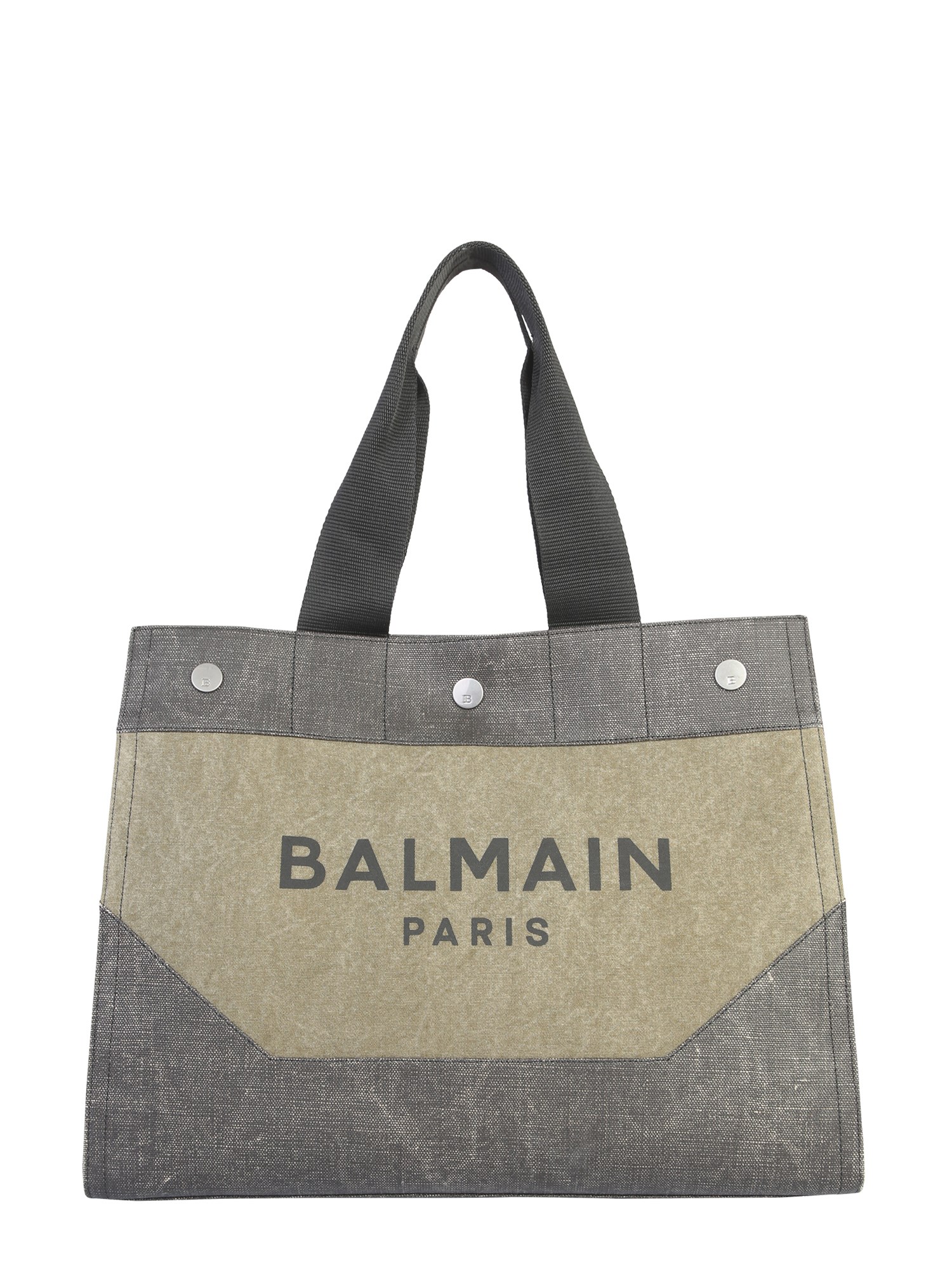 Heading for shopping spree? Then don’t forget to carry this spacious shopper bag with logo from Balmain. Its roomy single main compartment is secured with a pressure button closure. Made from linen and acrylic, the bag is washable and easy to care for. It has one inner zip pocket and silver finished metal accessories.