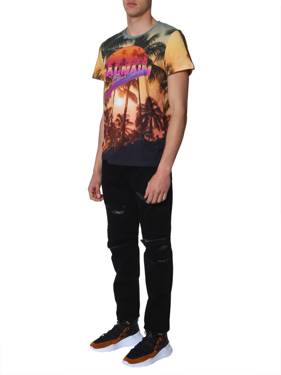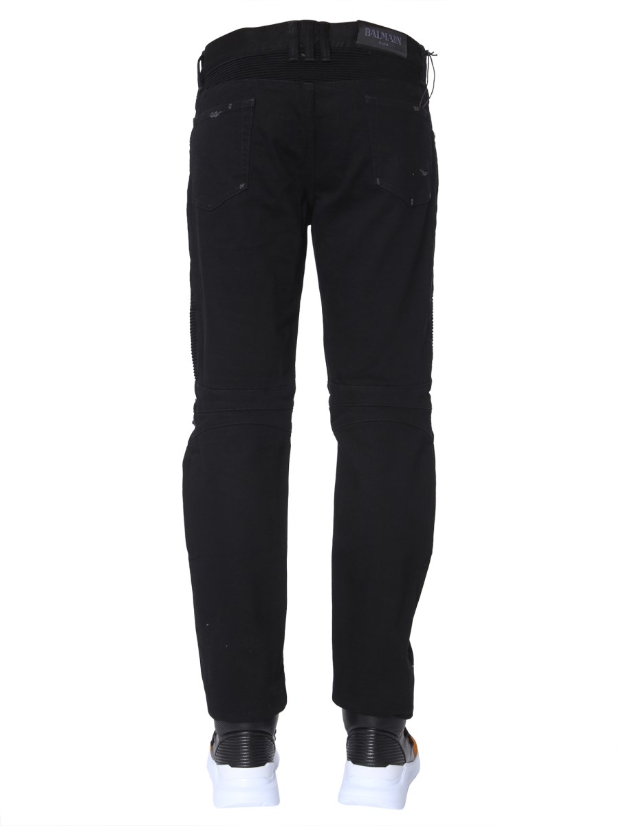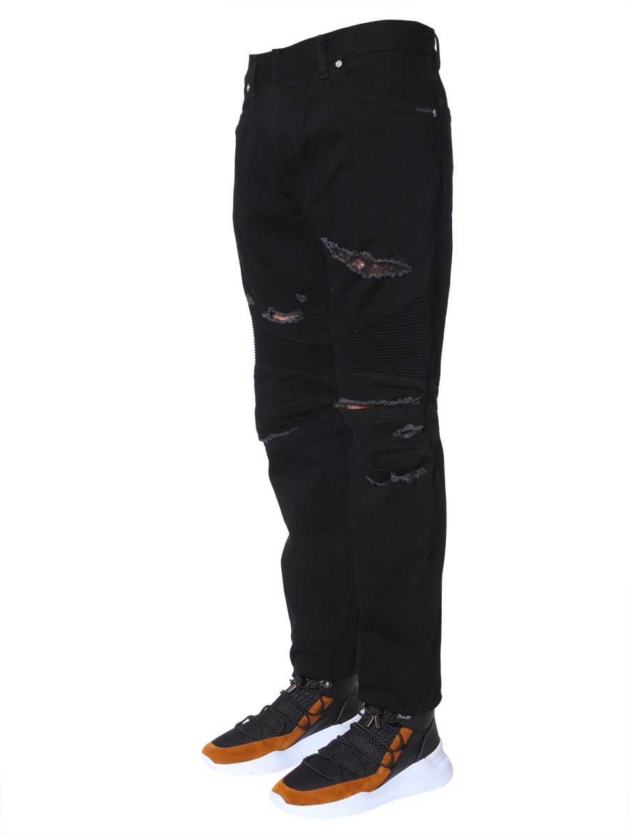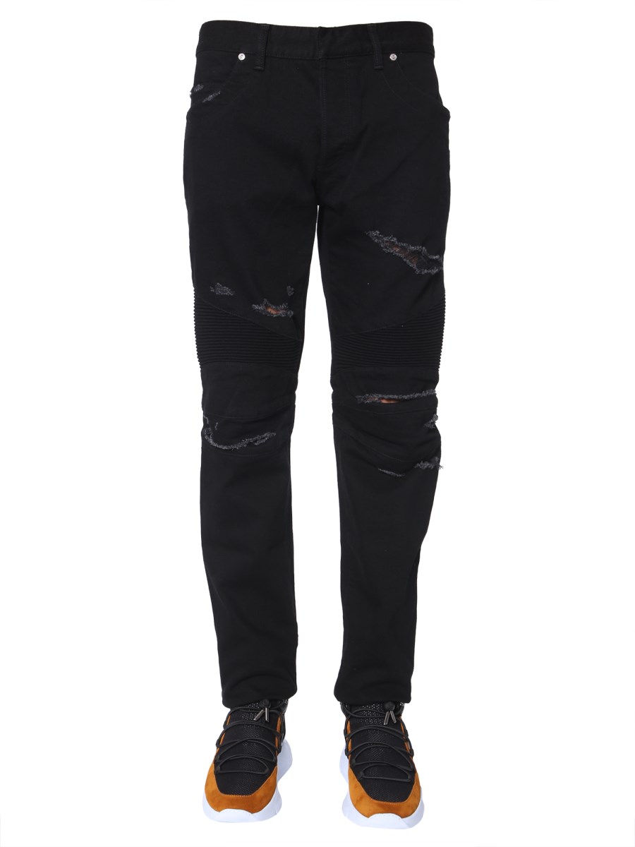 Look fashionable in this slim fit jean by Balmain. Made from a blend of 98% cotton, 2% polyurethane, the jeans is sure to provide you a perfect slim fit. Classic details of hidden closure with button and frayed details complete the style of this jeans. Flexible and comfortable fabric makes it a suitable addition to your everyday wearables.