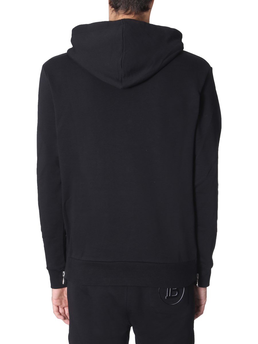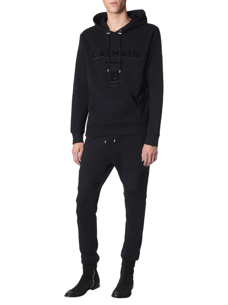 Winter calls for this hooded sweatshirt from Balmain. It has a single-tone exterior that combines with printed branding for a decent and smart look. Made of premium cotton fabric, it has a brushed inner that gives a soft and snugly feel. This oversize-fit sweatshirt doesn’t let you feel uncomfortable or itchy.