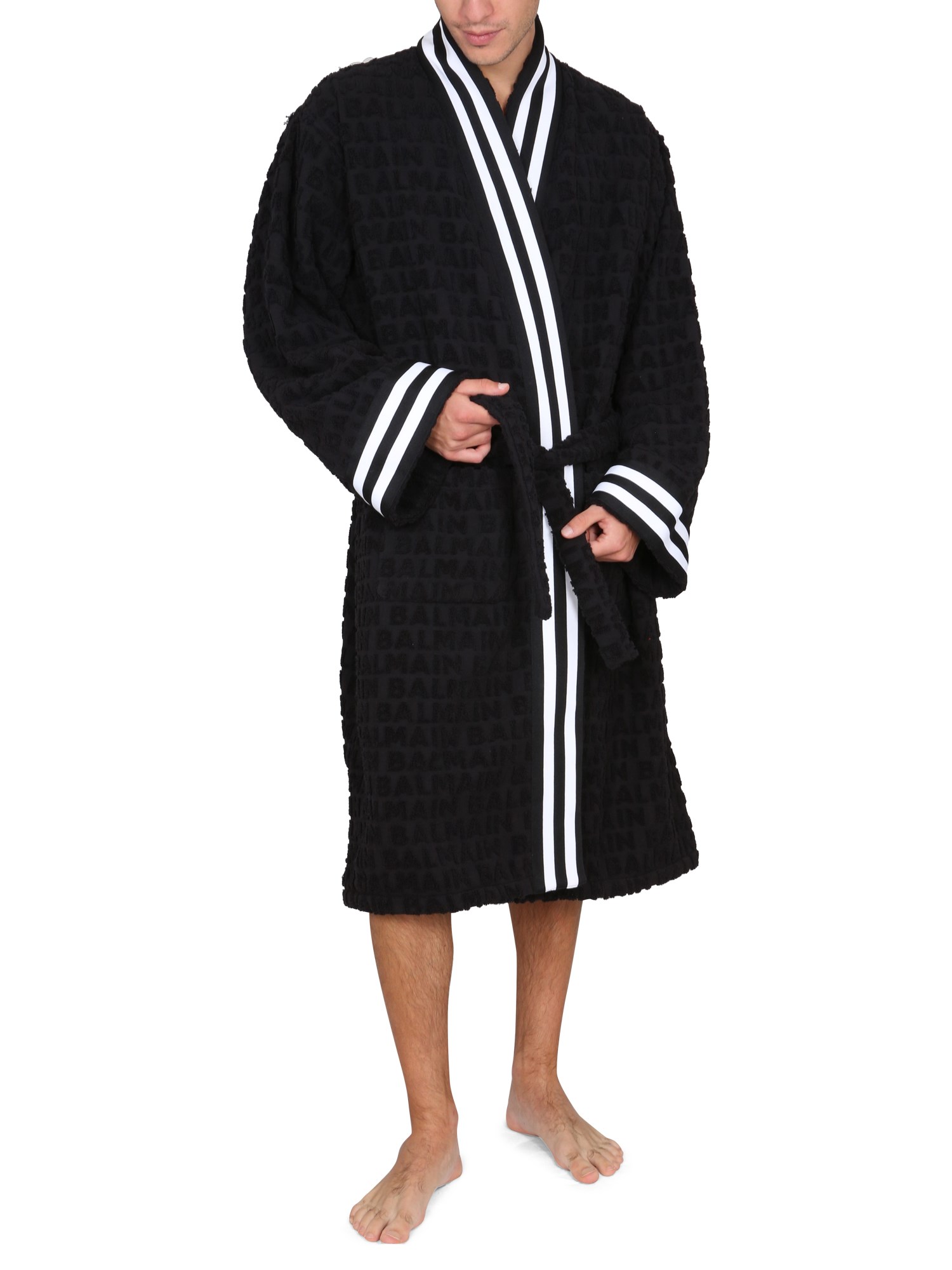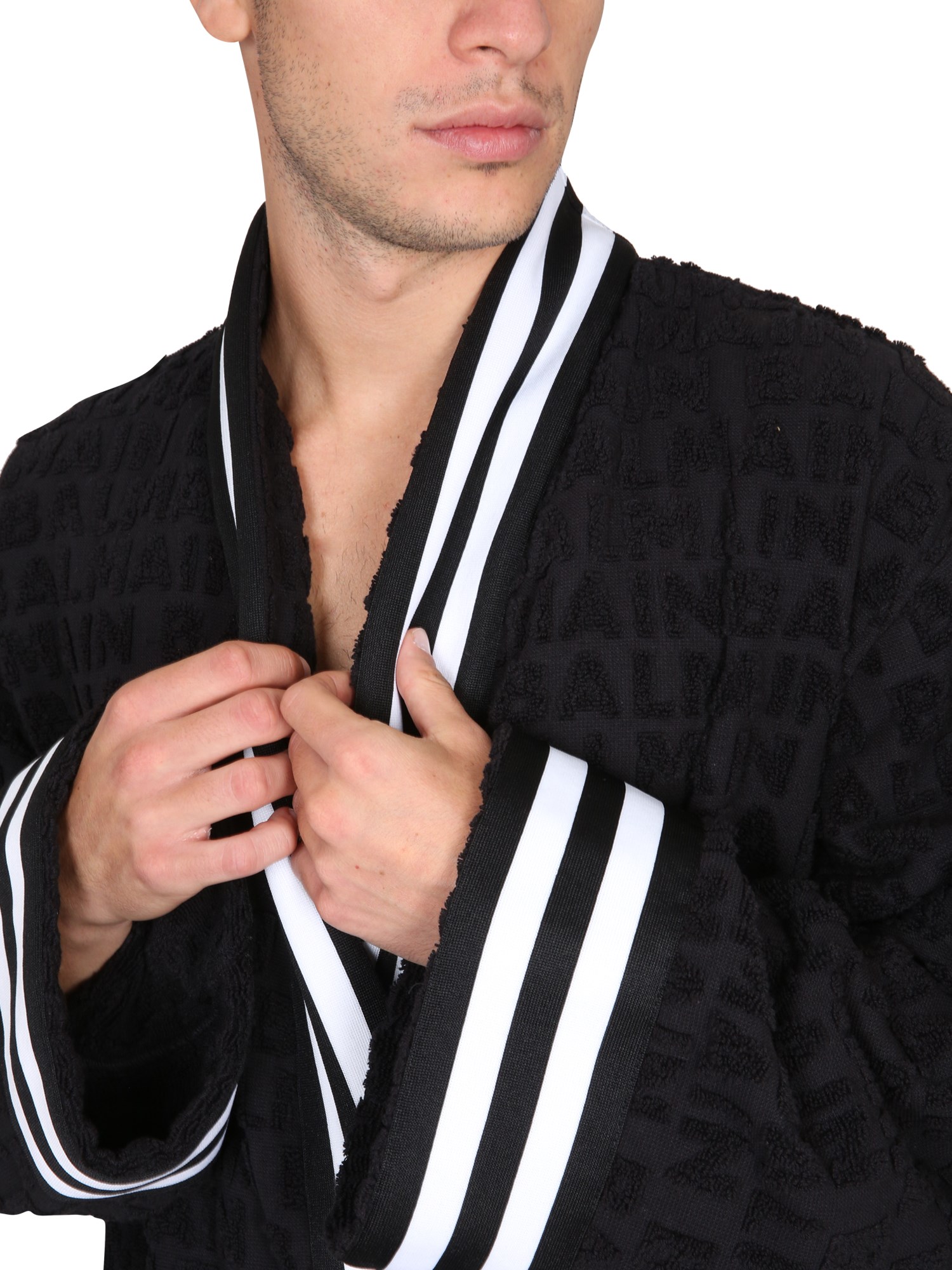 The Balmain V-neck cotton bathrobe is great for those days when you need to lounge around in your own home. It features a comfortable, soft fabric and a thick V-neck collar, perfect for those days when you want to keep your neck warm. The robe is light and breathable, so you can wear it in any season.