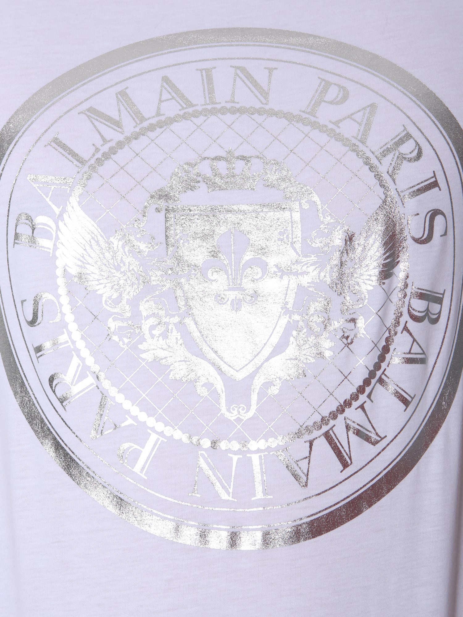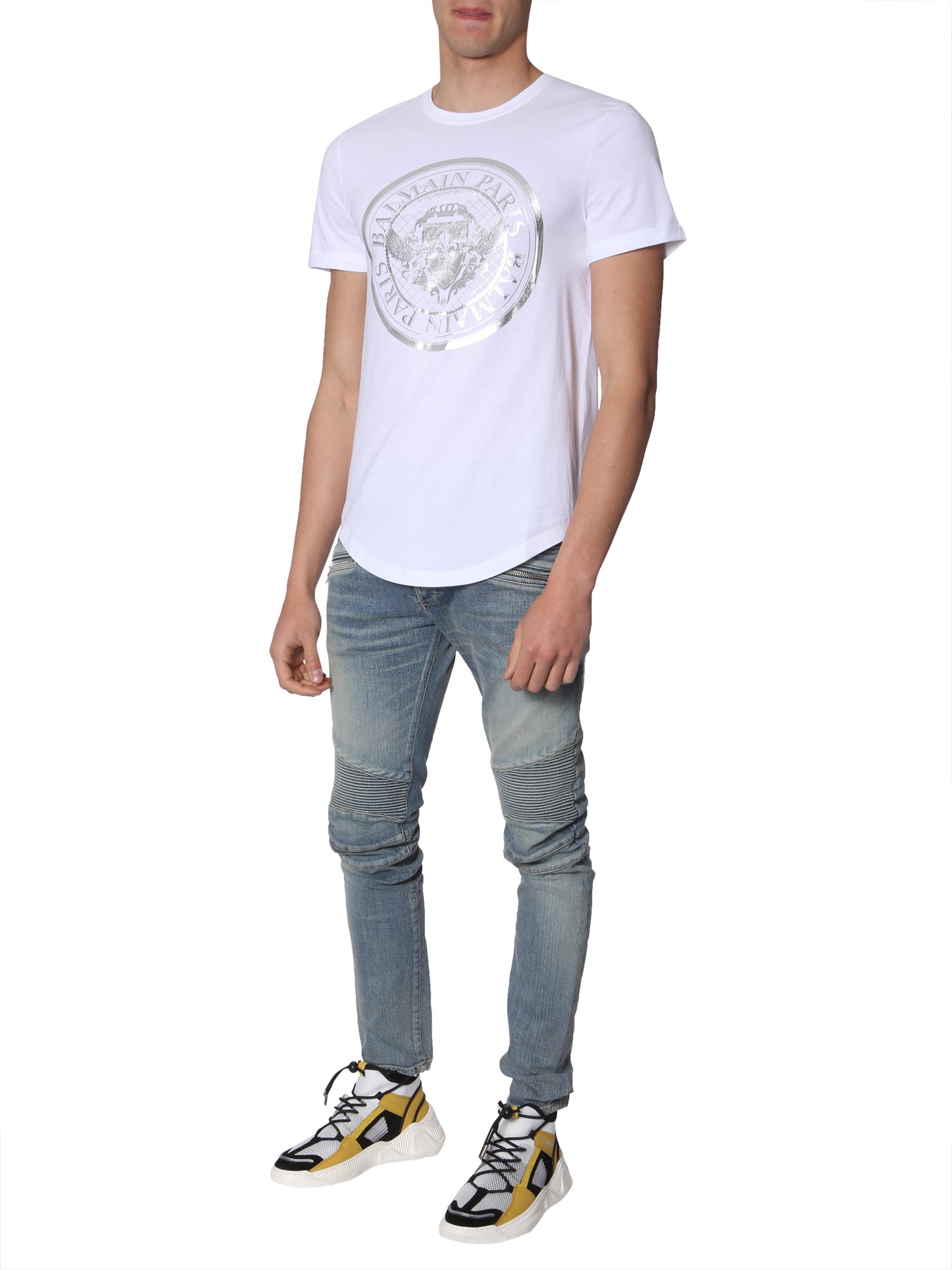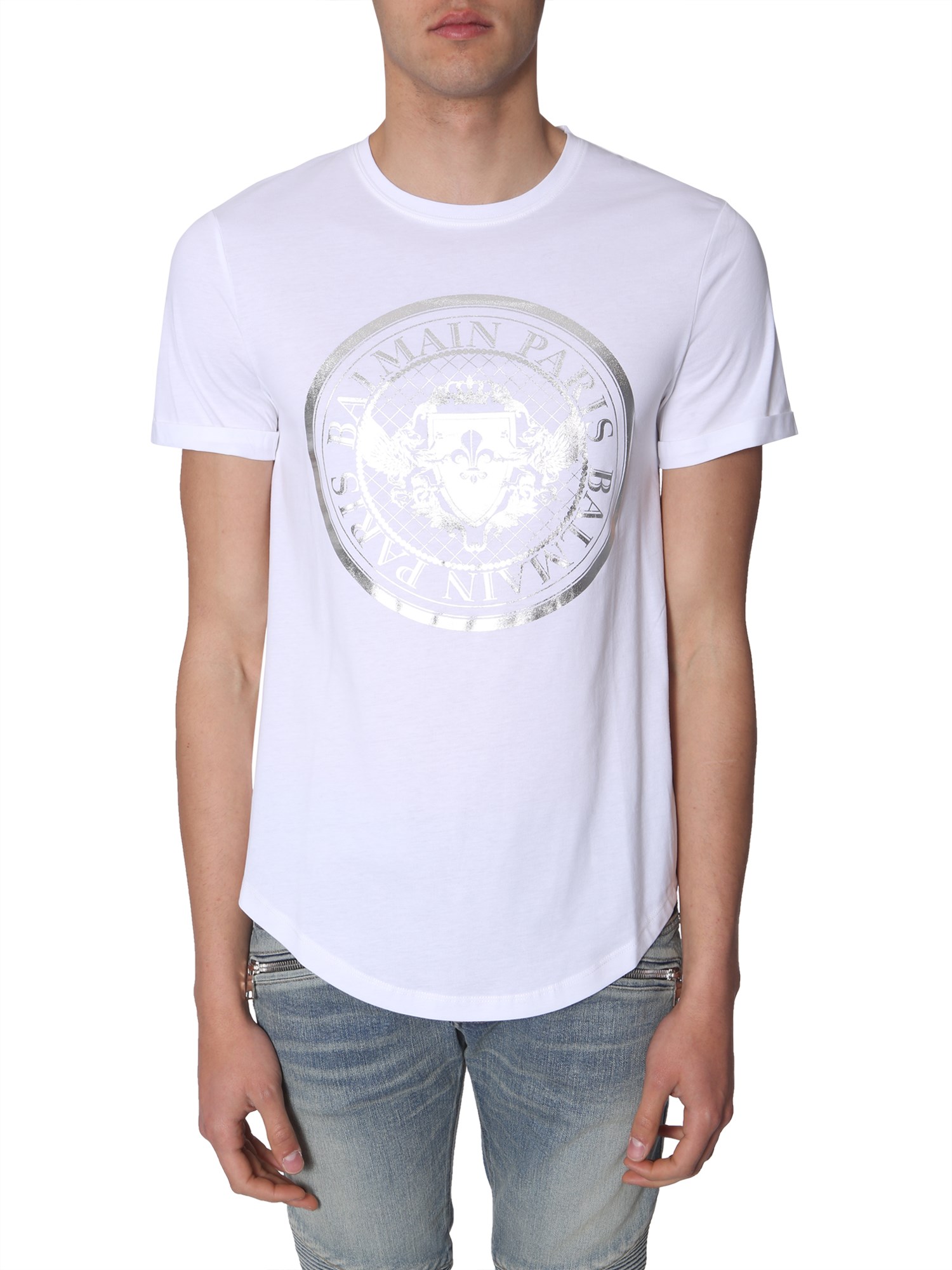 Look dashing yet cool by teaming up this t-shirt from Balmain with a pair of denim jeans. The cotton fabric makes you feel breezy and keeps you comfortable all day long. The shiny medallion print on the front side makes it stand out from the ordinary casual wear.
