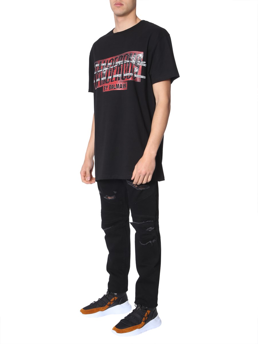 Look handsome and feel young when you pair your casual attire with this oversize fit t-shirt from Balmain to your wardrobe. The oversize fit of this t-shirt lets you carry it with a denim jacket followed by denim jeans. The cotton material ensures comfort and breathability to keep you going.