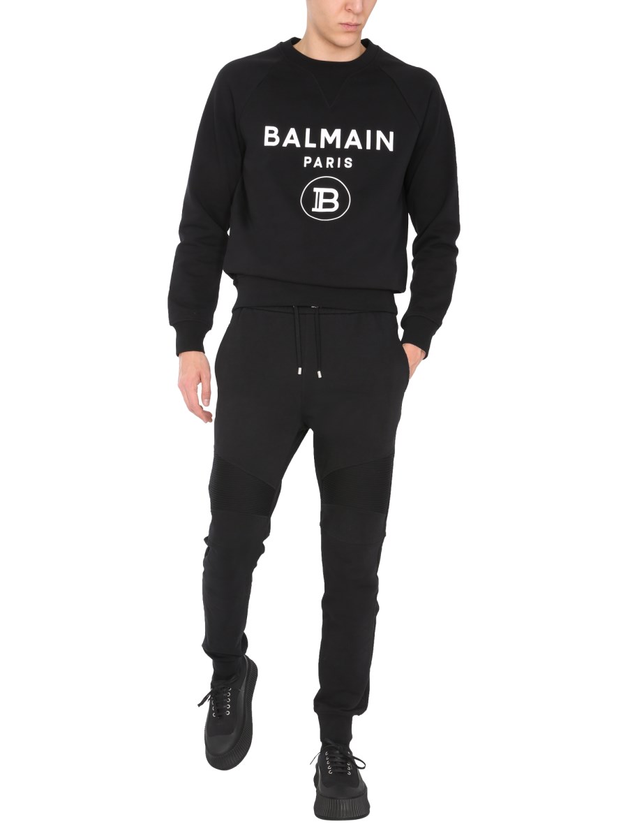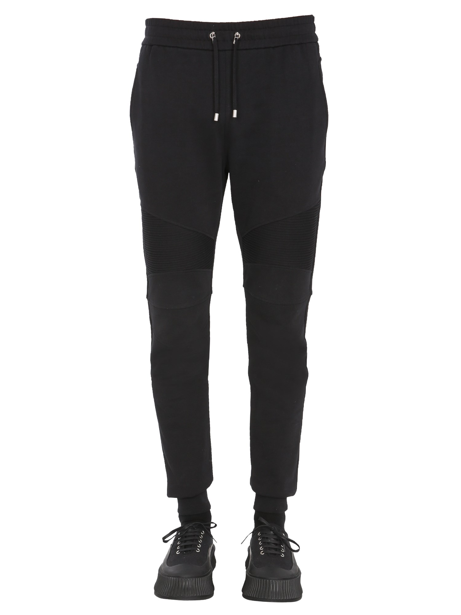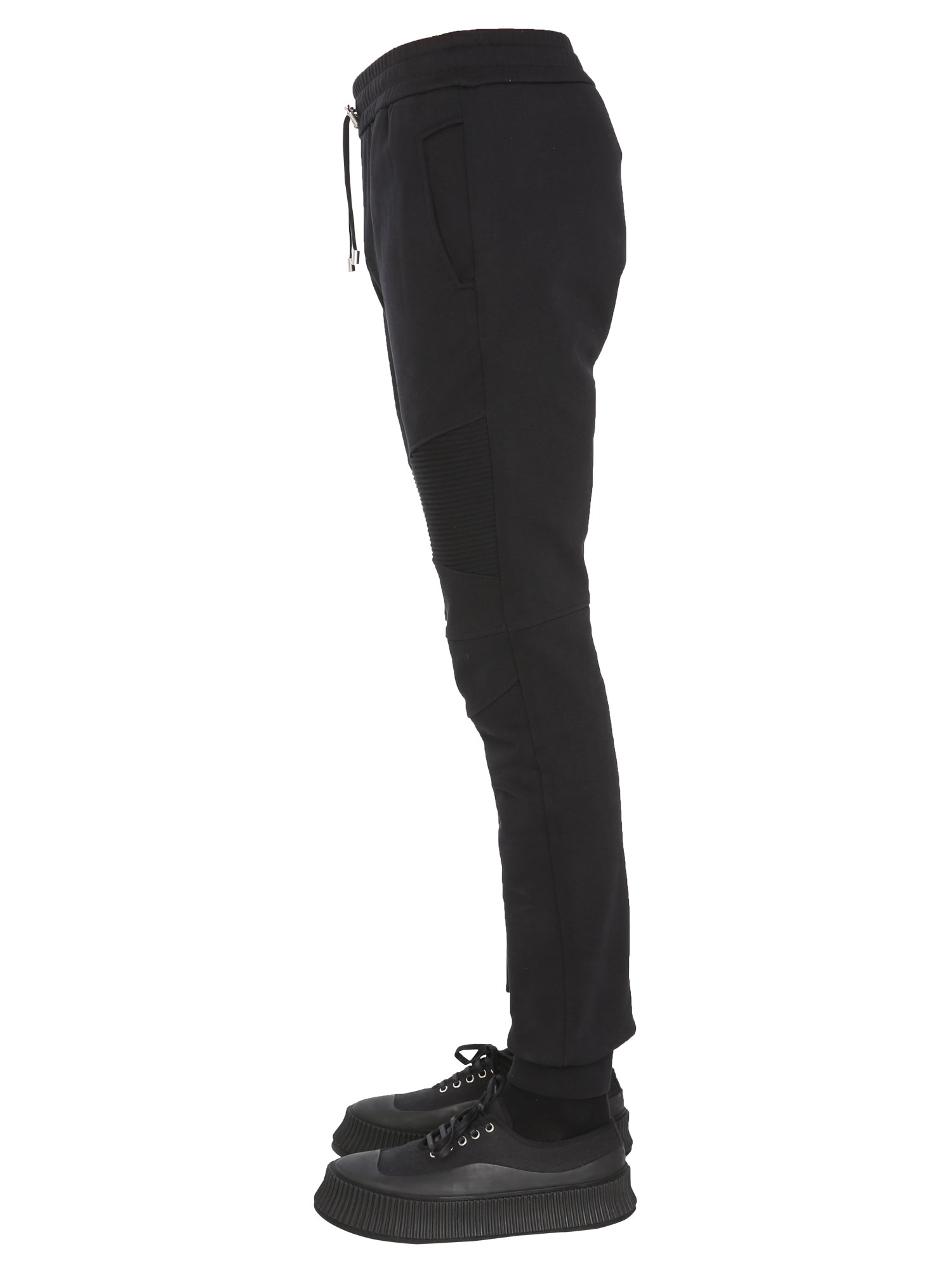 The jogging pants from the house of Balmain are a smart pick to keep yourself at utmost comfort. It features an elastic waist with coulisse, two side pockets, and a back pocket with a logo. Crafted from cotton fabric, the jogging pants are athletic-inspired pants for everyday wear.