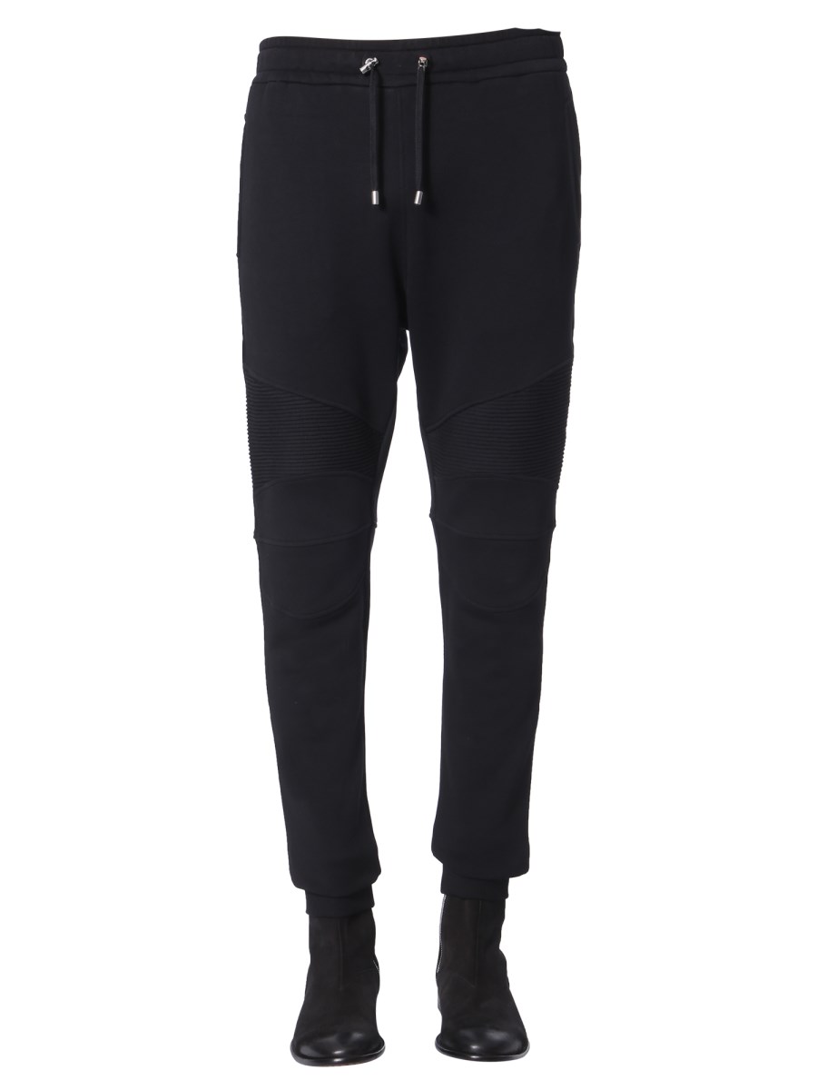 Head to an adventure or to the gym with these biker pants from Balmain. They are made of 100% cotton fabric that makes them breathable and utterly comfortable. The plain and simple exterior will match with almost every apparel in your closet. They have an elasticated coulisse waistband and multiple pockets for functionality.