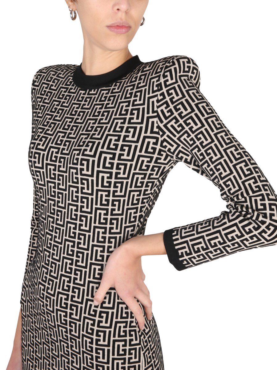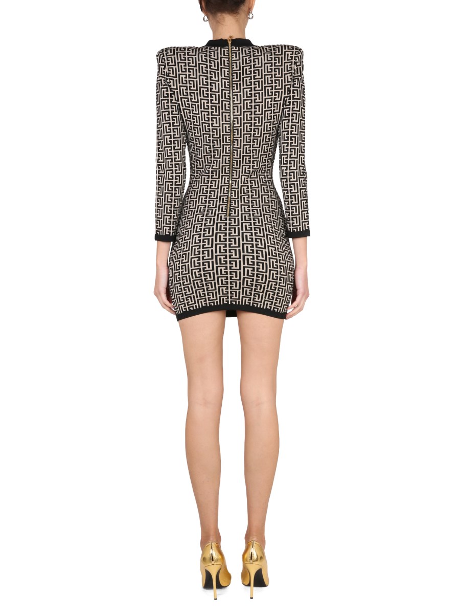 The wool blend logo dress from Balmain is a stylish, modern take on the classic dress. This dress has a crossbar back zipper closure and padded shoulders. It's made from a soft and lightweight wool blend that's perfect for layering in colder weather. This stretch wool dress is made from a comfortable material and is super soft to the touch.