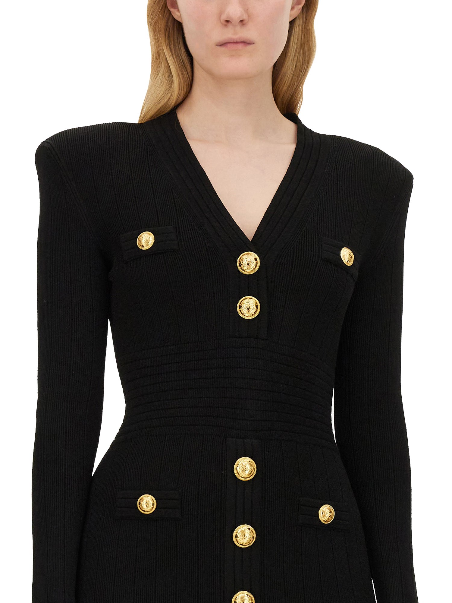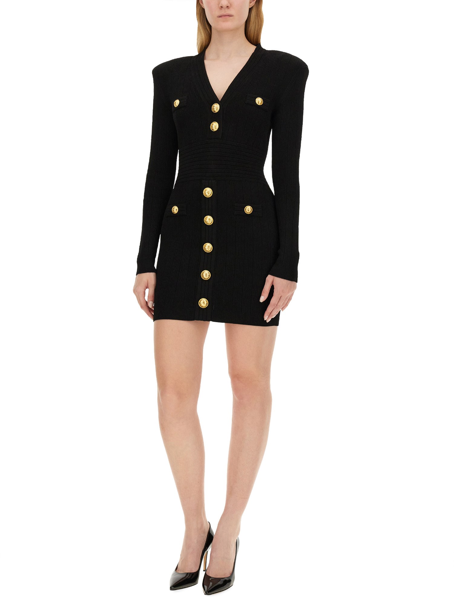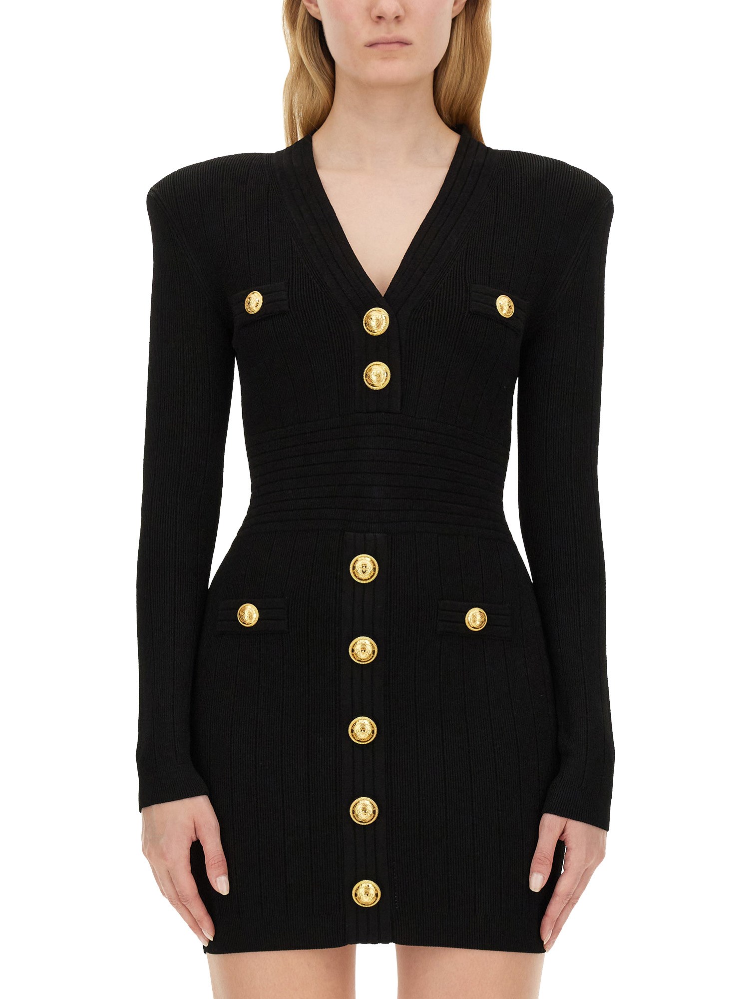 The Balmain mini dress epitomizes modern elegance, featuring a tailored silhouette that accentuates the figure while offering a chic and sophisticated look. Crafted from high-quality materials, this dress showcases intricate detailing and a luxurious finish, making it perfect for both daytime events and evening outings. The signature Balmain aesthetic is evident in its bold design elements, ensuring that the wearer stands out with confidence and style. Ideal for fashion-forward individuals, this mini dress is a must-have addition to any wardrobe.