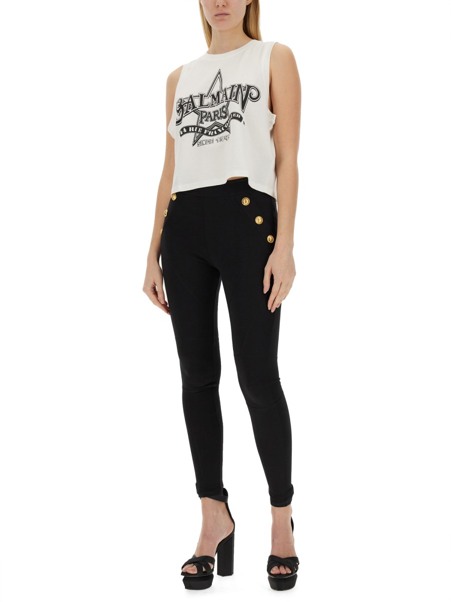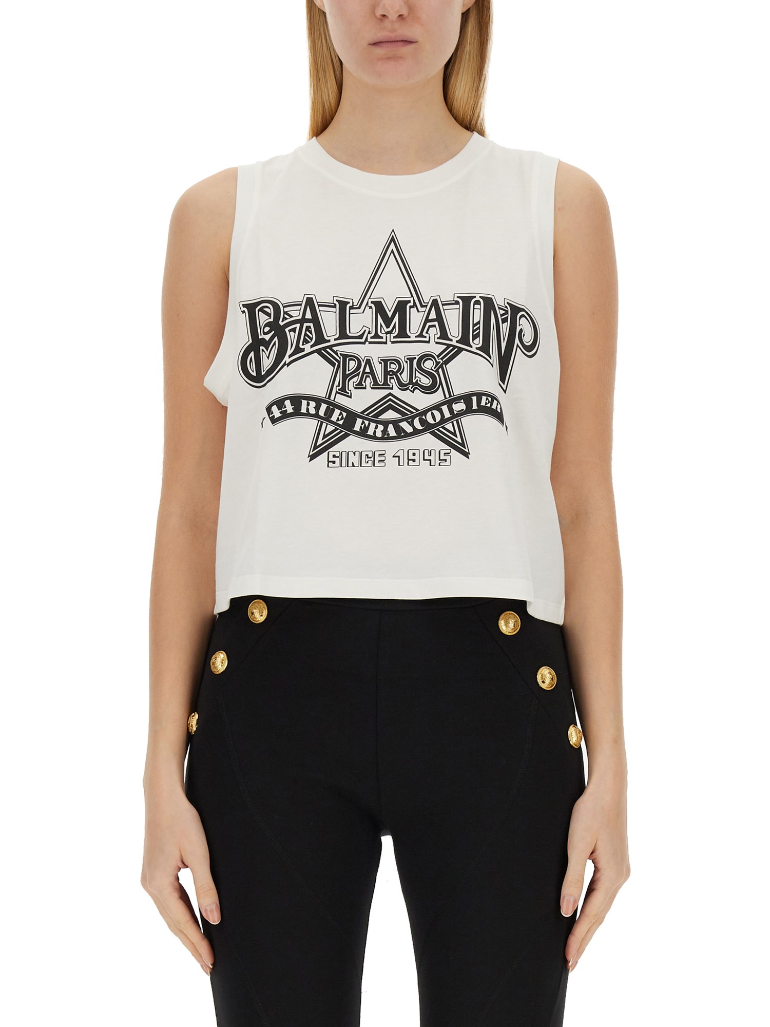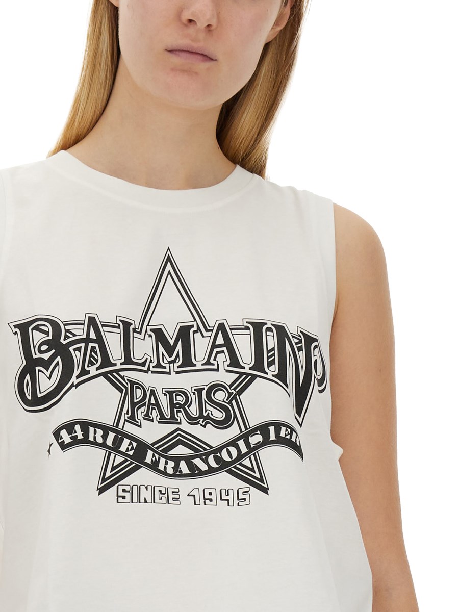Perfect for those sunny days or when you want to show off your casual-chic style, this tank top from Balmain is a must-have addition to your wardrobe. Made from premium quality cotton fabric, this sleeveless top is incredibly soft and breathable, keeping you cool and comfortable all day long. The classic white colour adds a touch of elegance, while the logo print adds a trendy and fashionable element to the design.