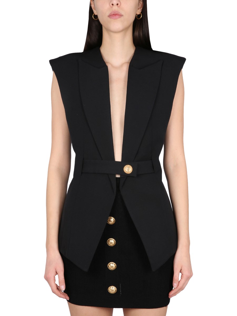 A vest for women from Balmain who know how to dress. You’ll want to be covered in all of your favourite trends this fall, and this stylish vest will do the trick. Featuring a V-neck and front closure, it has iconic buttons that add a touch of vintage flair. Pair with a sweater or a skirt for the perfect look.