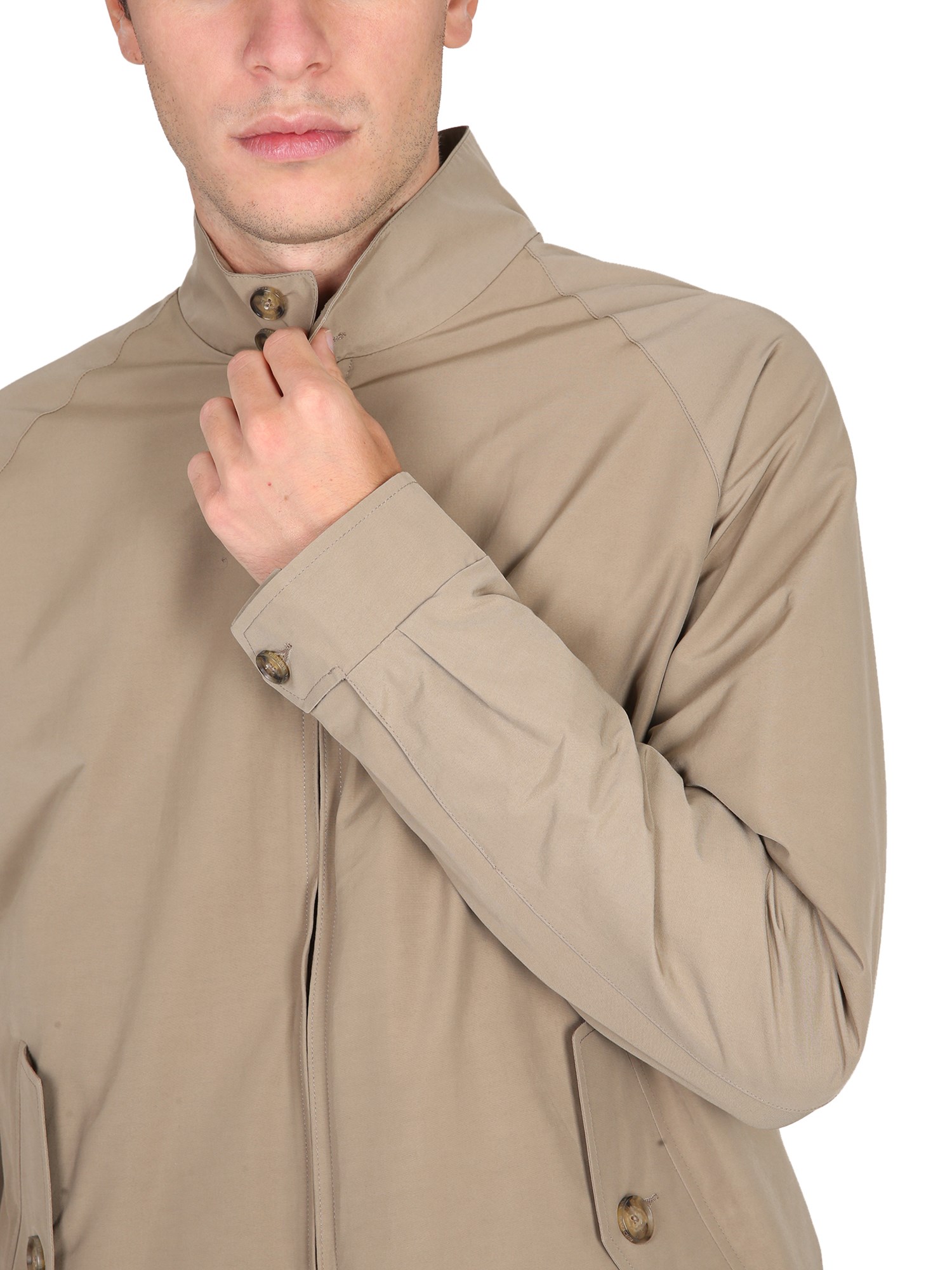 A cool, versatile jacket from Barracuta that can be worn in a variety of ways. The cotton fabric is light, breathable, and durable. The zipper closure is functional and can be closed with the sleeves rolled up or down. There are two pockets on the front and adjustable cuffs with double button closure.