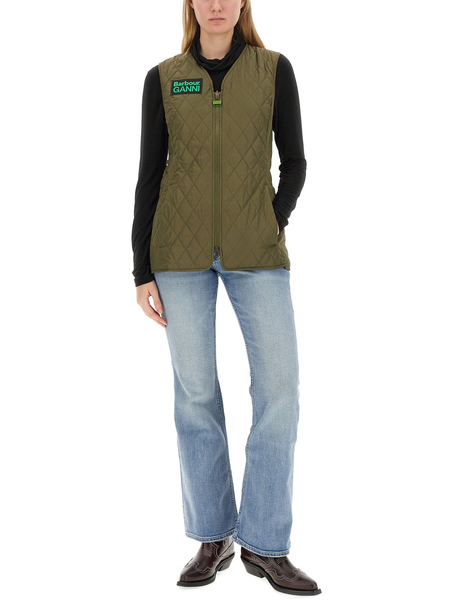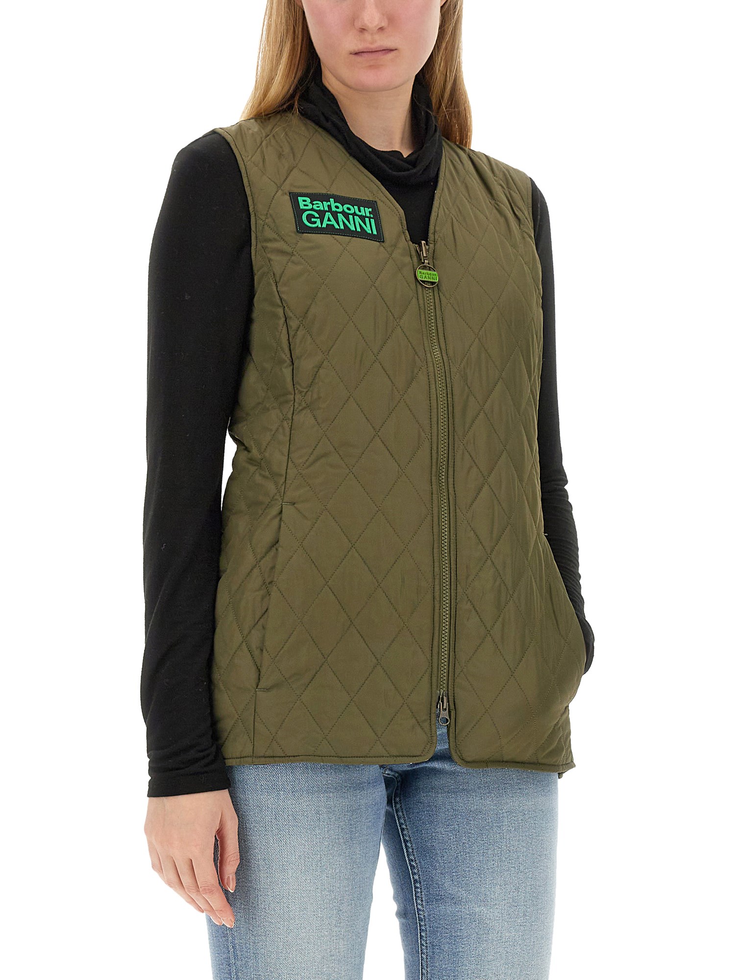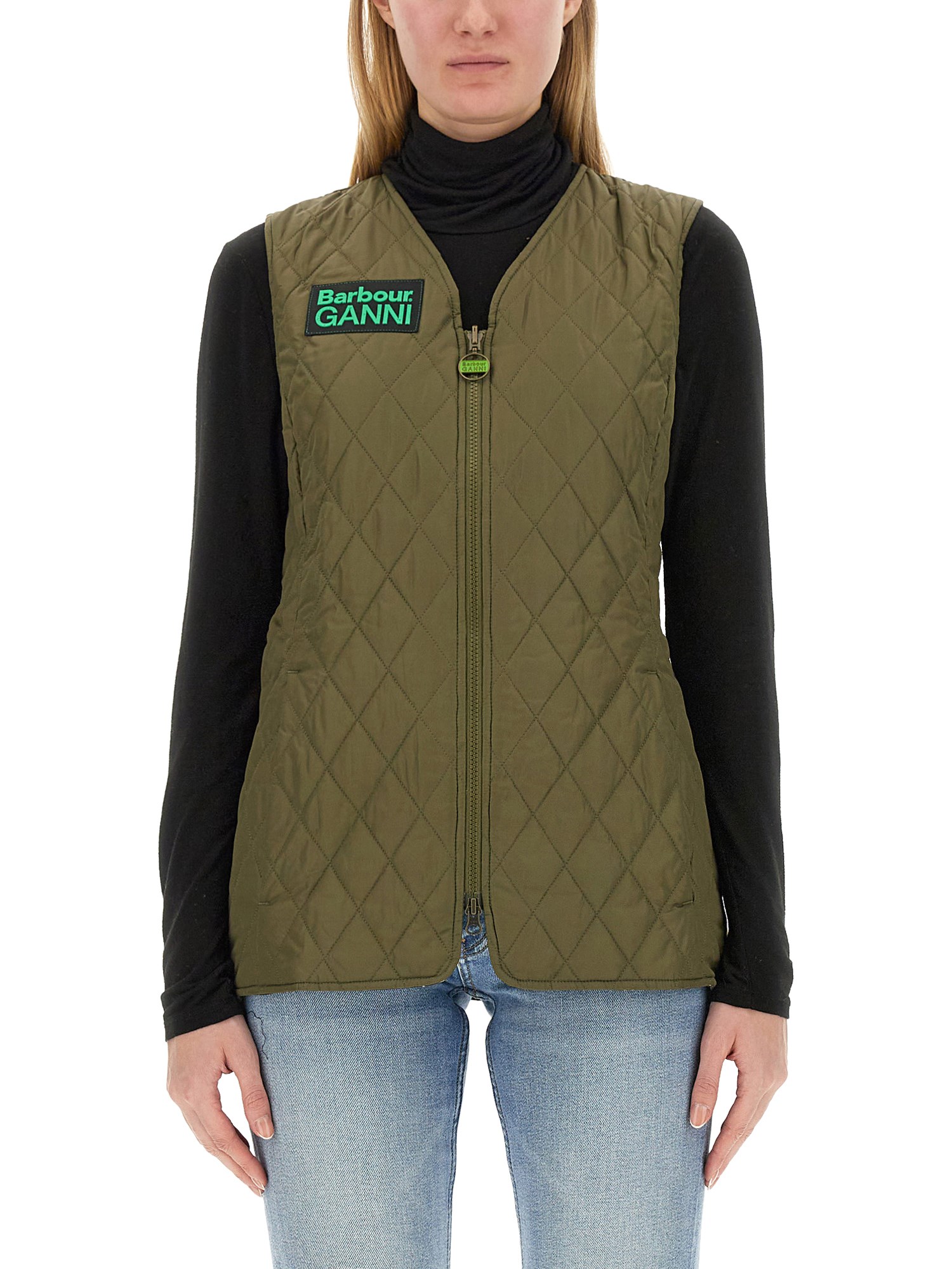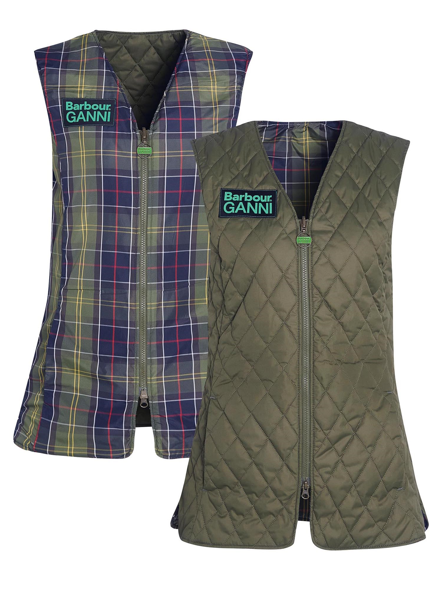 The Barbour x GANNI Reversible Betty Liner is inspired by Barbour's original Betty Liner silhouette while a dual-branded ring-pull zip-fastening and logo patch on the chest gives it a contemporary twist. This collaboration of two styles offers the personality and experimentation of Ganni, thanks to the bold pops of green while a classic tartan lining speaks to the heritage and roots of Barbour.