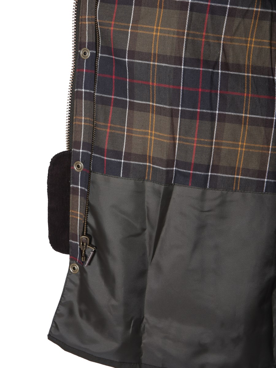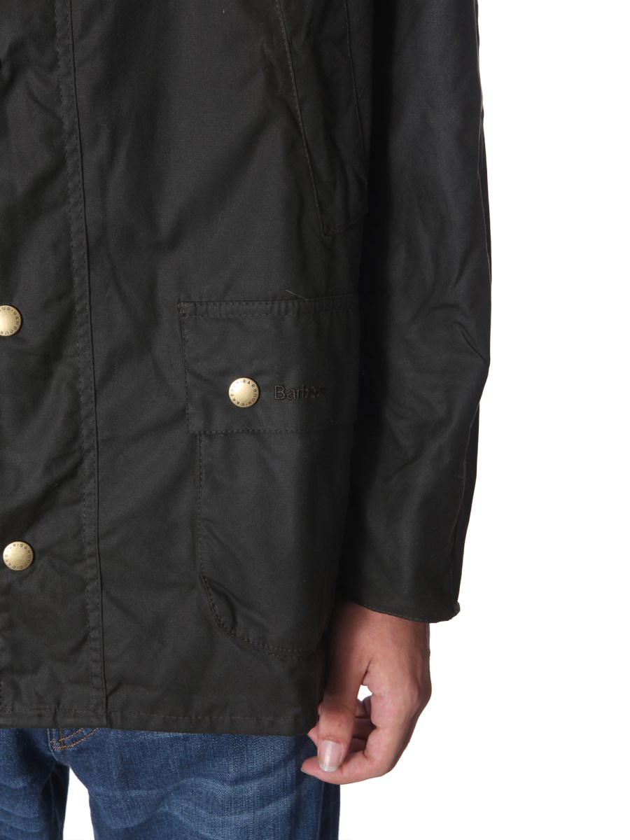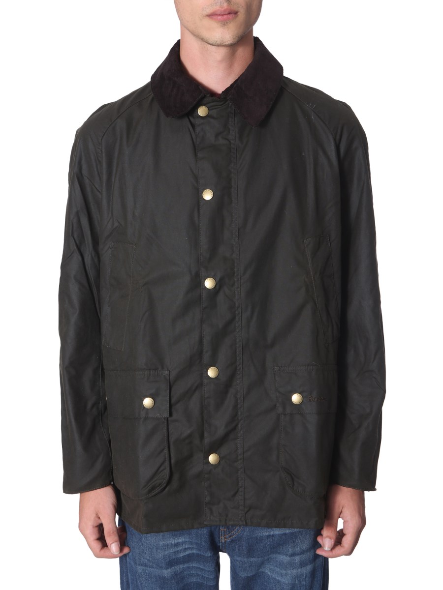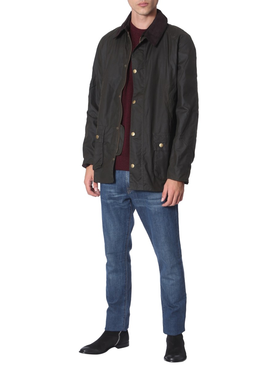 Enhance your casual winter wardrobe with this "Ashby" jacket from Barbour. The jacket is made from cerato cotton that ensures breathability to keep you comfortable for long hours. It has ribbed collar and four side pockets to carry your phone and wallet conveniently. Team it with black denims and brown shoes.