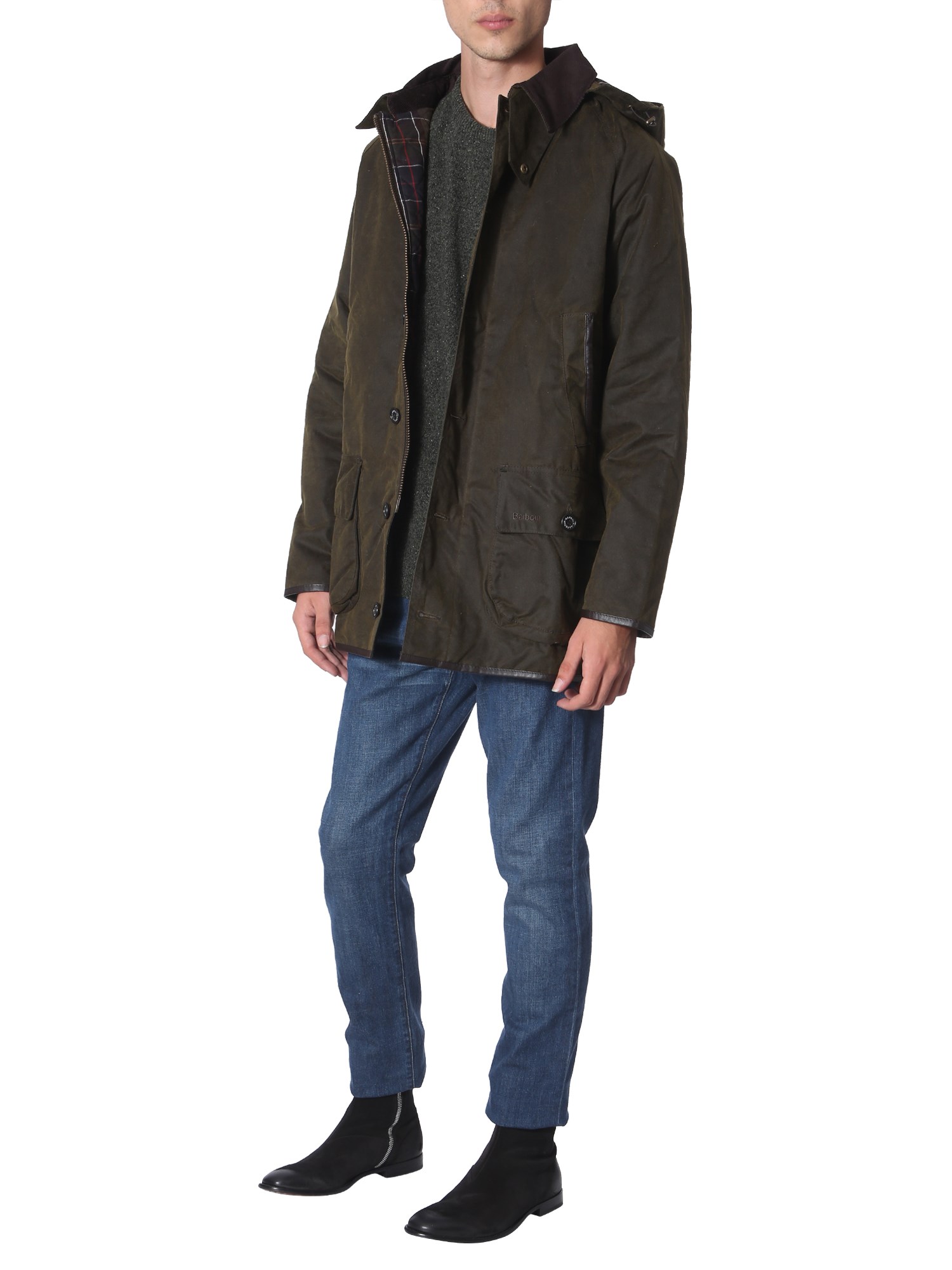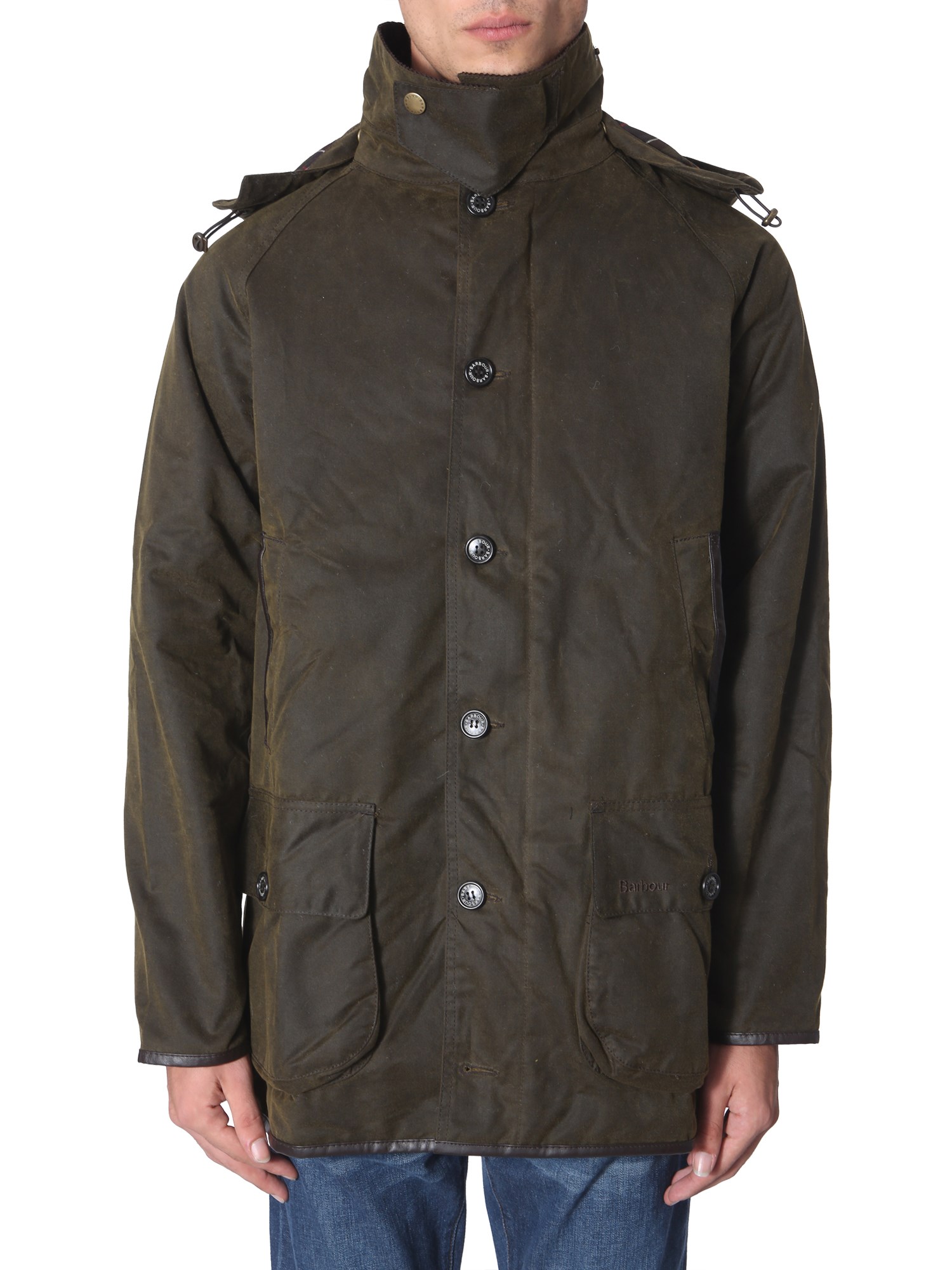 Add this stylish "Longhurst wax" jacket from Barbour to your wardrobe that helps you keep up with your style and stay comfortable as well. It is made from 100% cerato cotton that ensures breathability while providing utmost warmth. The removable hood and ribbed collar and high neck collar will prevent from the cold weather.
