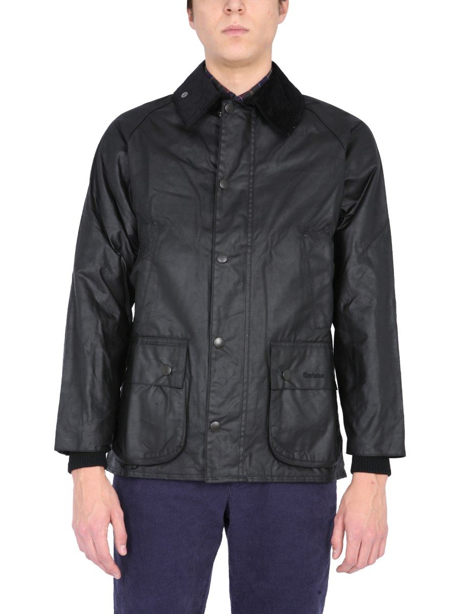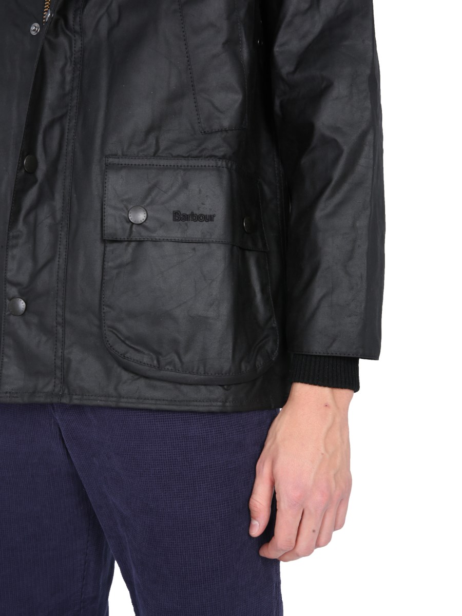 Get the "Bedale" waxed cotton jacket by Barbour and enjoy the weather without worrying about getting cold! It features a ribbed collar and front zip and automatic button closure. It has two pockets with flap and buttons and two hands warmer pockets to keep your hands warm all day long. Made 100% from waxed cotton, it has a lined inner and cotton lining.