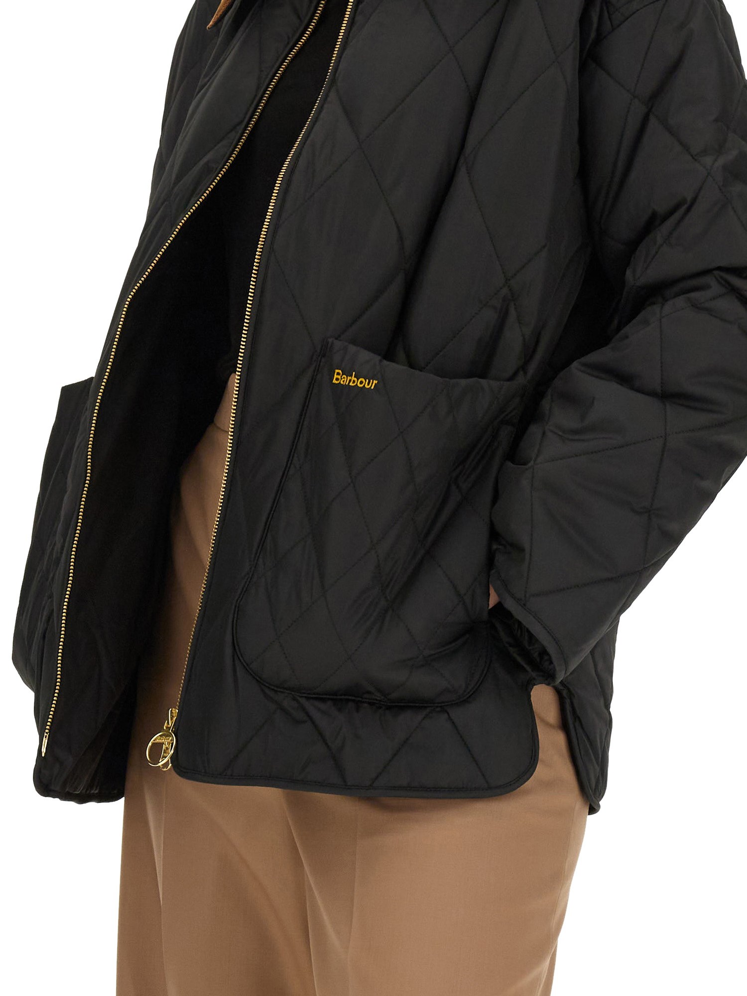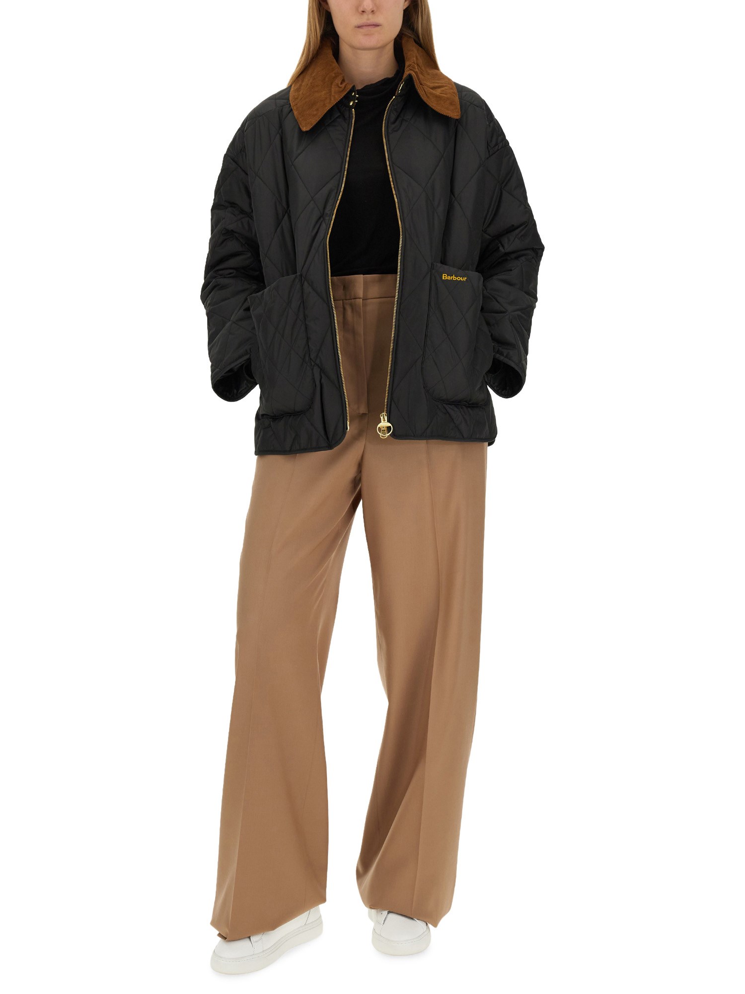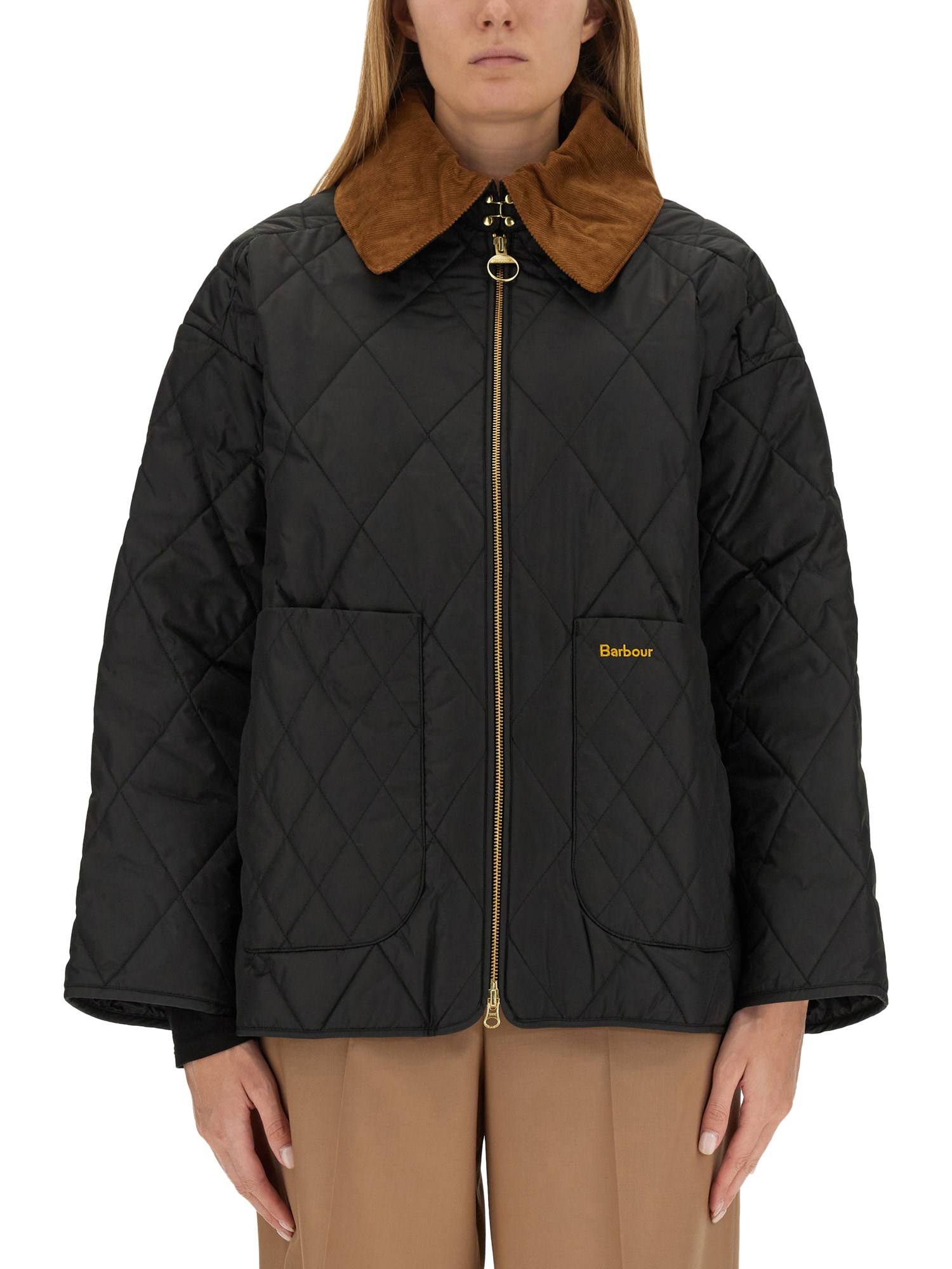 The Barbour Woodhall Quilted Jacket draws on heritage-informed diamond quilting and gives it a modern twist with the addition of an angular, oversized collar in textured needlecord fabric. This boxy silhouette features an exposed metal zip and deep front patch pockets, along with a full tartan lining for extra warmth.