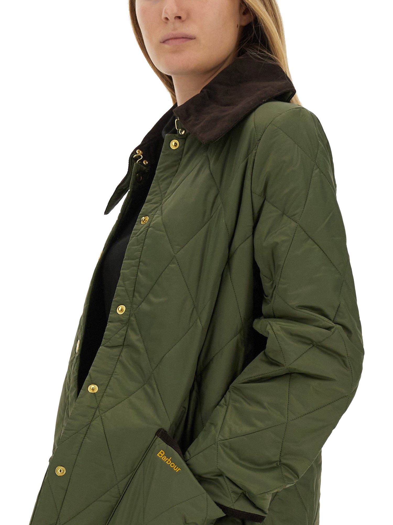 Re-engineered for the woman of today with an exaggerated collar, the Barbour Modern Liddesdale Quilted Jacket offers a contemporary take on an outerwear classic. Boasting oversized proportions – from the traditional quilting to the practical side pockets – this long-sleeved design is accented with corduroy trims and gold-tone buttons to the front.