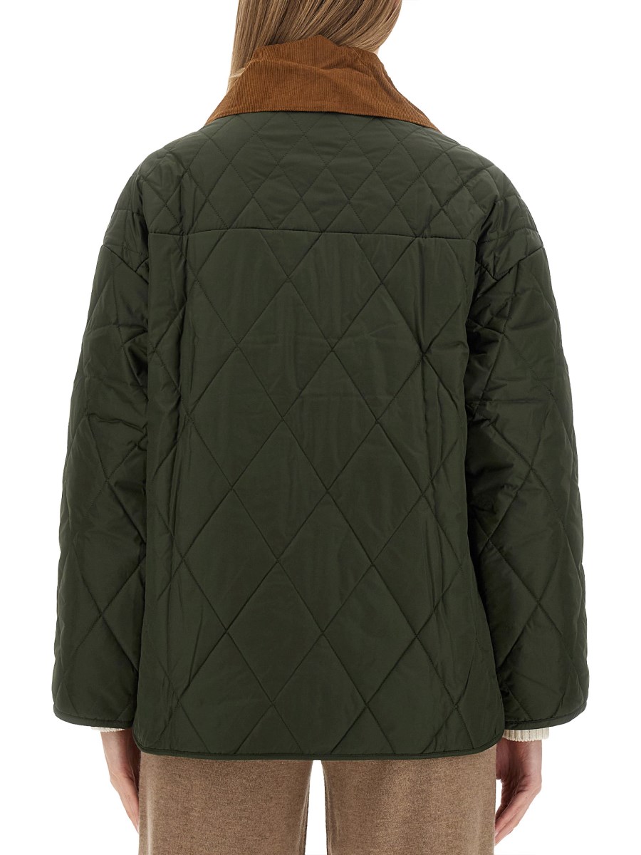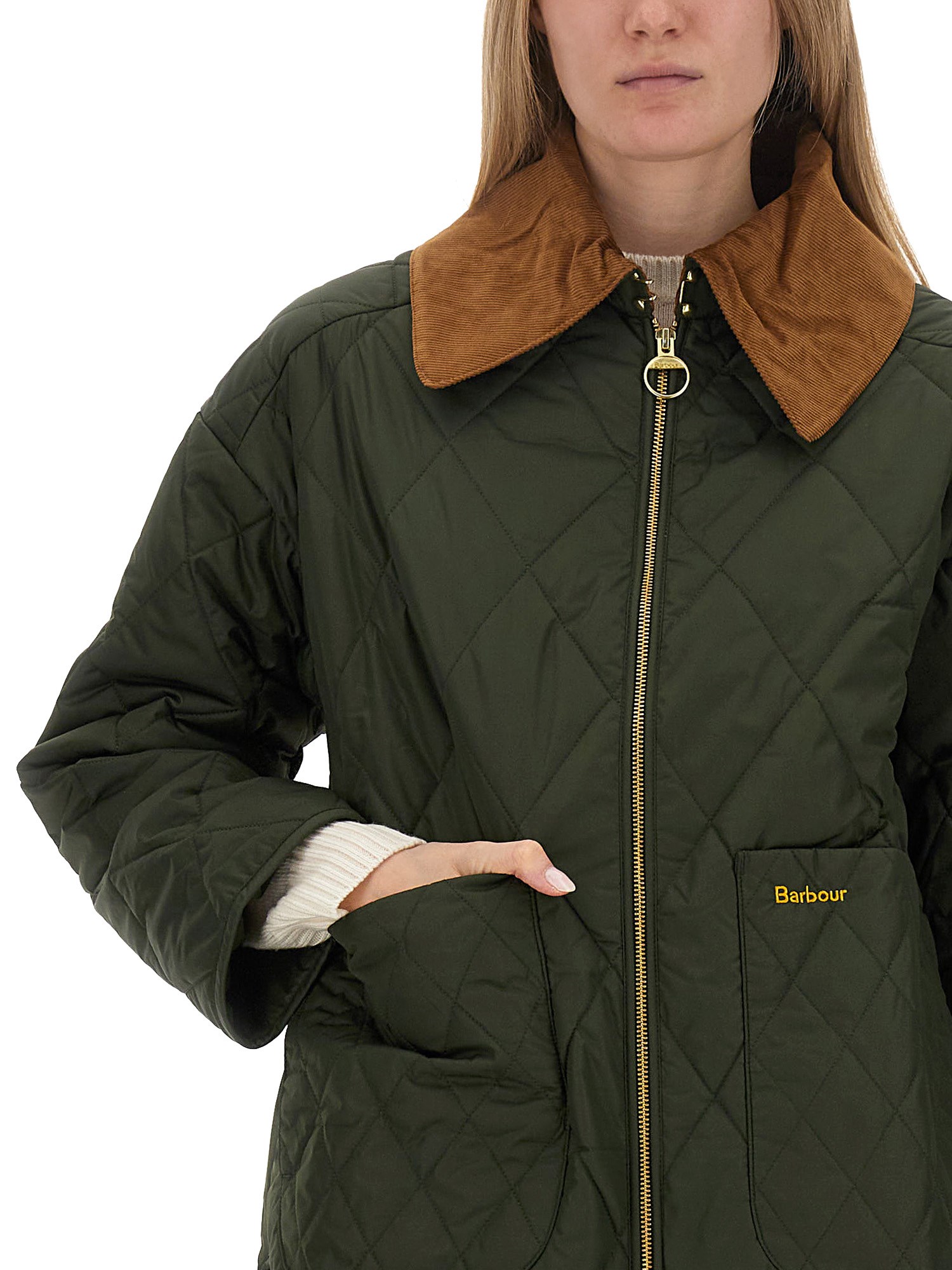 The Barbour Woodhall Quilted Jacket draws on heritage-informed diamond quilting and gives it a modern twist with the addition of an angular, oversized collar in textured needlecord fabric. This boxy silhouette features an exposed metal zip and deep front patch pockets, along with a full tartan lining for extra warmth.