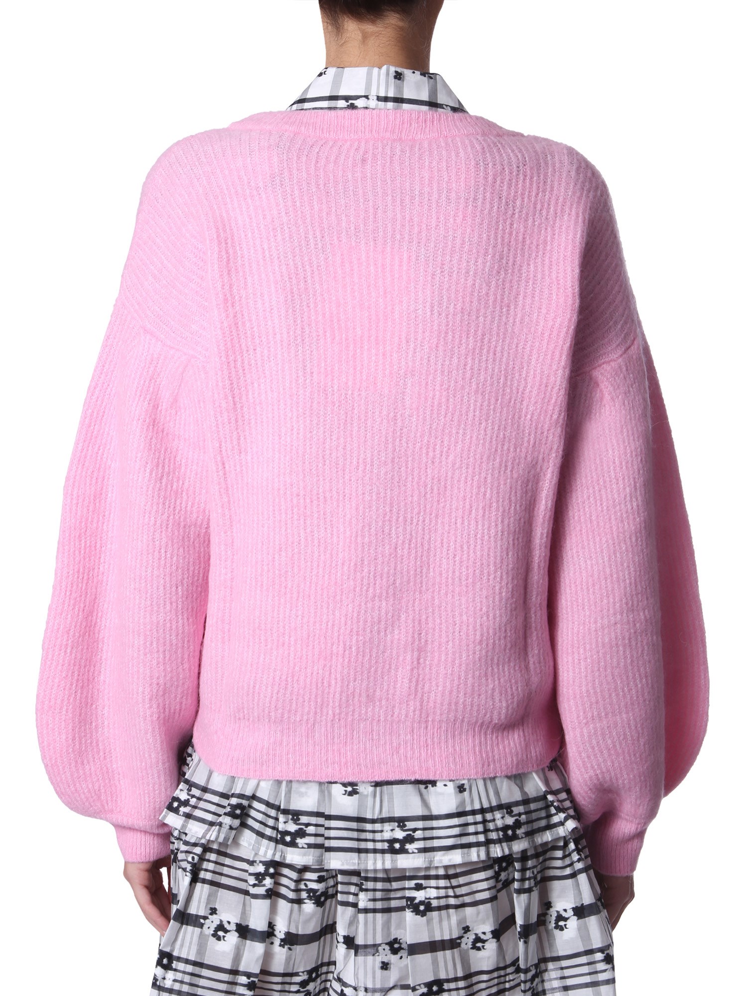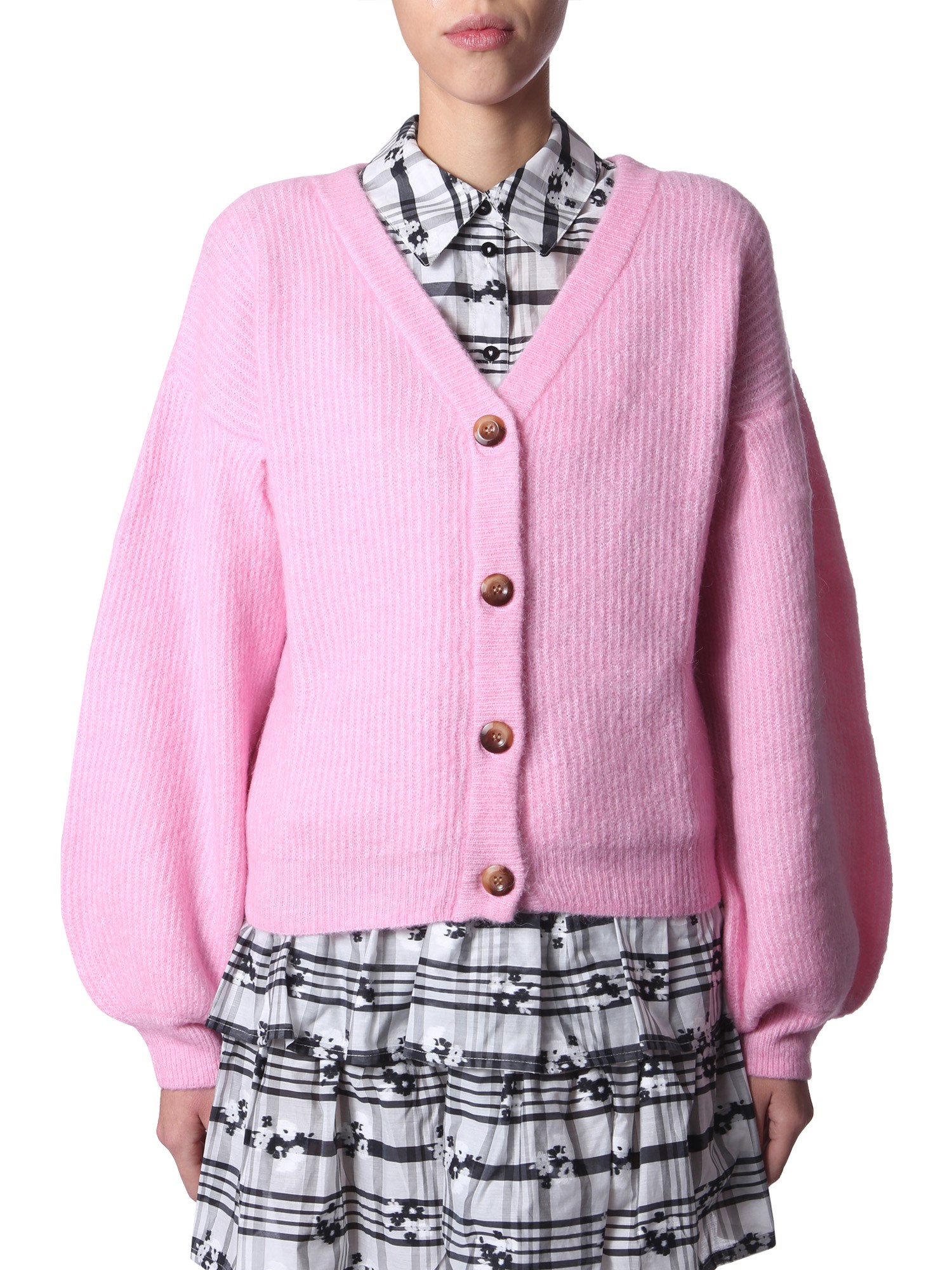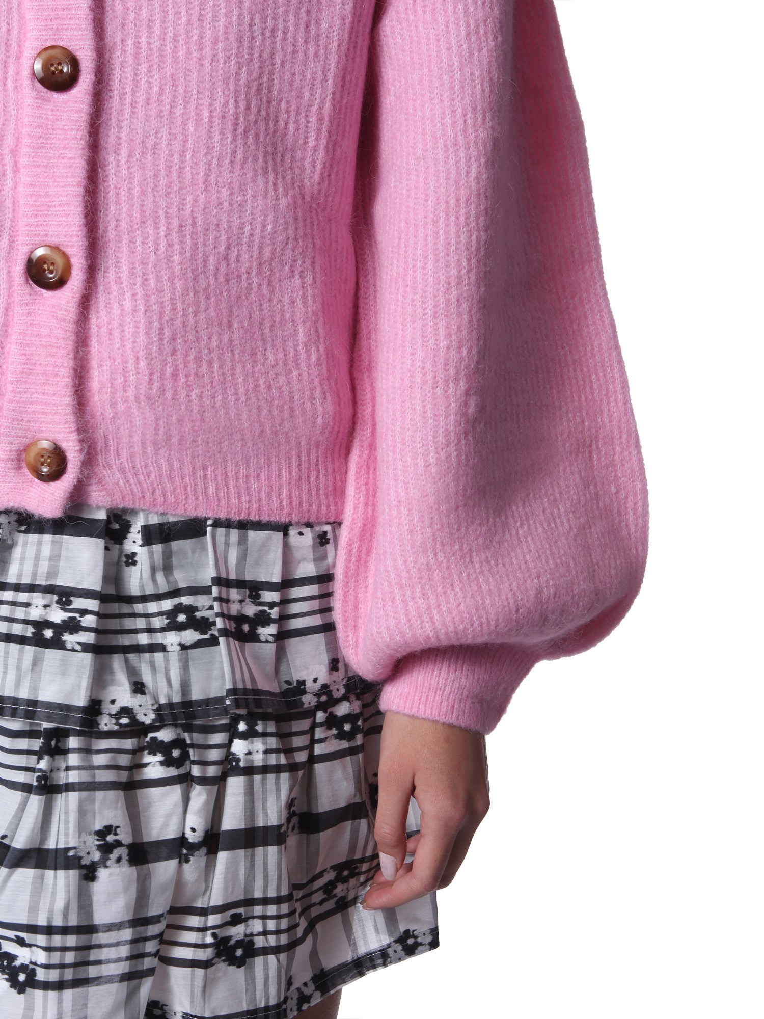 This "Celine" cardigan from Baum und Pferdgarten is a perfect addition to your winter wardrobe. The apparel has balloon sleeves and V-neckline. It provides an oversized fit that does not stick to your body. Its plain and sober surface makes it suitable for casual as well formal events. Rock a stylish look by layering it over a white shirt and jeans.