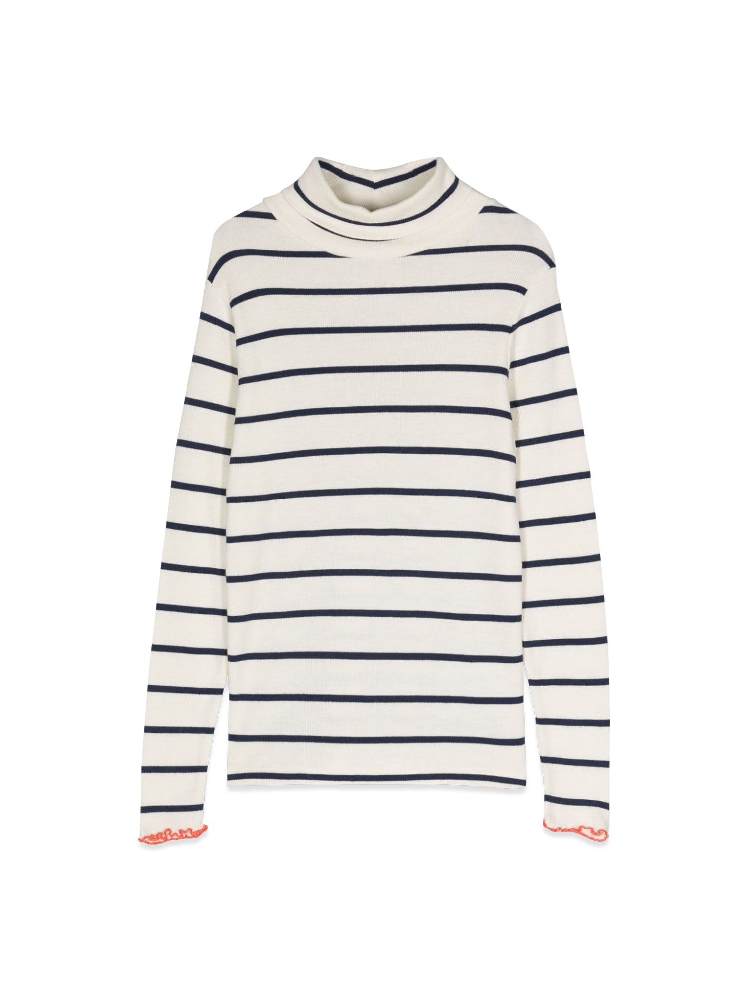 This T-shirt from Bellerose is designed to offer both comfort and fashion-forward style. The high neck adds a modern twist to the classic striped pattern, making it a perfect choice for those who want to stand out from the crowd. The multicolour stripes on this T-Shirt create a vibrant and eye-catching look, making it ideal for any casual or semi-formal occasion.