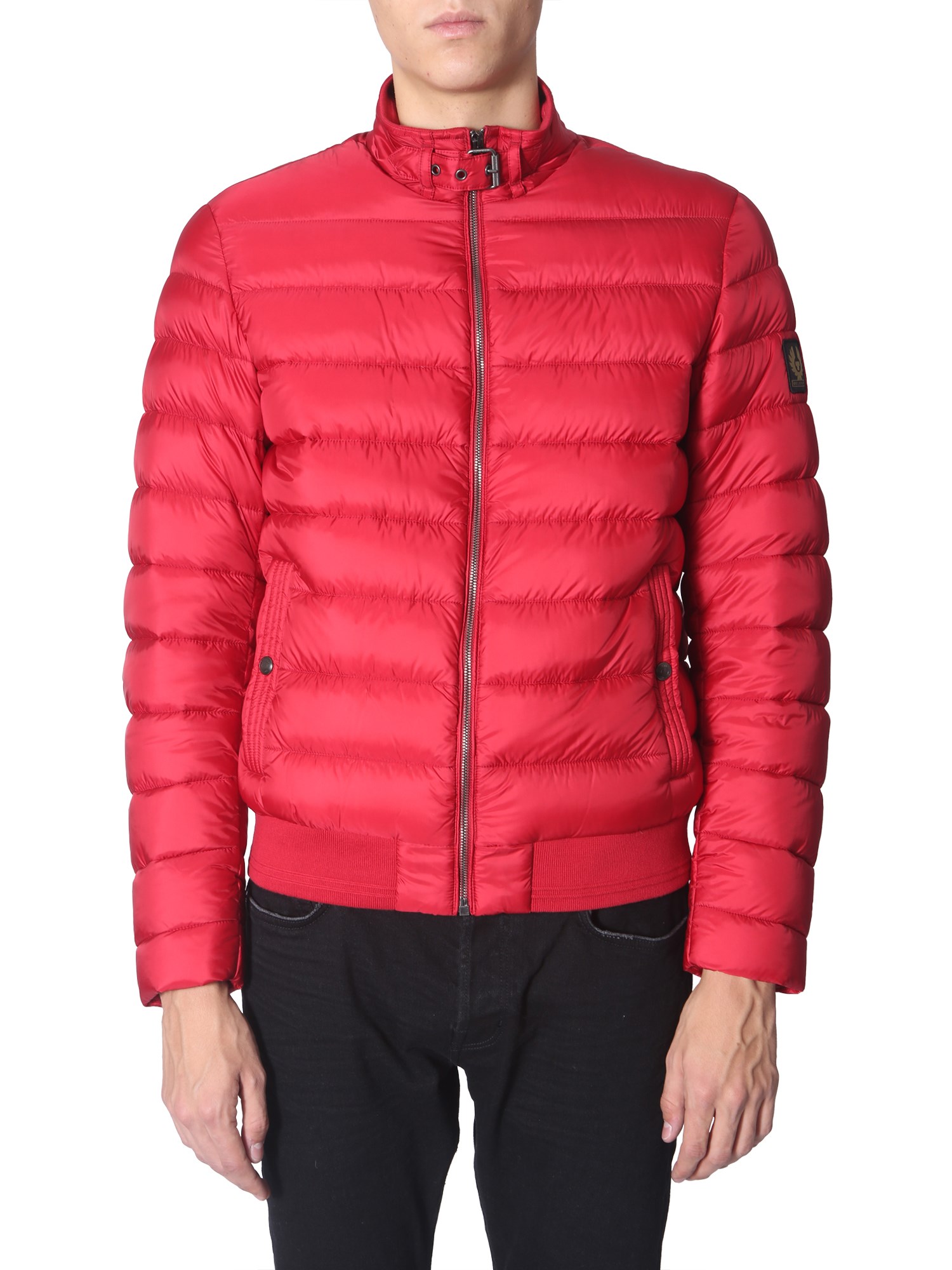Update your jacket collection with the "circuit" down jacket from Belstaff. This down hooded jacket helps keep you warm and comfortable in harsh condition. This polyamide jacket is lightweight as compared to other bulky jackets while the feather stuffing keeps you warm enough to withstand low temperature. Also, it features a zip closure and two side pockets.