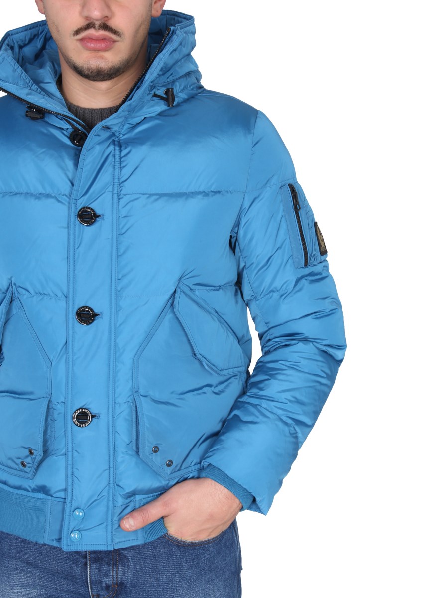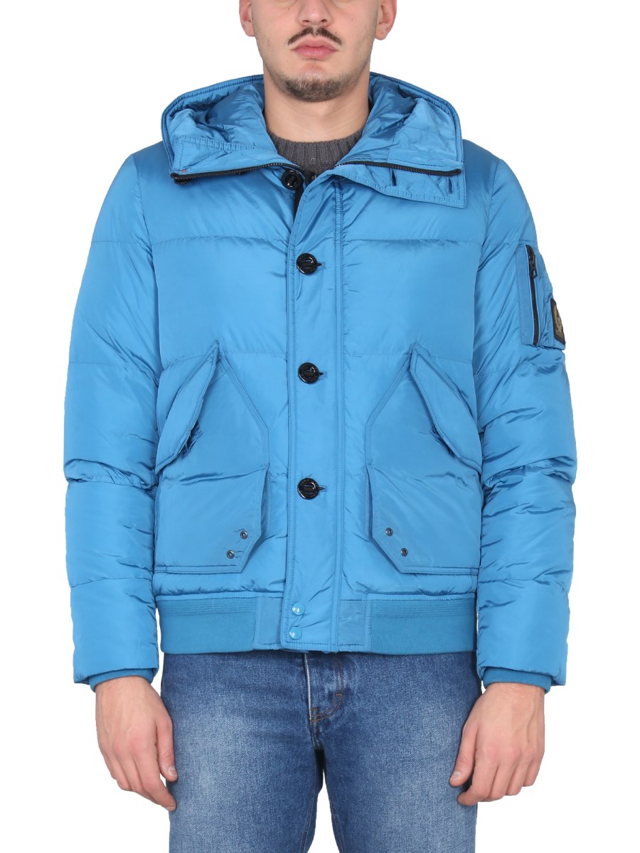 A versatile, breathable, and comfortable jacket from Belstaff that is designed to keep you warm in cool weather and cool in warm weather. This jacket is a cool, lightweight, and comfortable piece that is perfect for a casual day at the office. It has a zipper and button closure, a high neck with a hood, and is made from polyamide fabric.